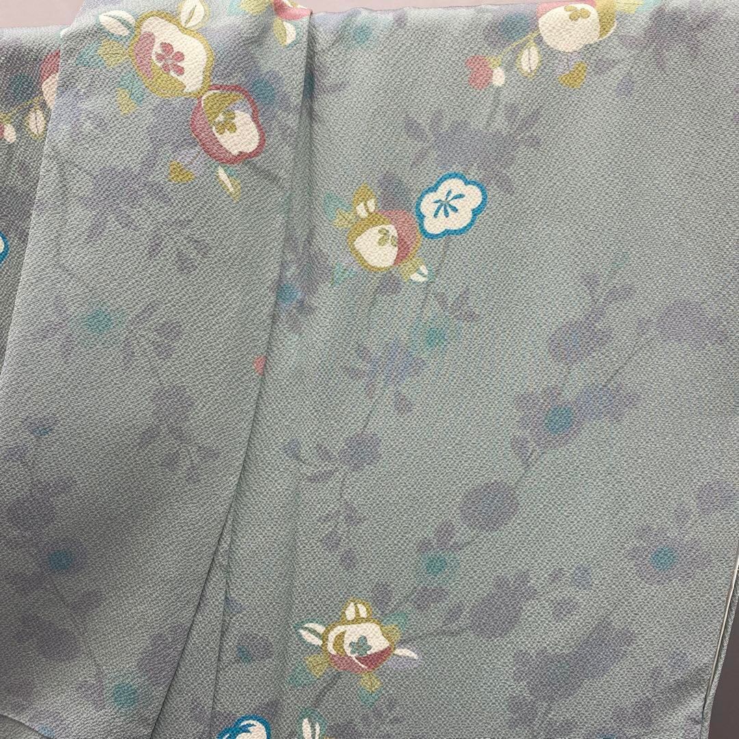 5400 未使用品 小紋 着物 正絹 おしゃれ着 灰緑水色 花