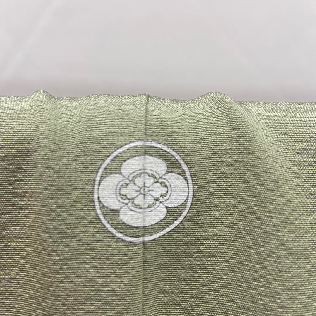 5444 薄灰緑 色無地 着物 正絹 おしゃれ着 木瓜紋