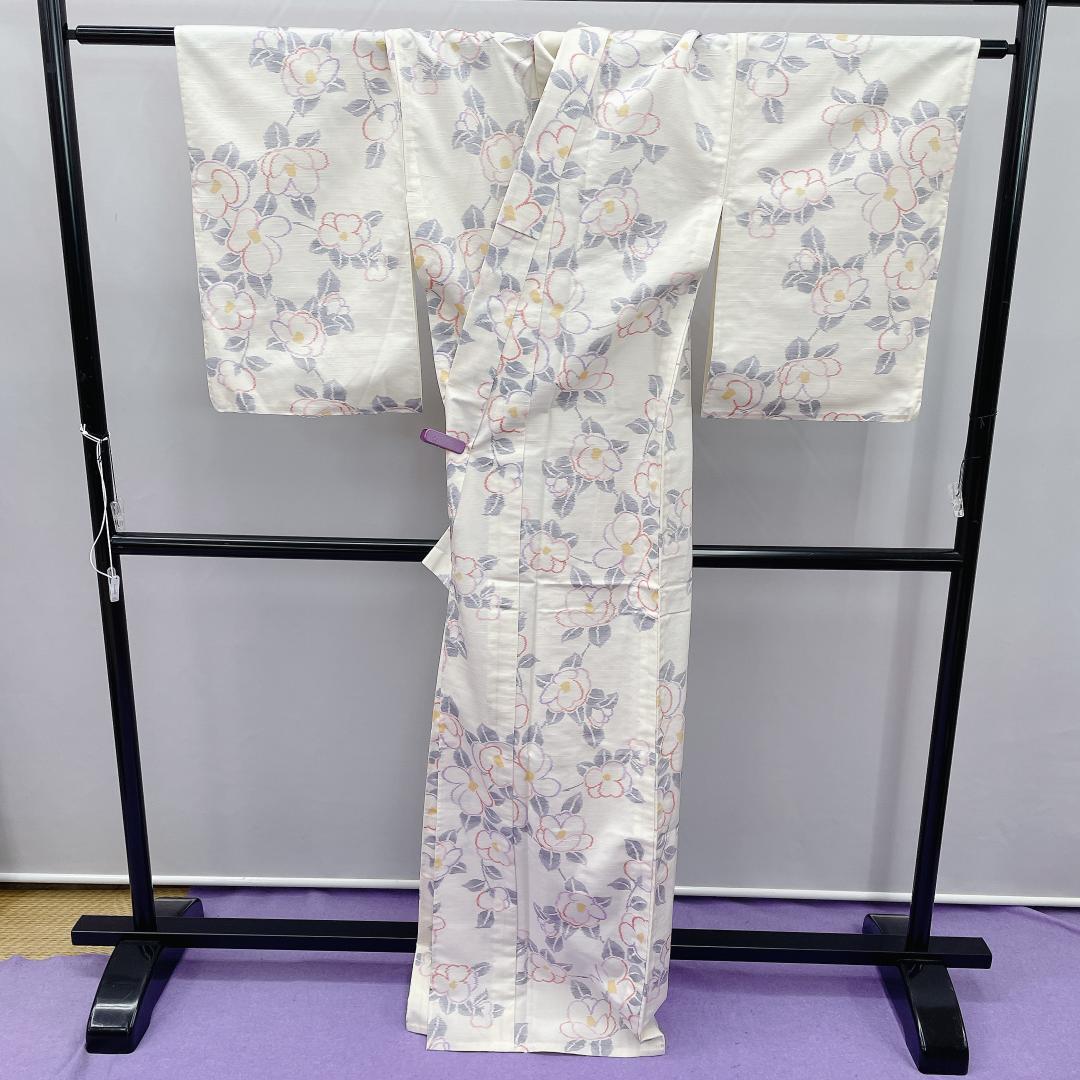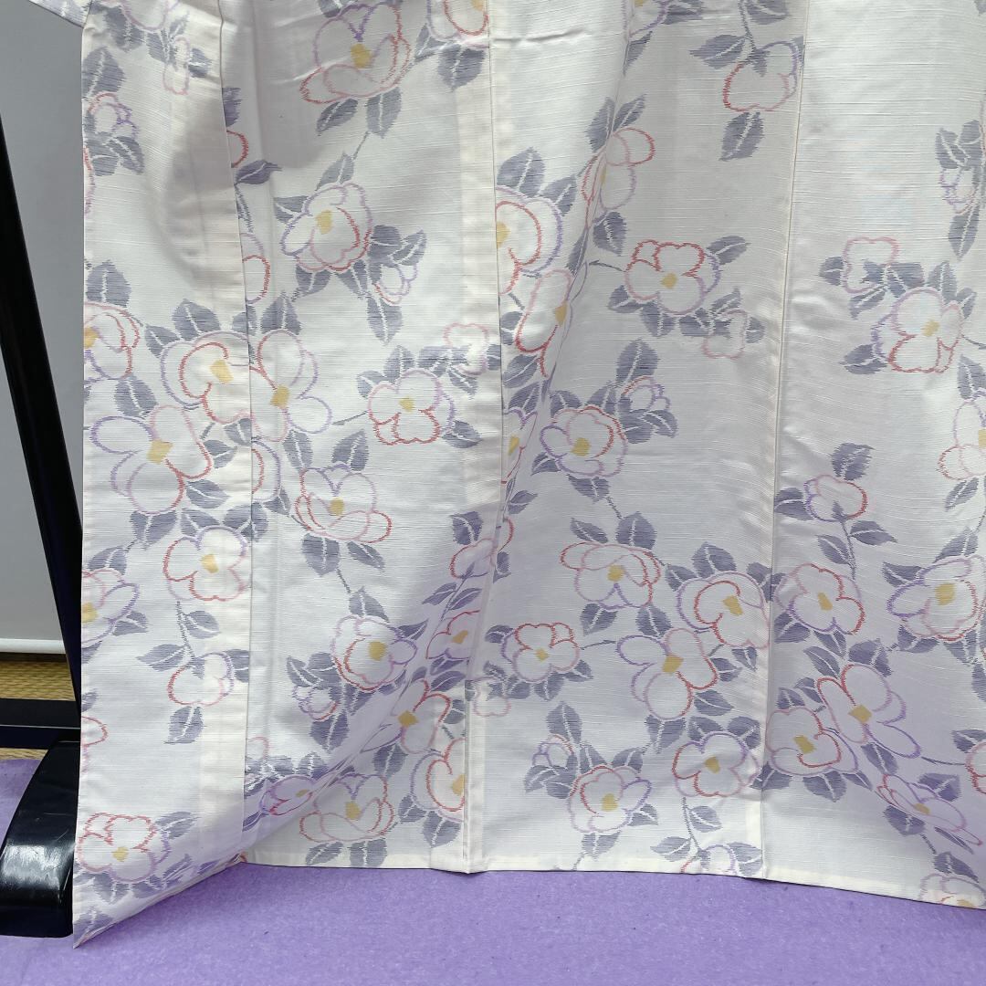 ★2417★ 紬 単衣 白地 花柄 和装 和服