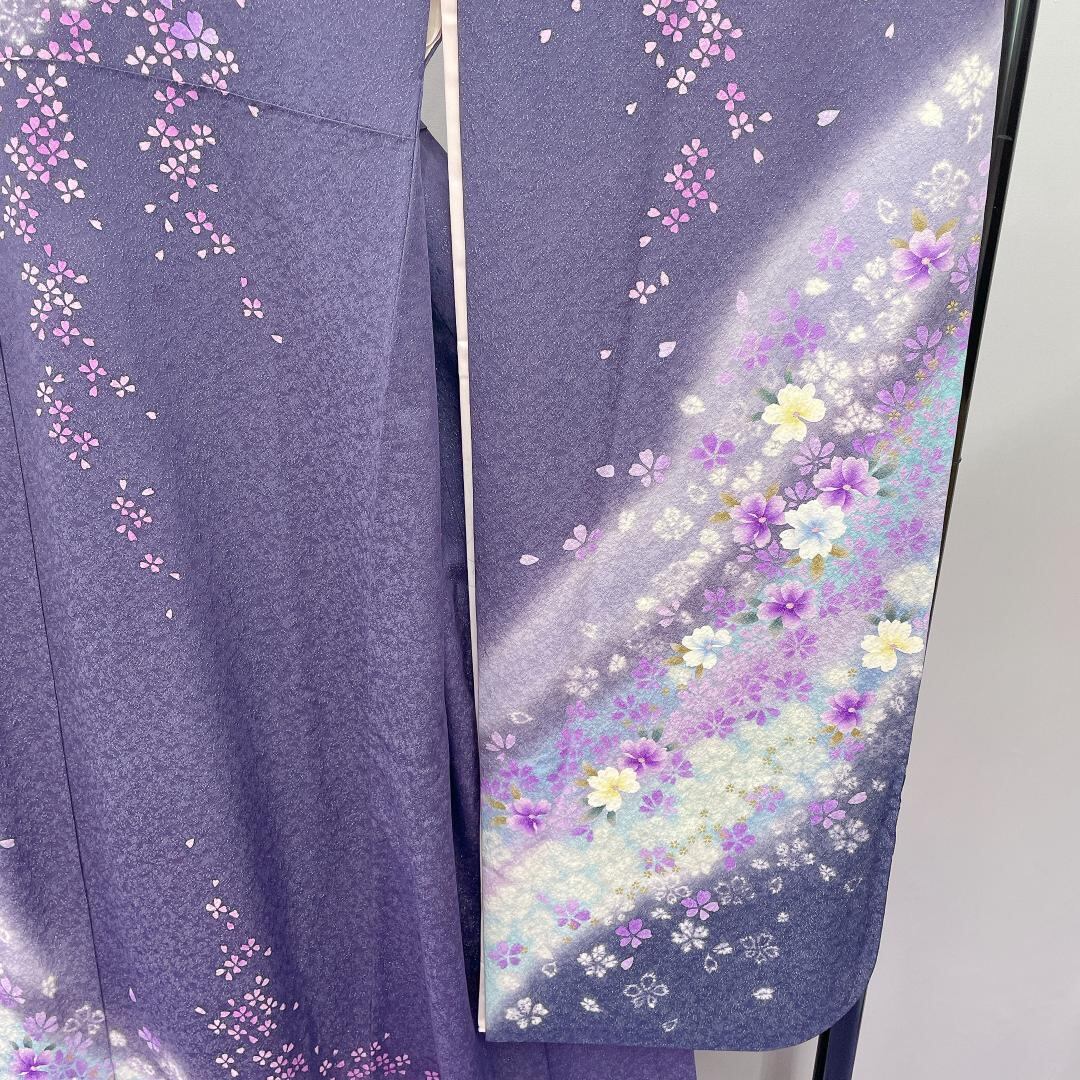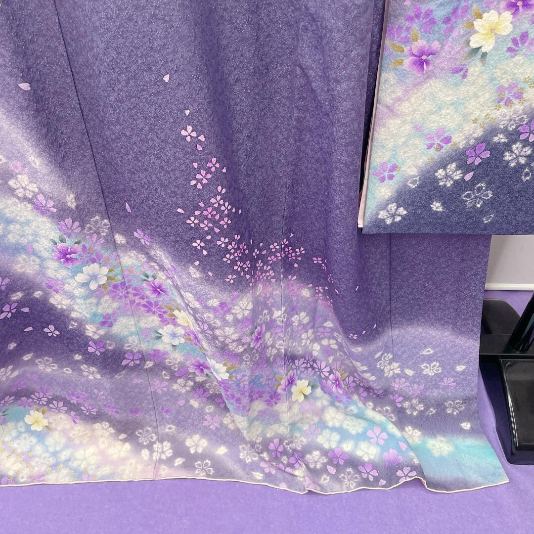 ★3226★ 振袖 鳩羽紫 灰み紫 桜の花柄 襦袢付き 着物セット