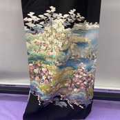 6331 海景色 黒留袖 着物 正絹 結婚式 落款 襟汚れあり