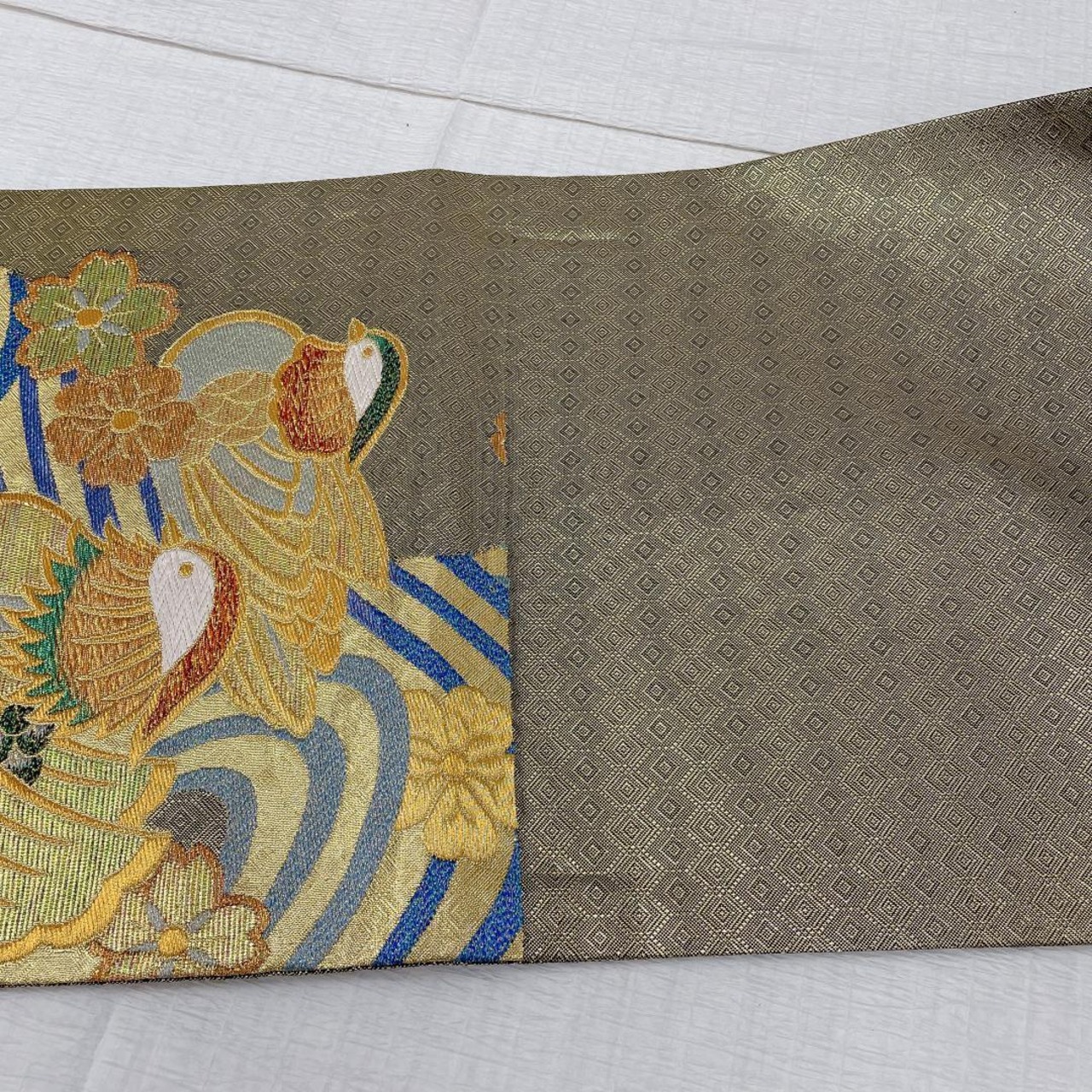 ★3294★ 振袖用 袋帯 正絹 豪華 ゴールド おしどり 結婚式 成人式
