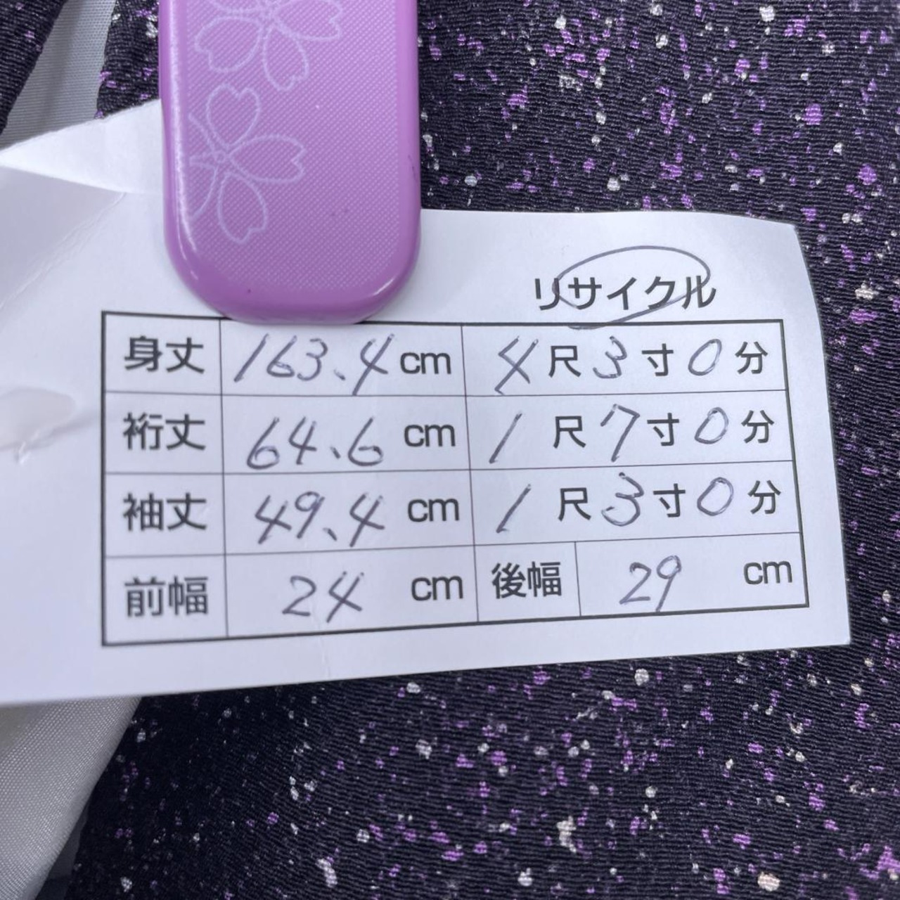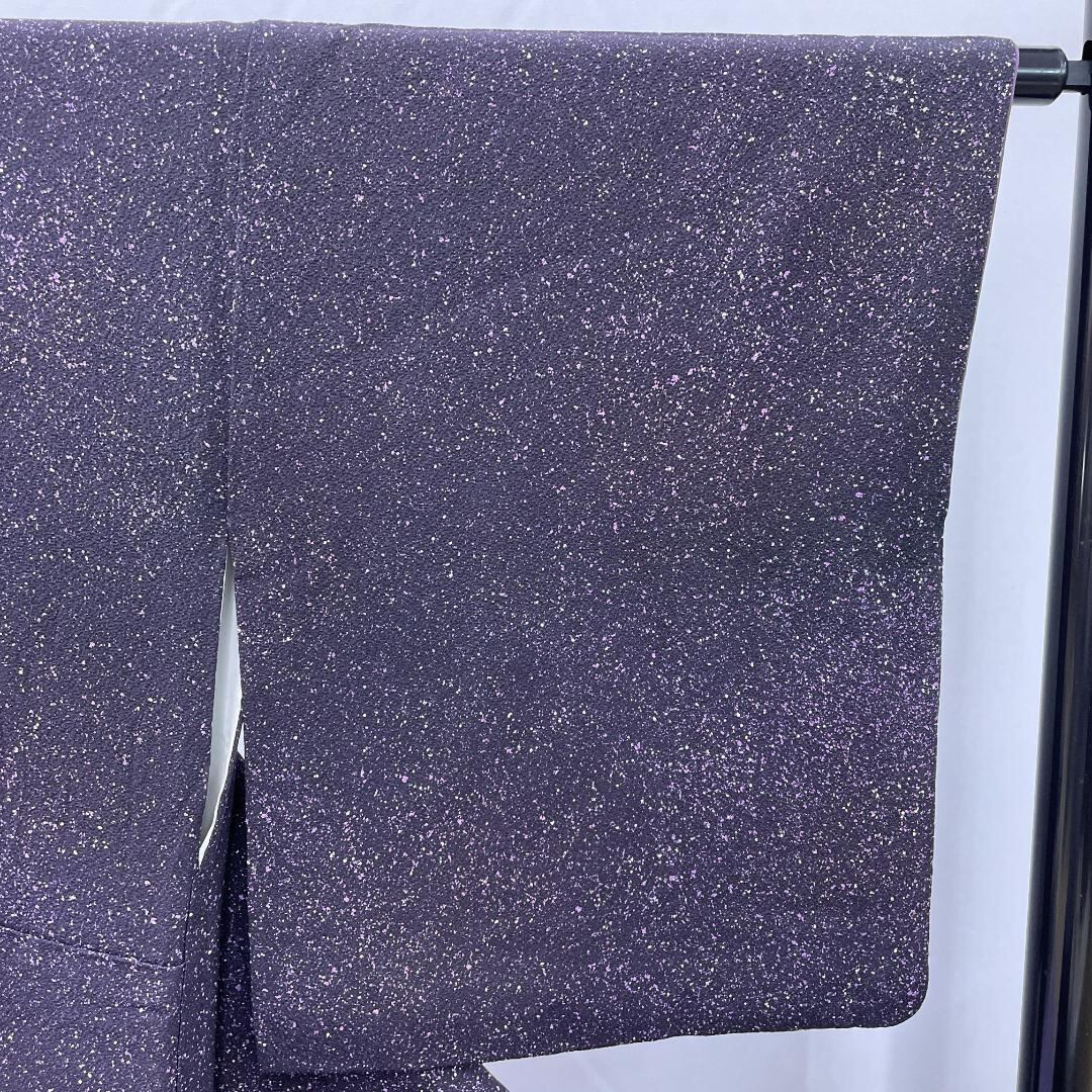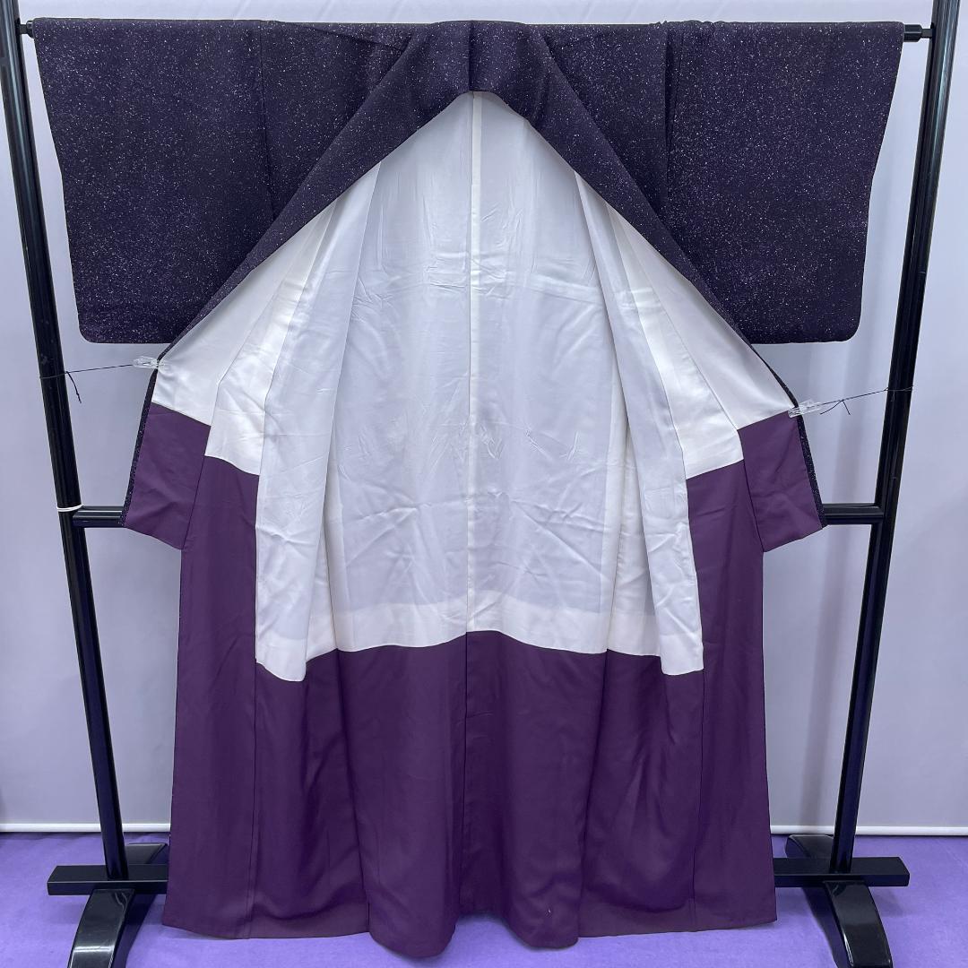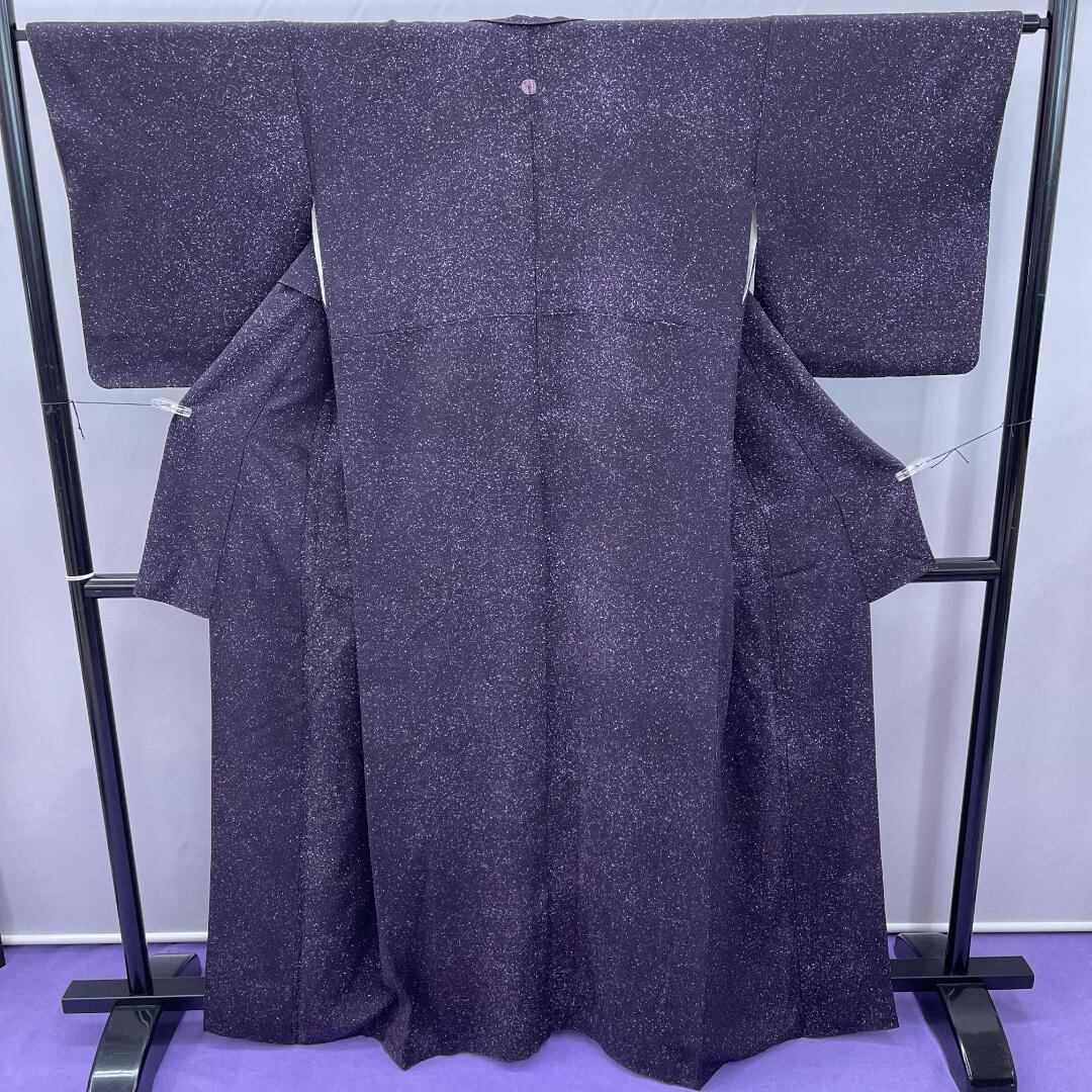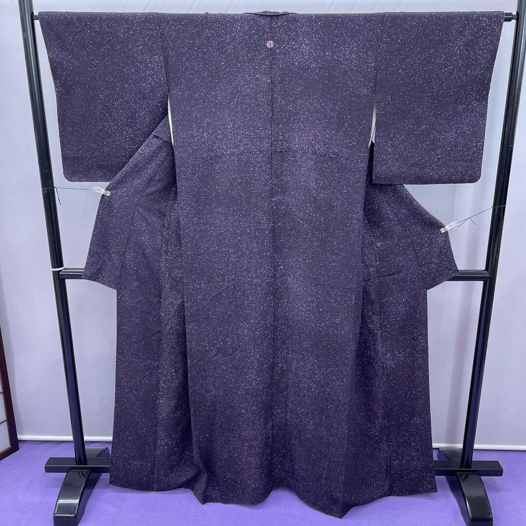 ★3295★ 色無地 暗い紫色 たたき柄 袷 正絹 紋入り
