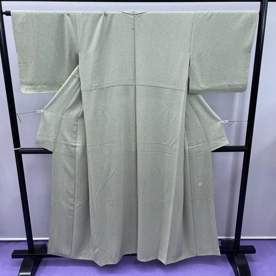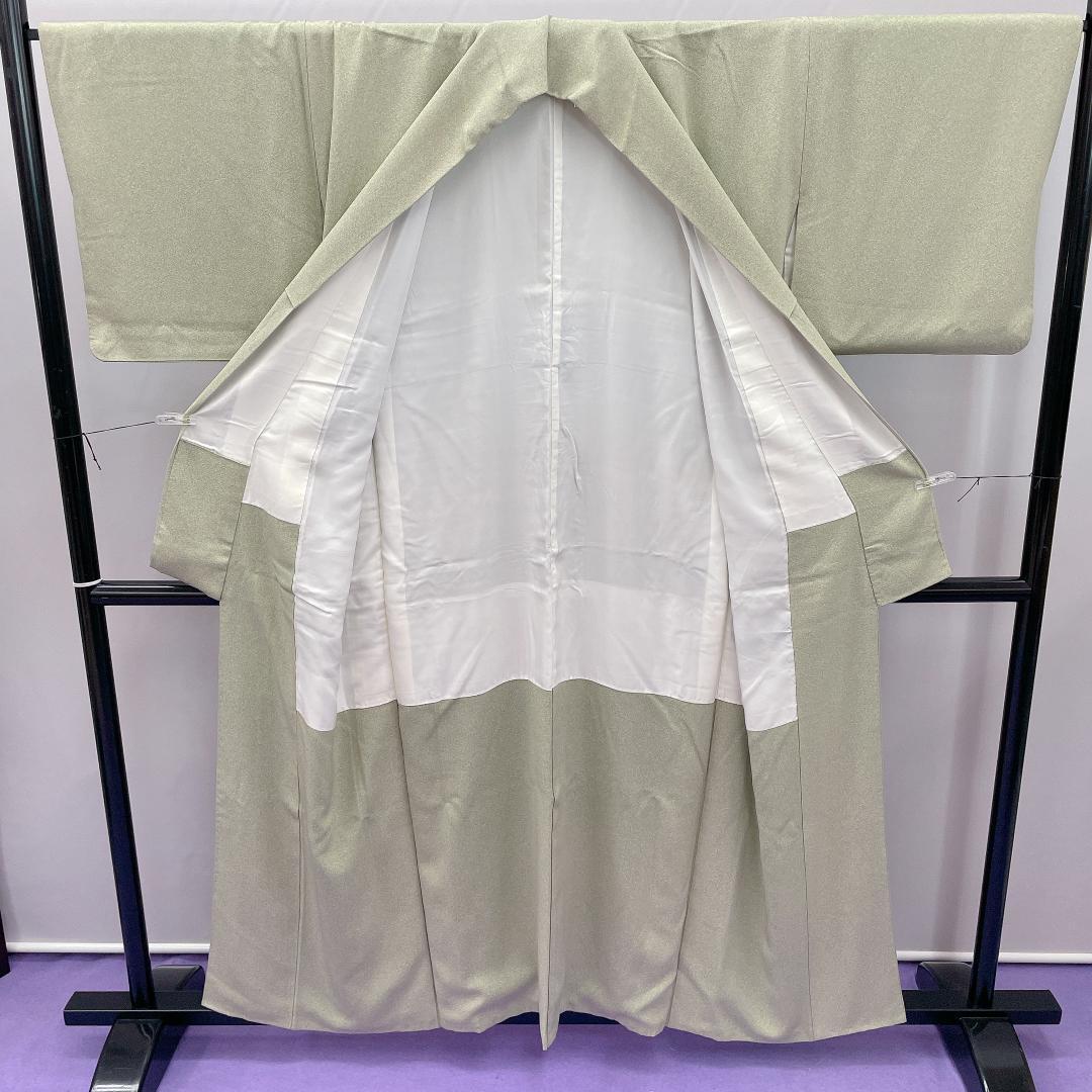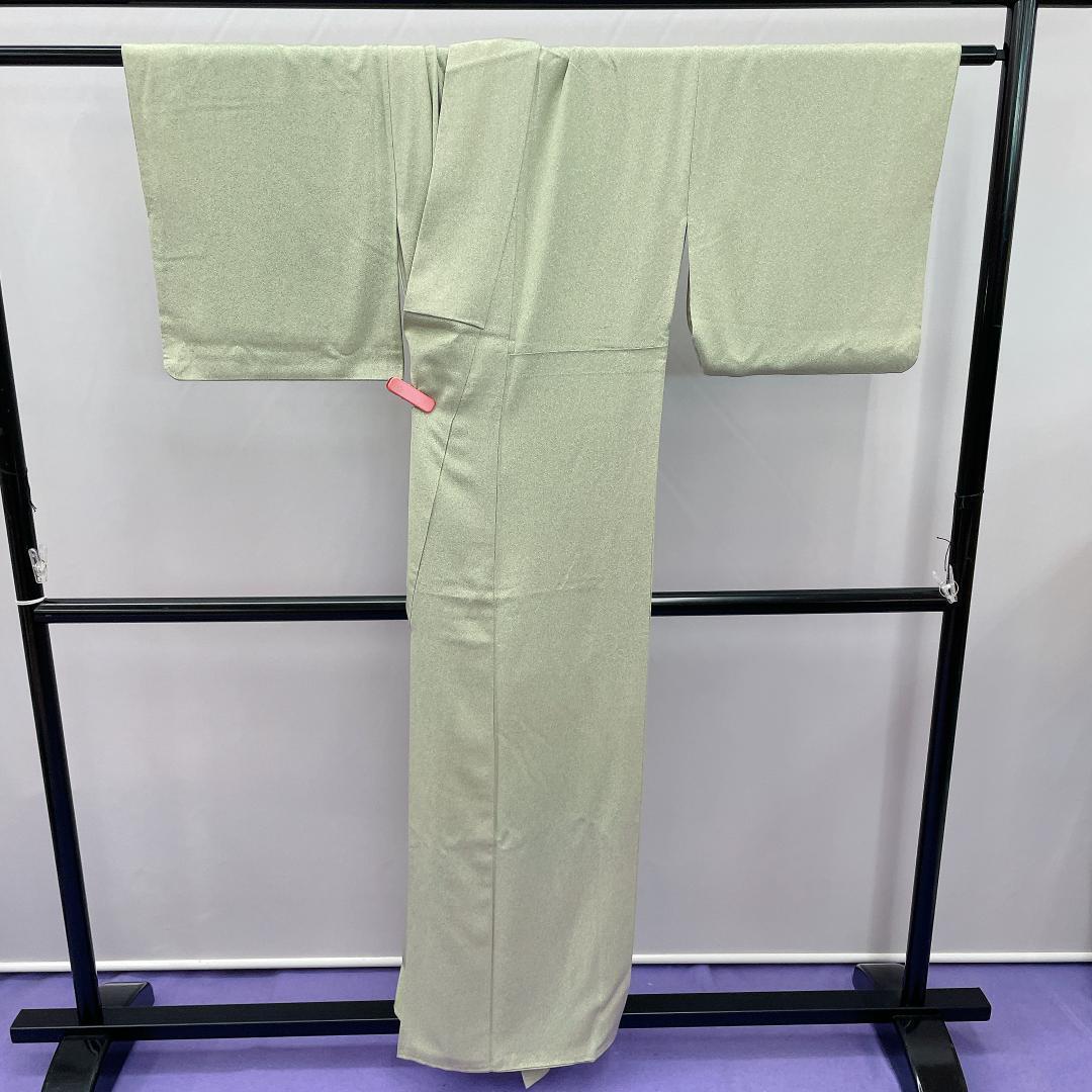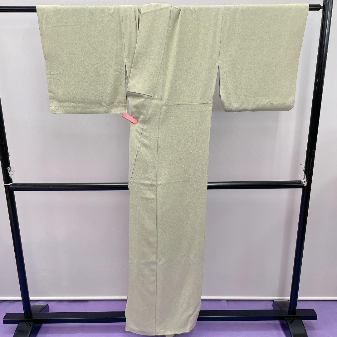 ★3298★ 色無地 くすんだ緑色 袷 正絹 紋入り 蔦紋