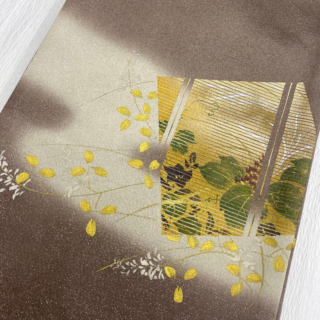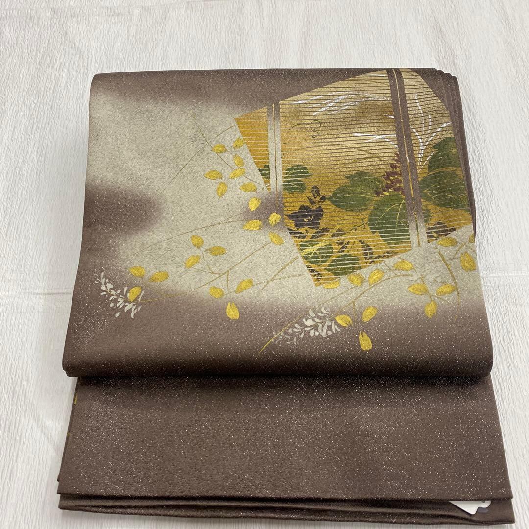 6506 未使用品 秋草蒔絵 袋帯 正絹 六通 訪問着 色無地 付下