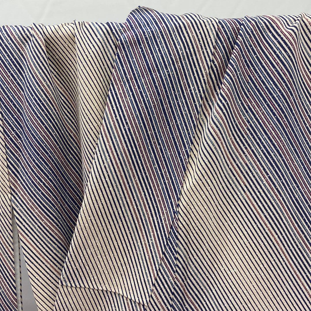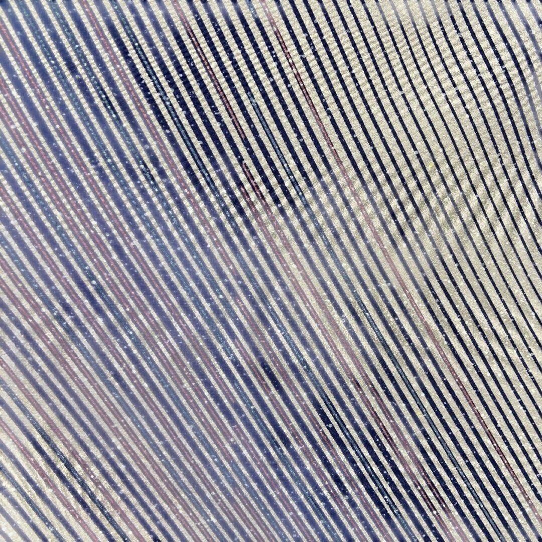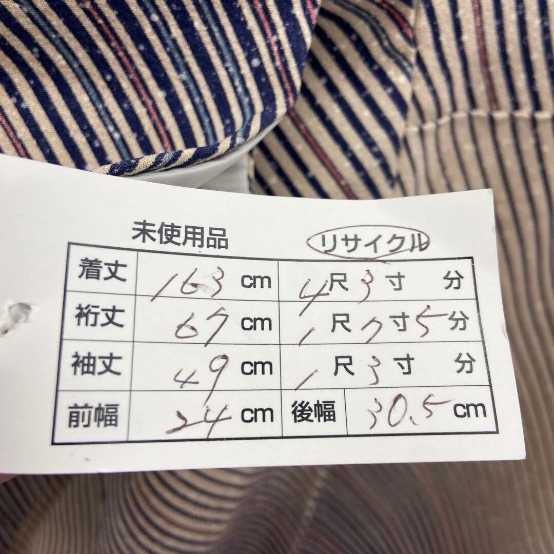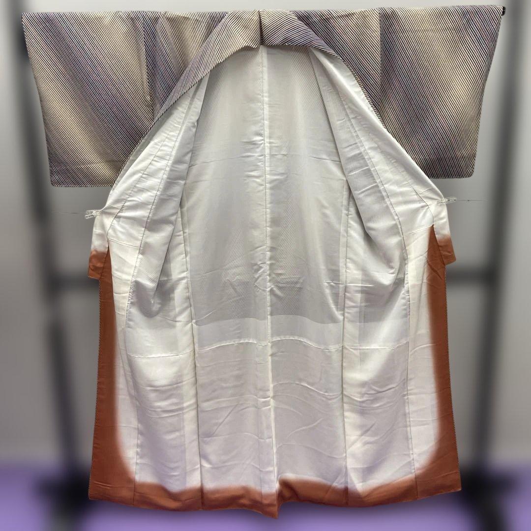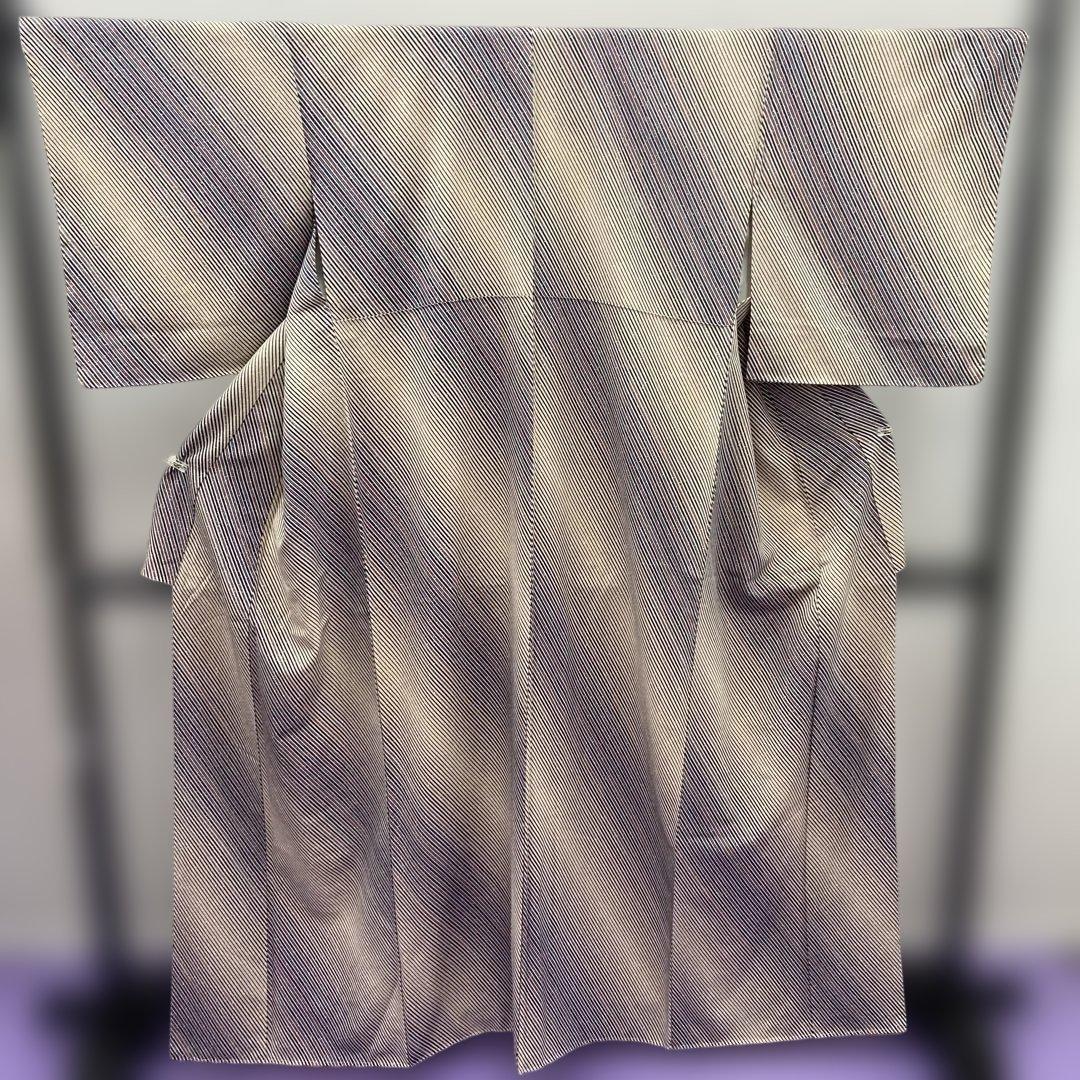 6386 ベージュ 紺色 ストライプ 小紋 着物 正絹