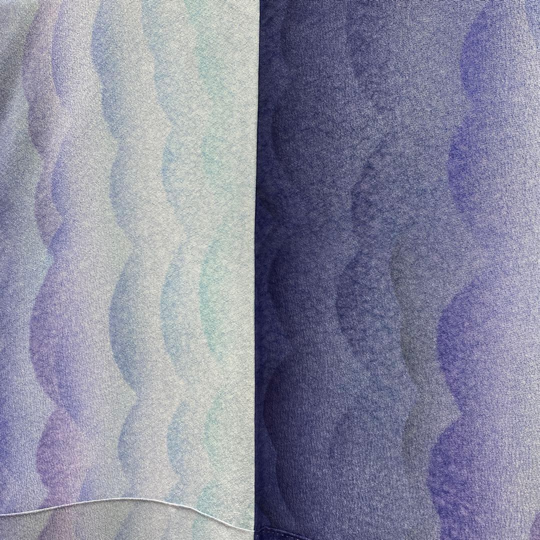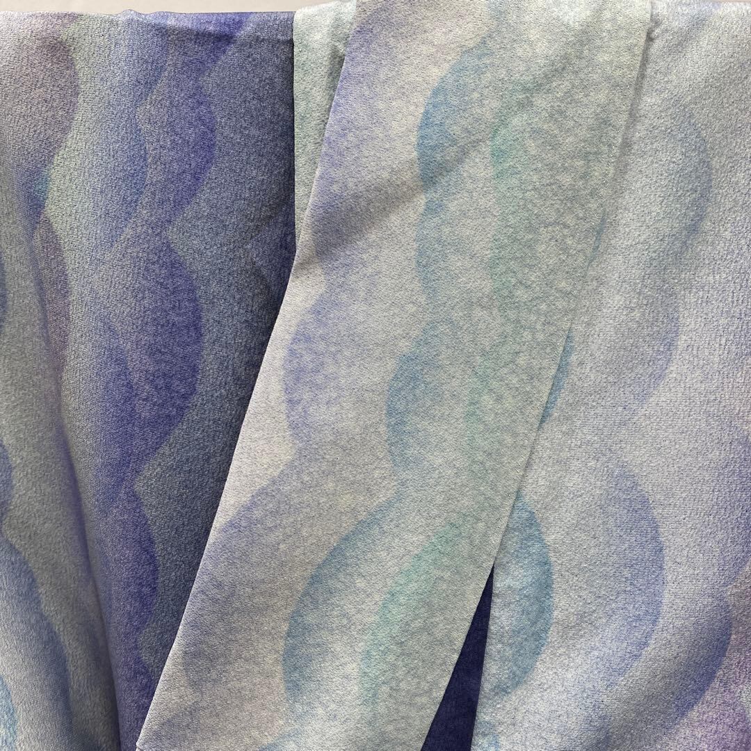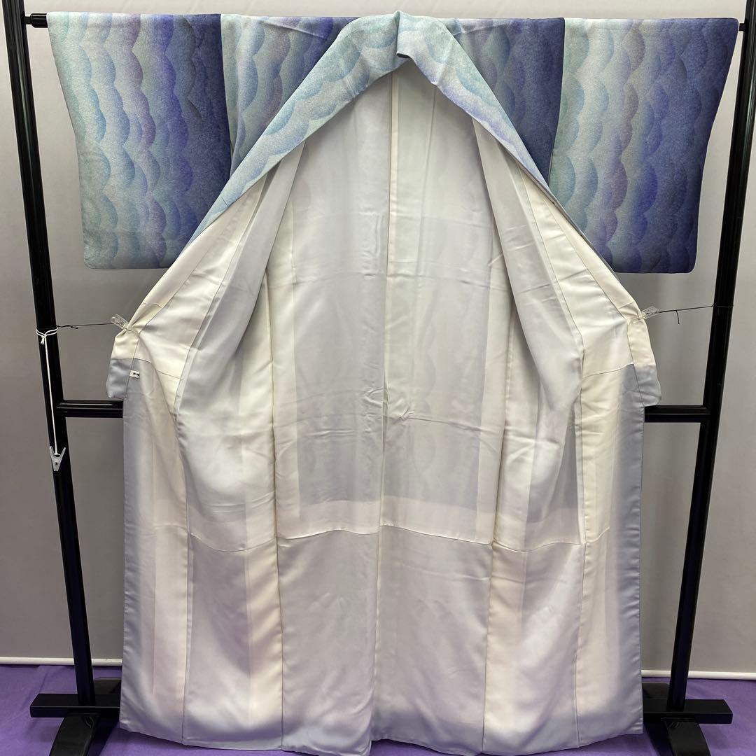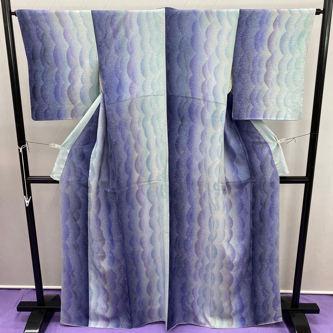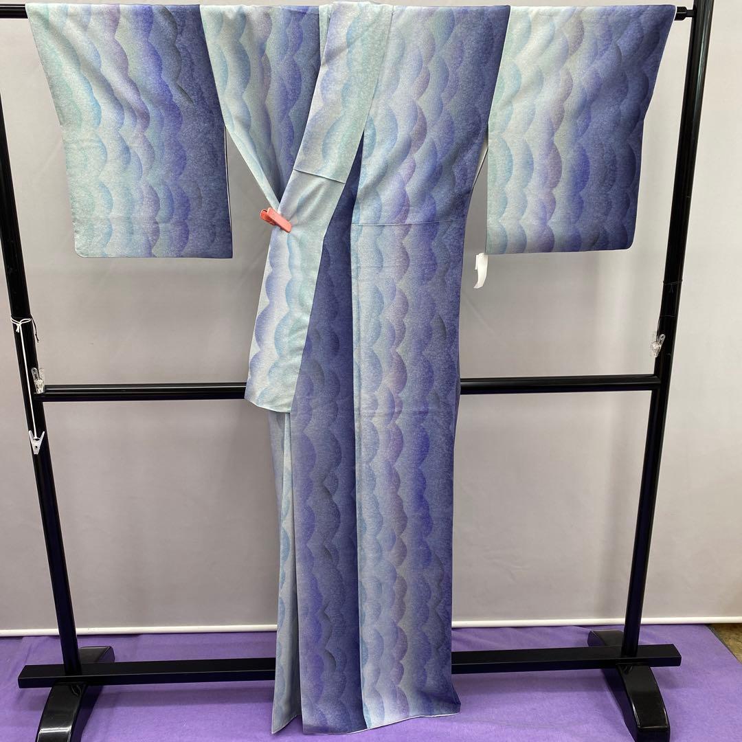 6387 ブルー系 小紋 着物 正絹 波 グラデーション