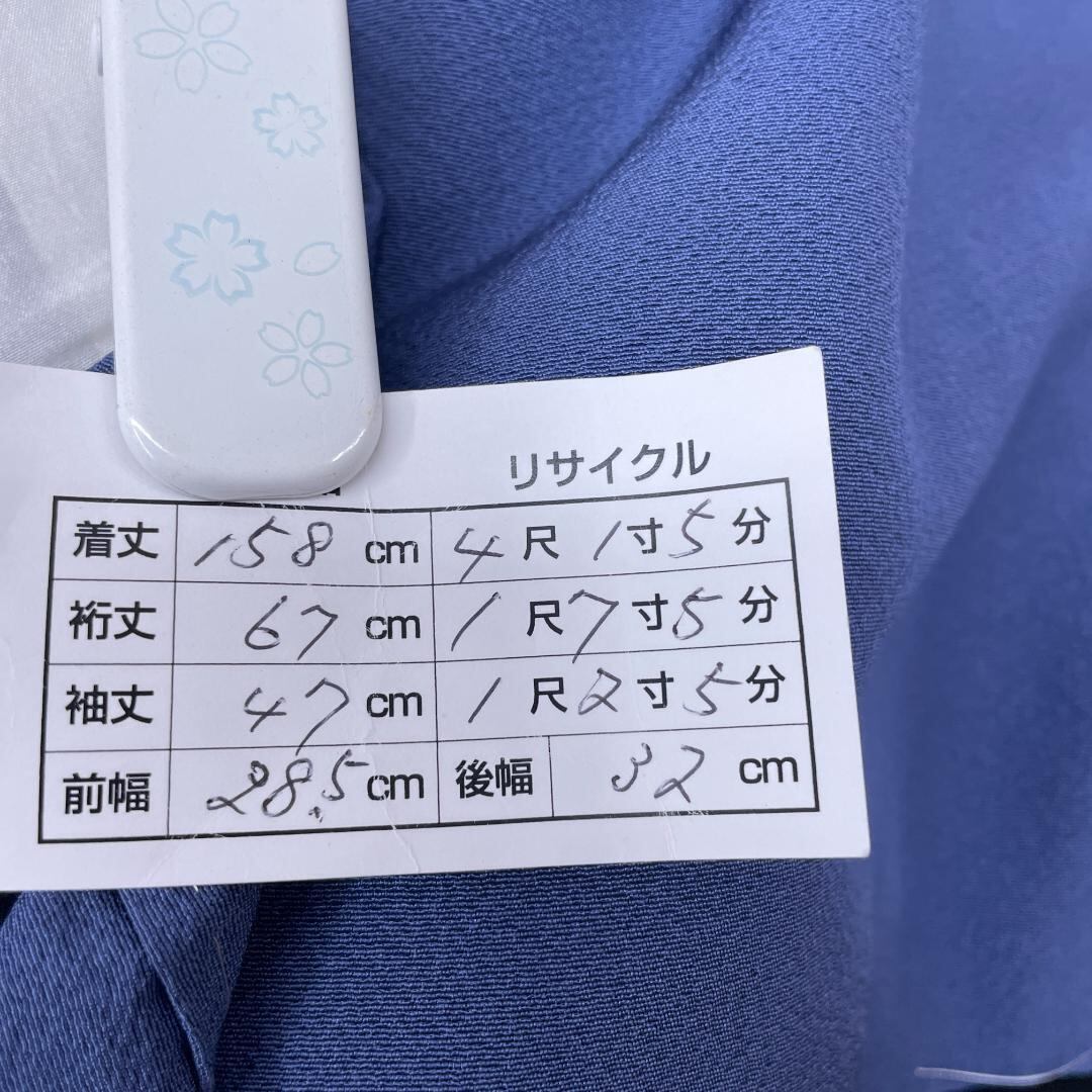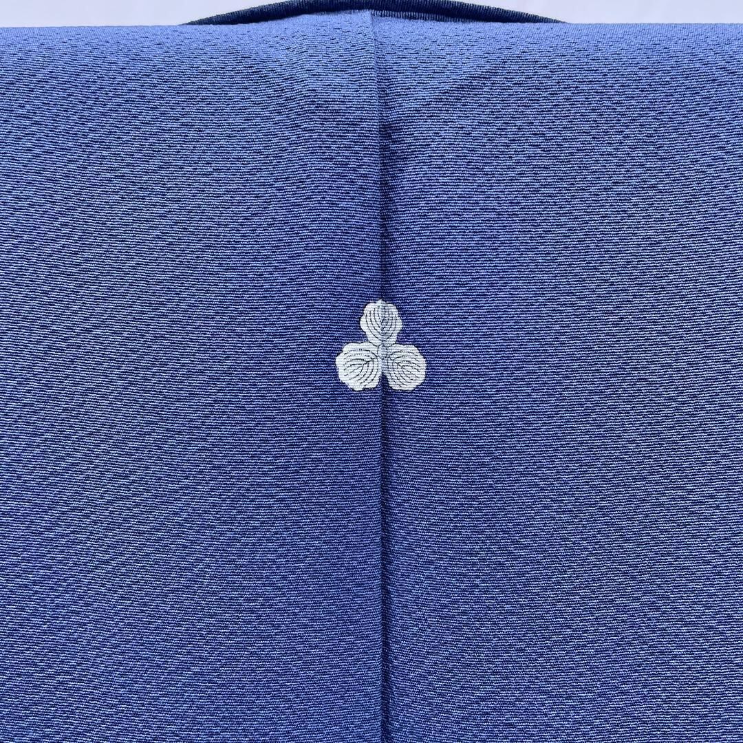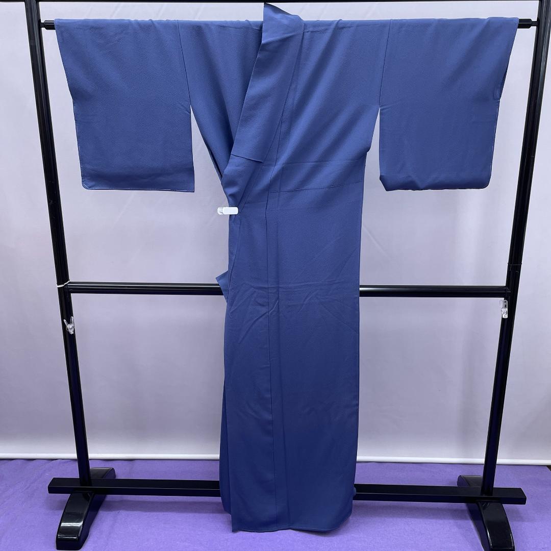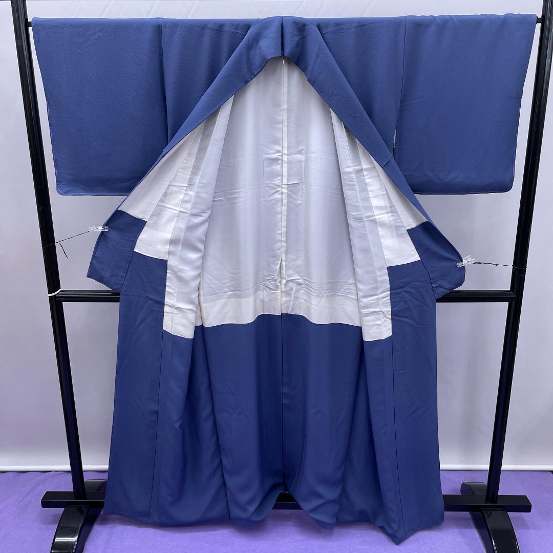 ★3540★ 色無地 暗い青色 袷 正絹 紋入り 三つ柏紋