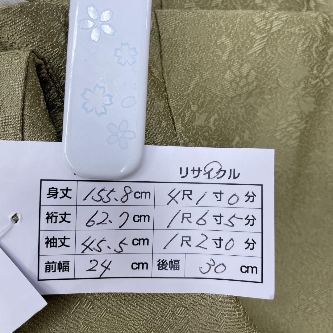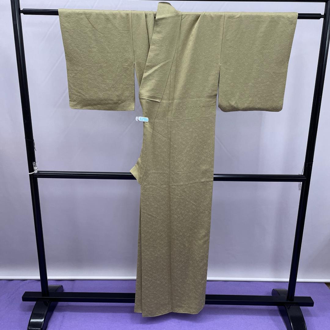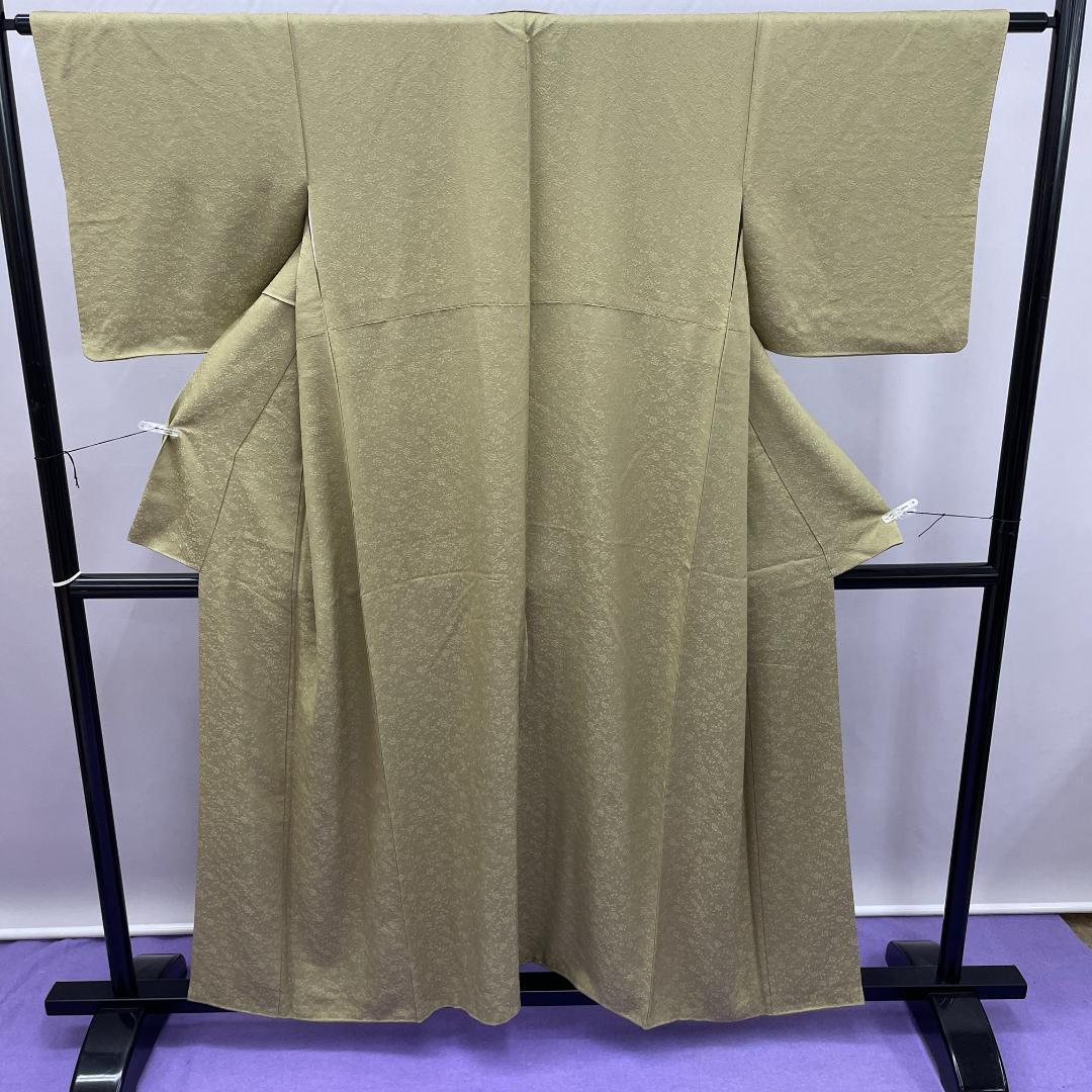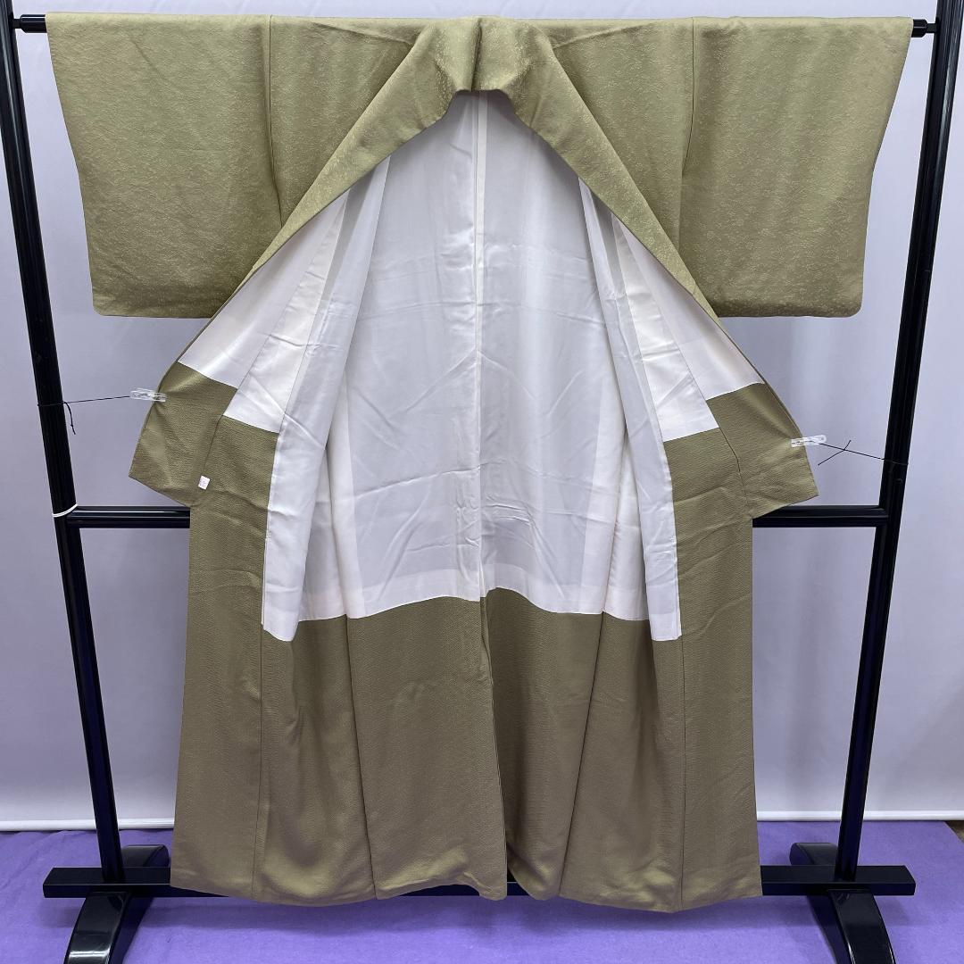 ★3545★ 色無地 茶み緑色 袷 正絹 紋入り 紋入り