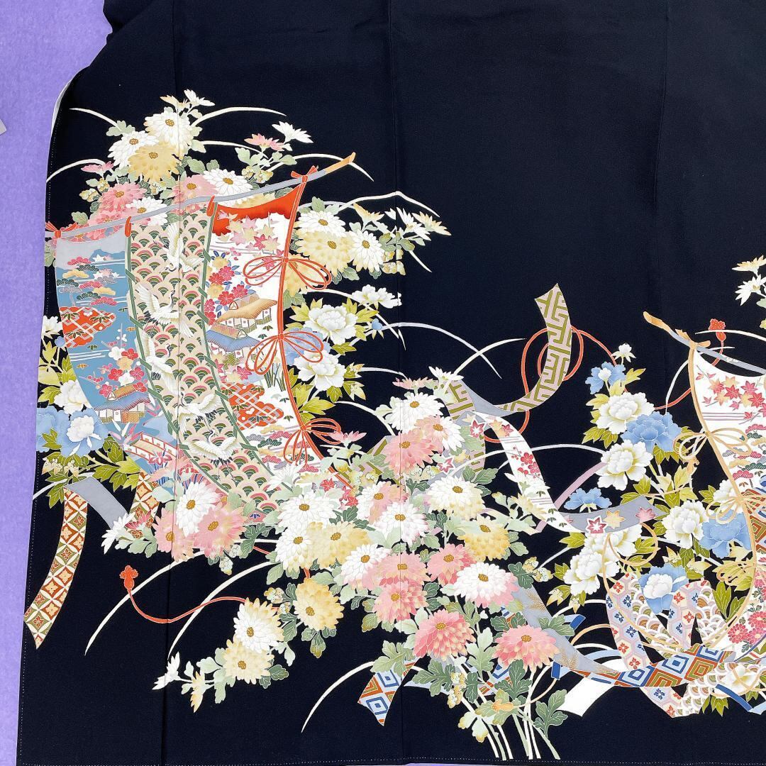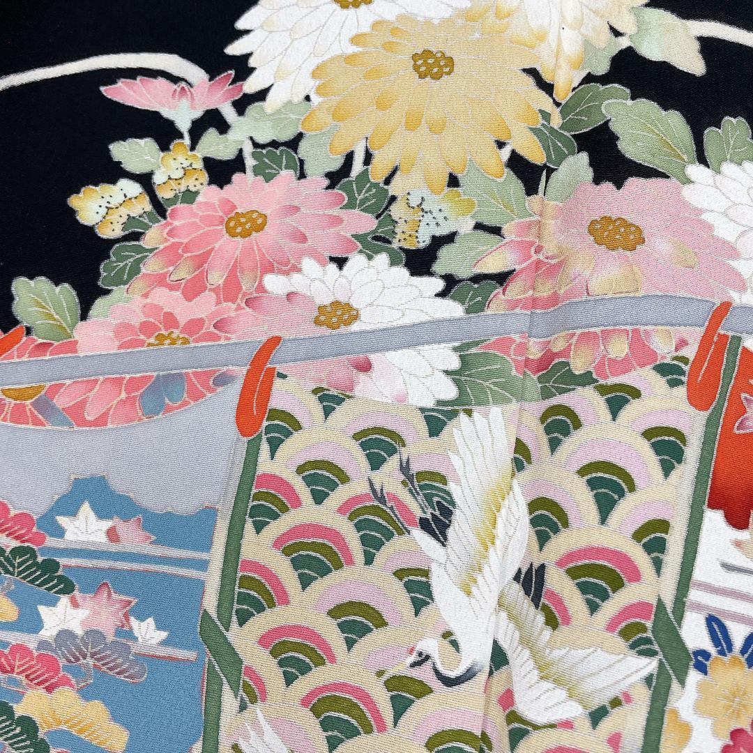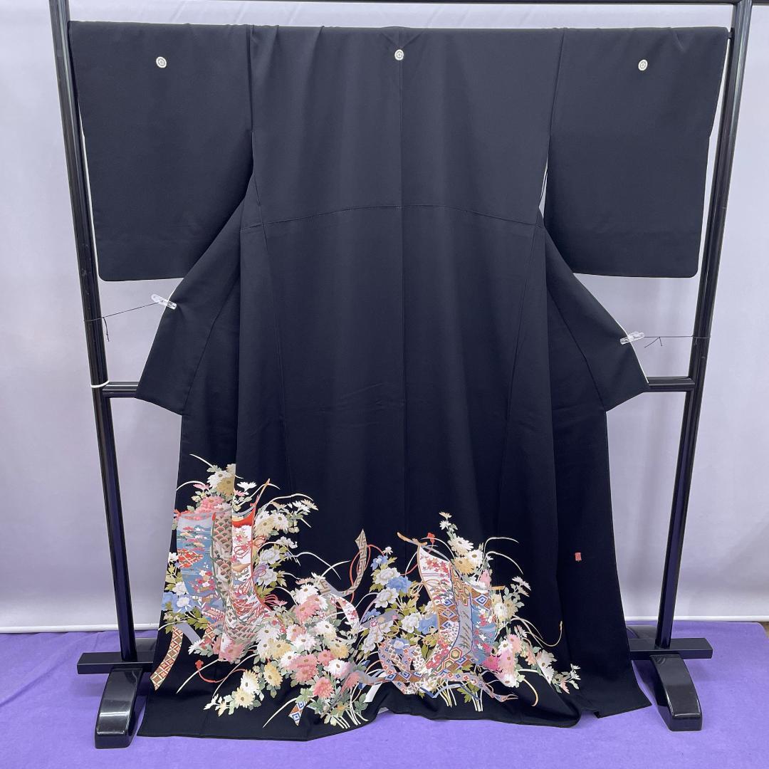 ※カメラの自動調整で、黒地が白っぽく写ってしまいます。黒留袖で間違いありません。また、色褪せということでもありません。