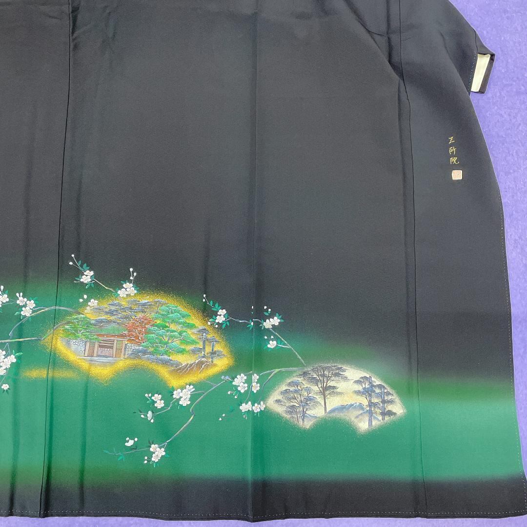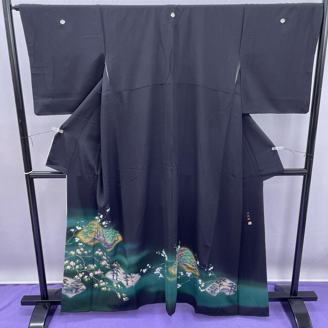 ※カメラの自動調整で、黒地が白っぽく写ってしまいます。黒留袖で間違いありません。また、色褪せということでもありません。