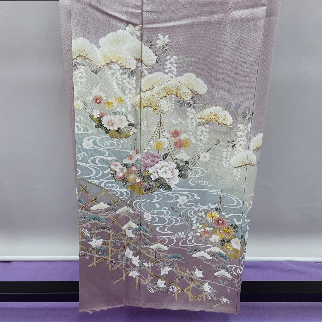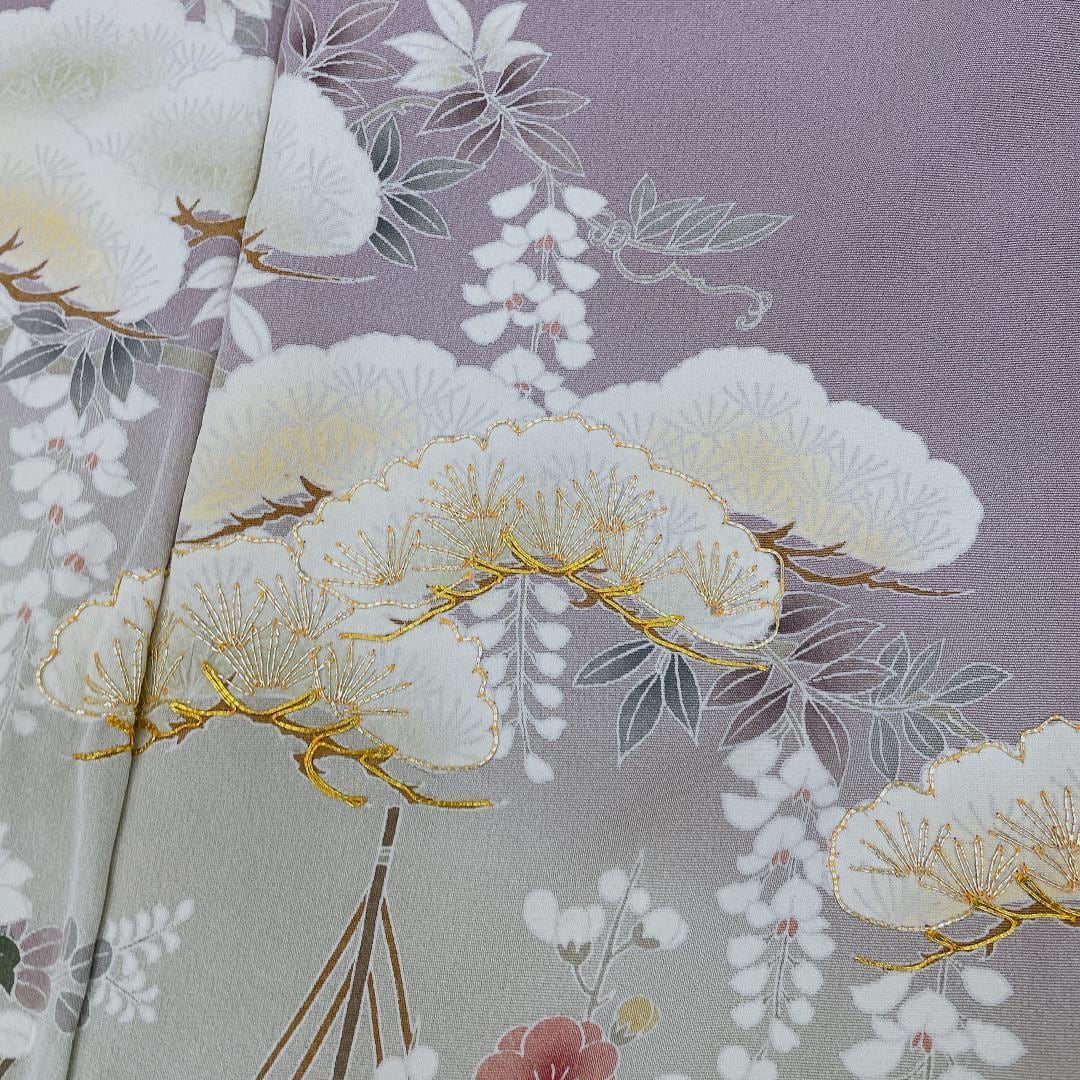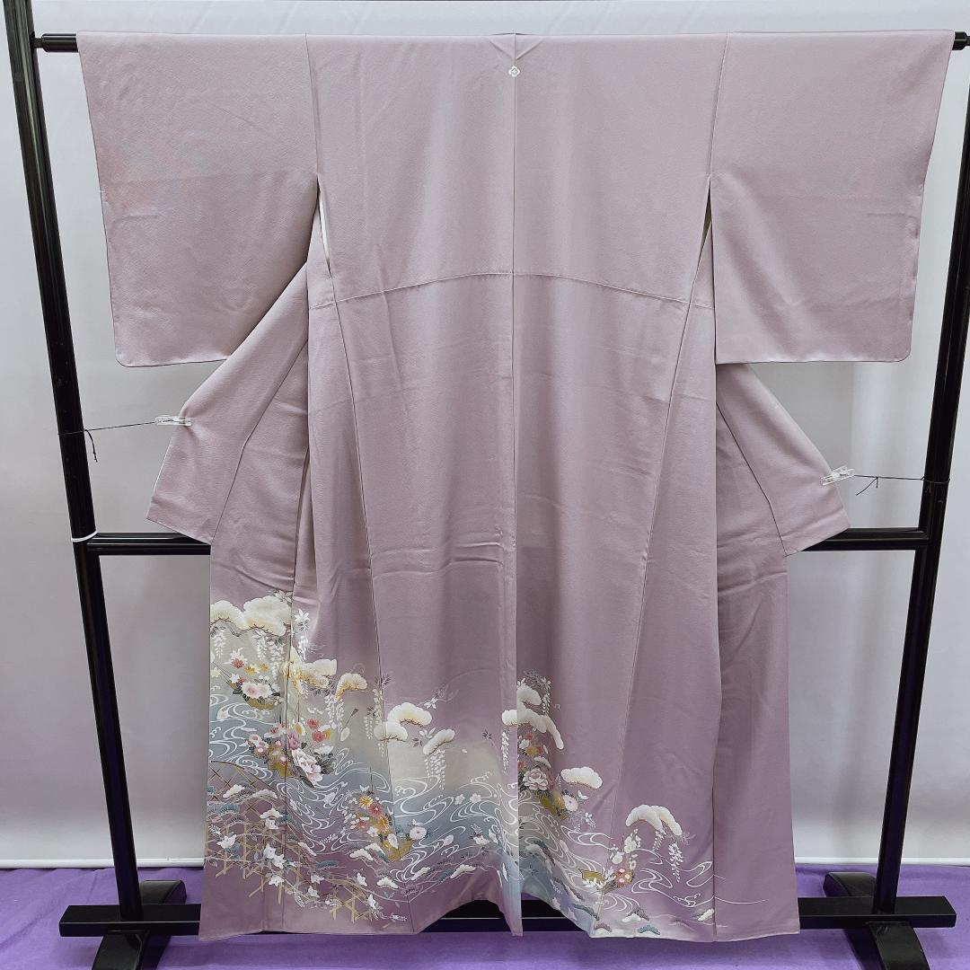 ★3559★ 色留袖 袷 訪問着仕立て グレーみ淡い紫色