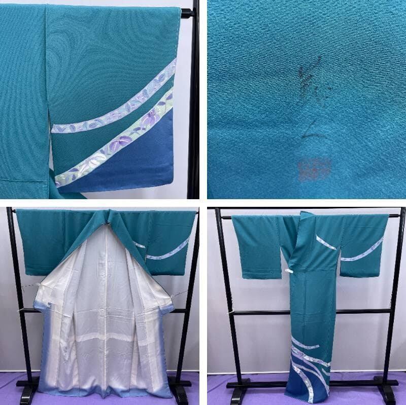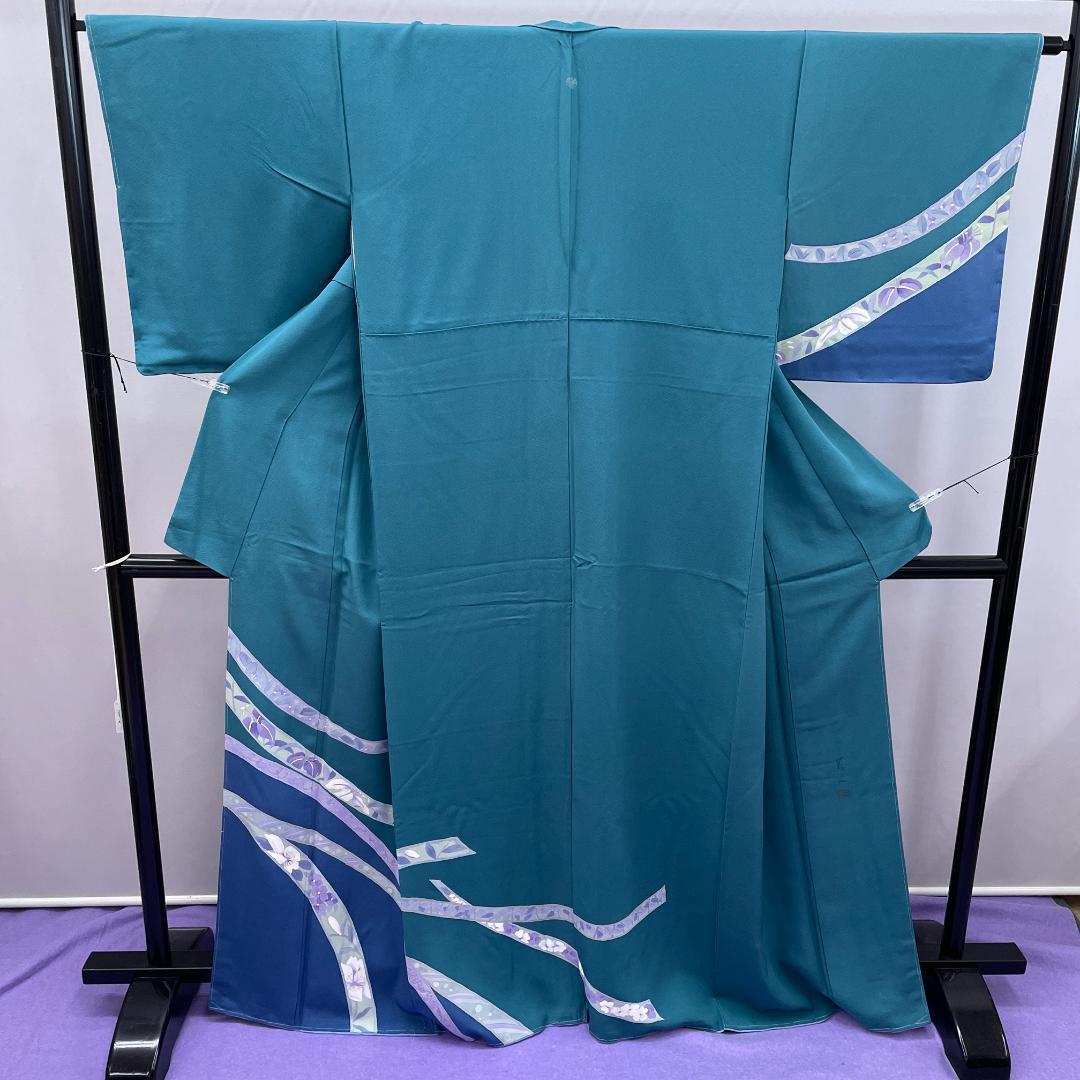 ★3590★ 訪問着 袷 青緑色 吉富義人の旋律 和ちりめん 和装