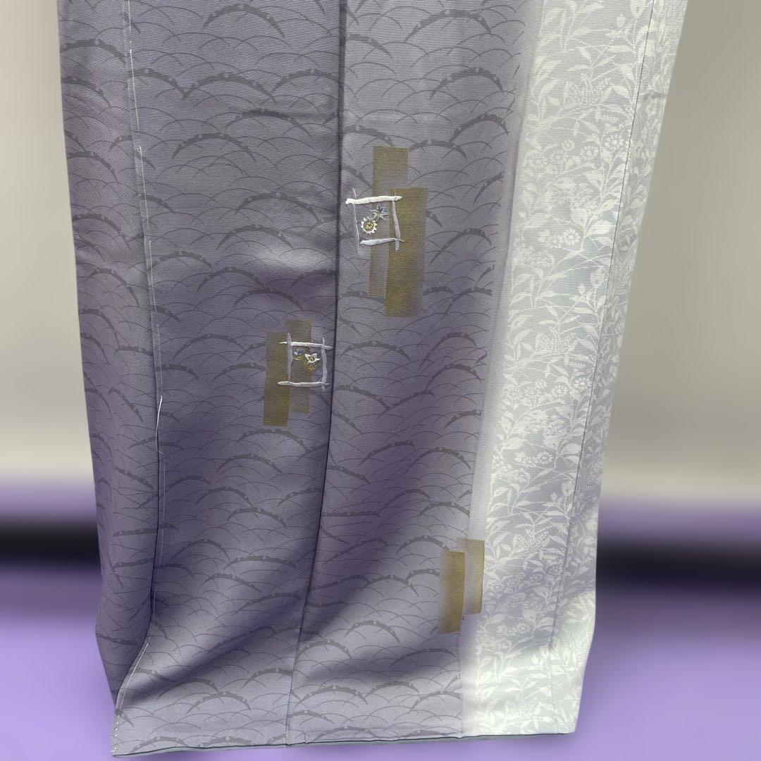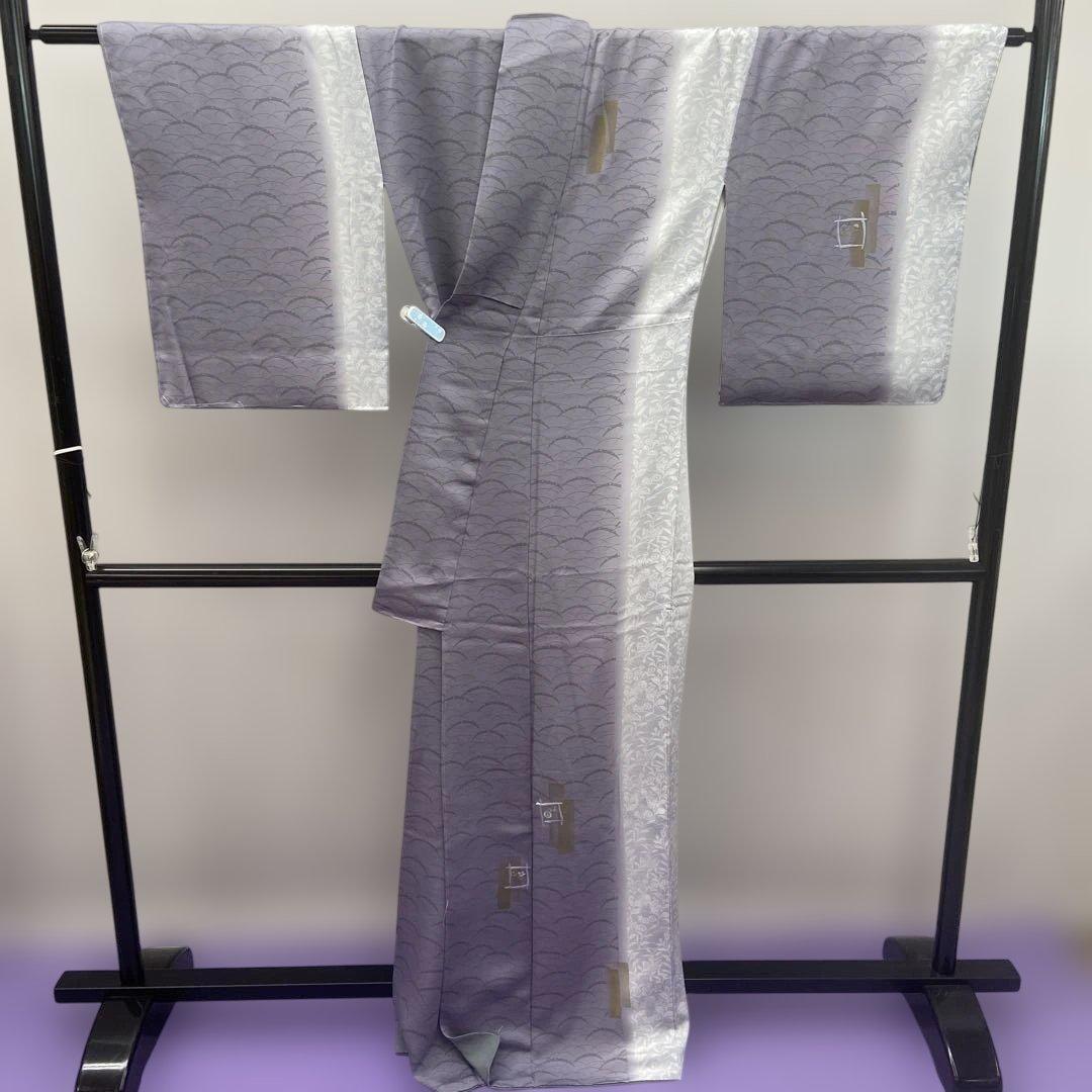 6592 灰紫 訪問着 着物 正絹 未使用品