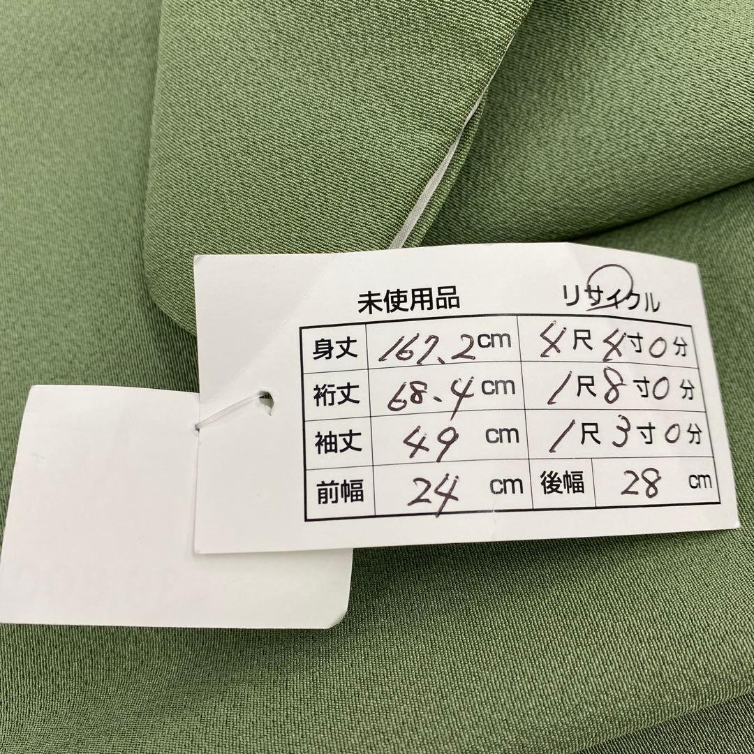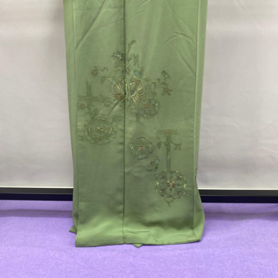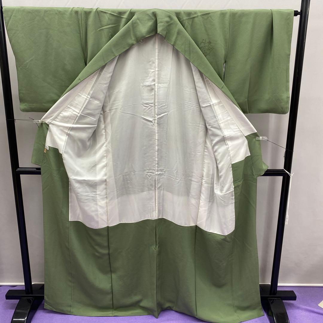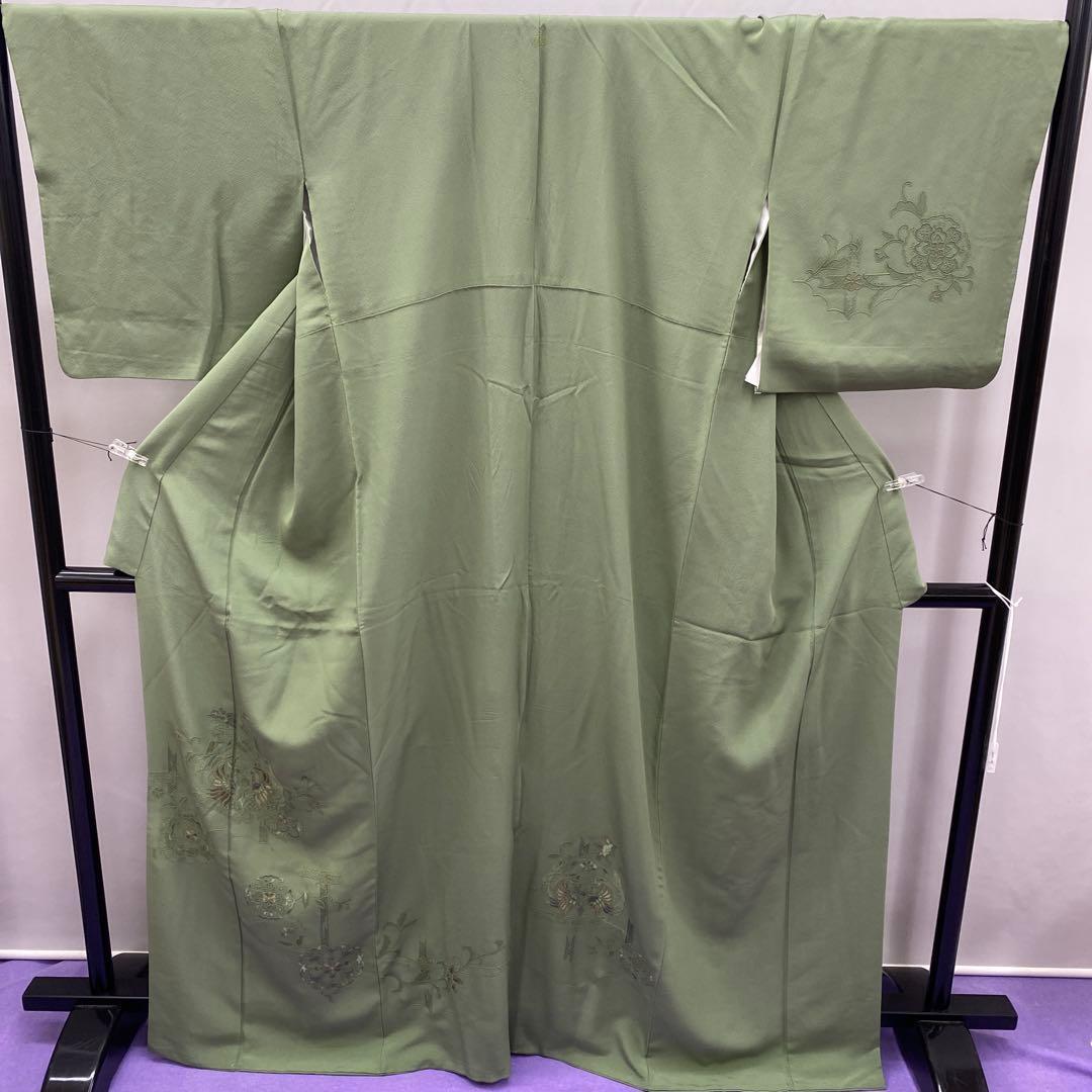 6744 汕頭刺繍 付下 着物 正絹 薄灰緑