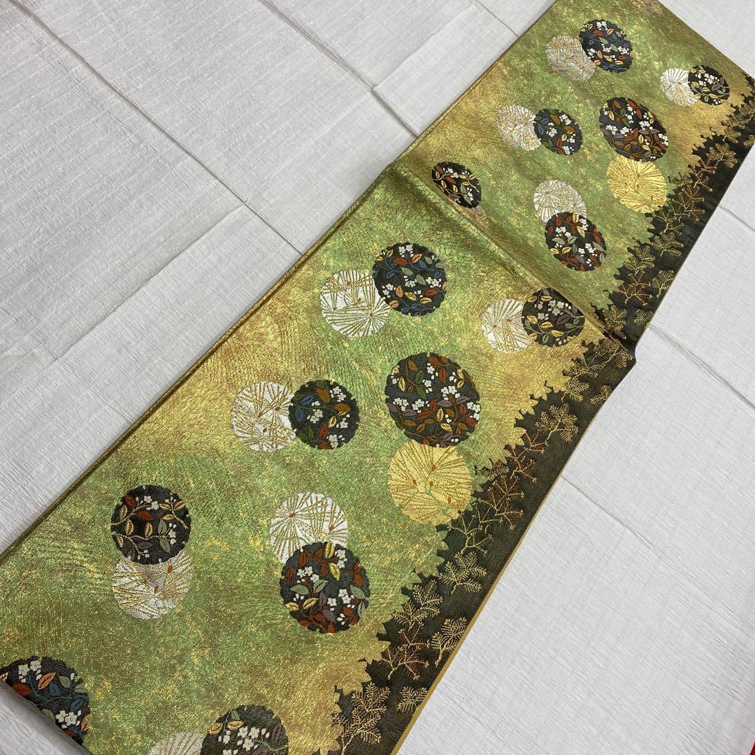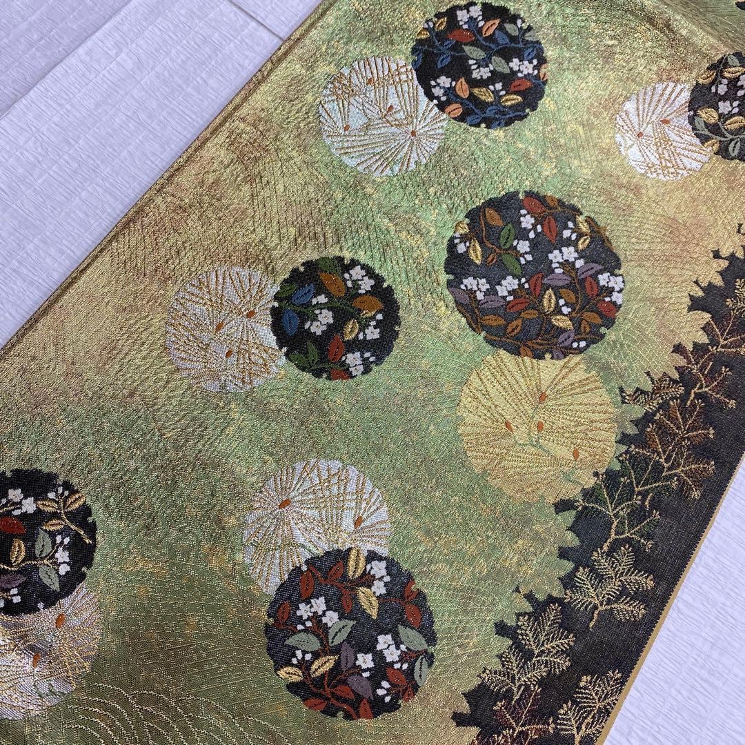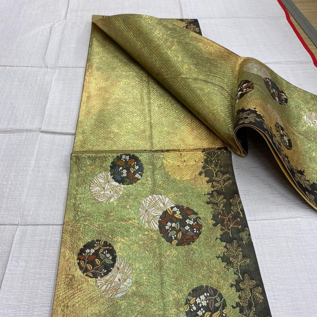 6786 丸紋 袋帯 正絹 六通 訪問着 色無地 付下 風通箔別織 花 松葉