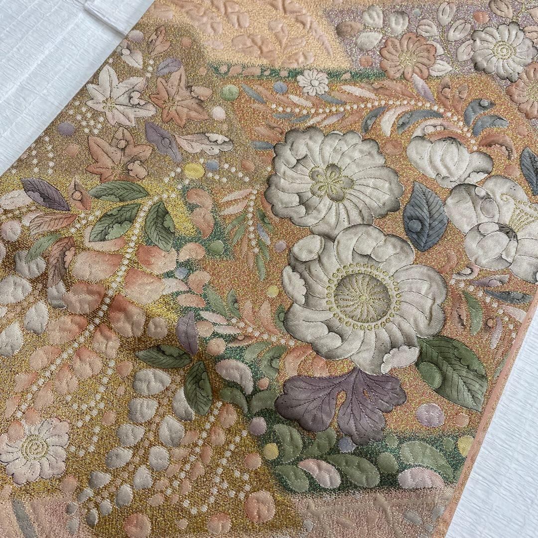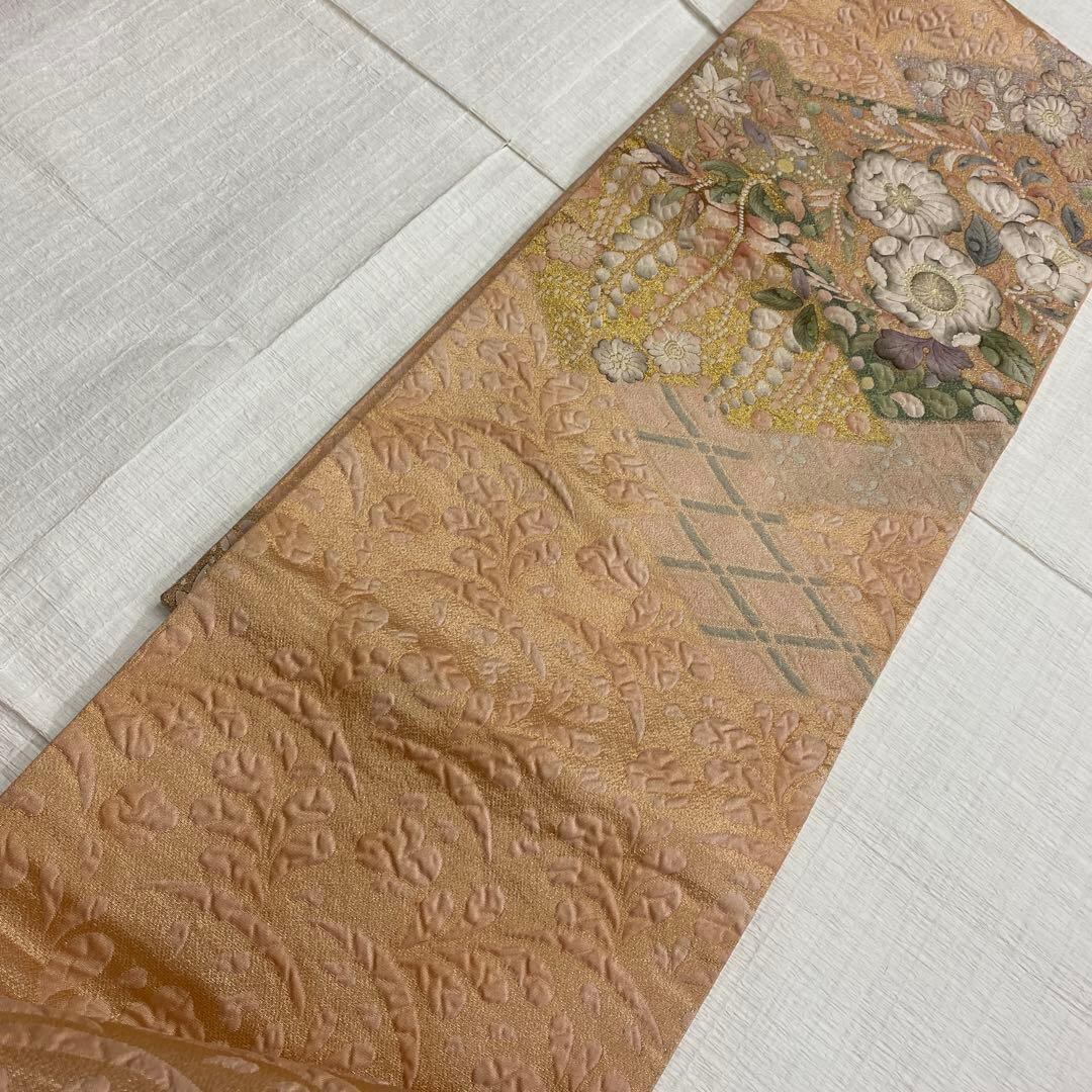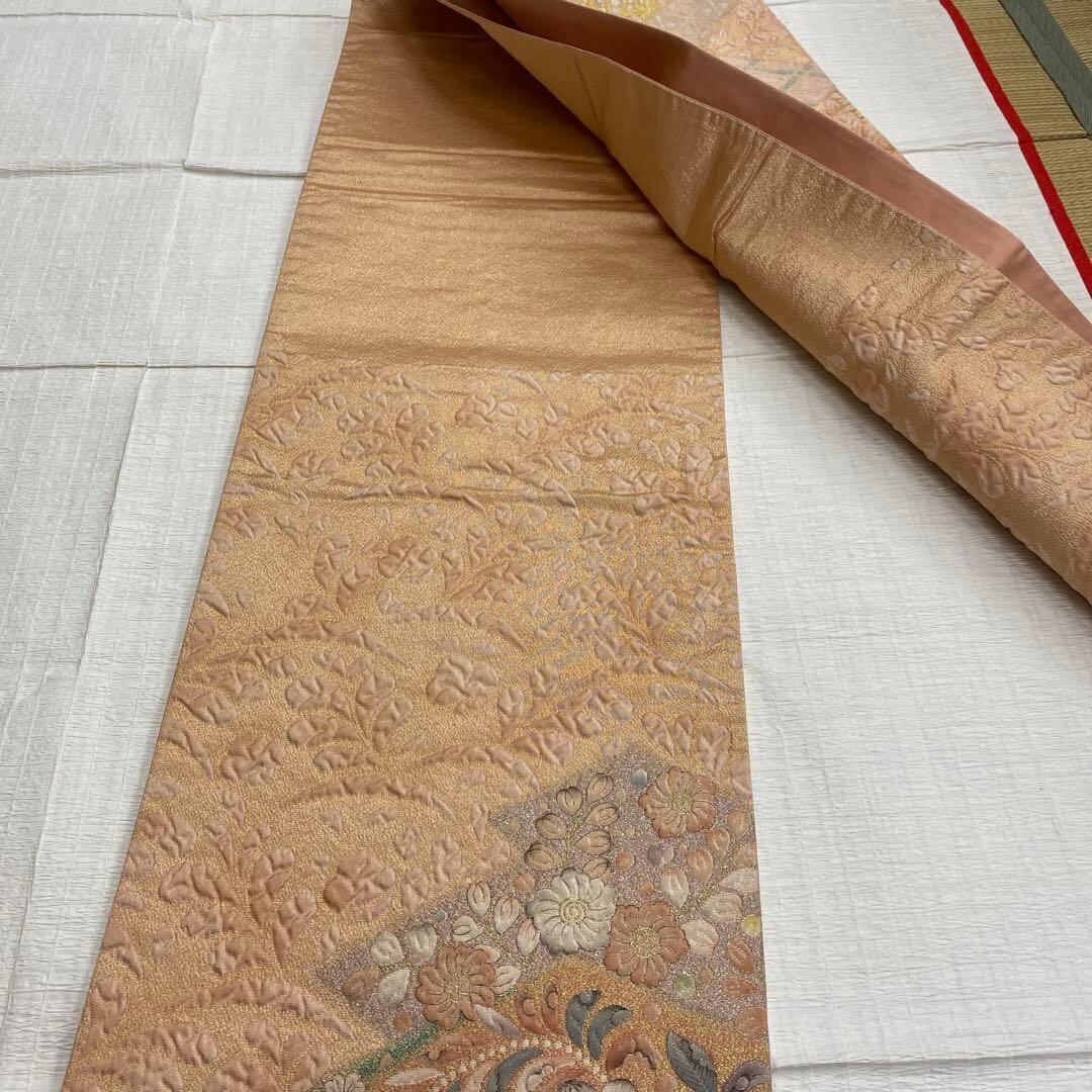 6788 辻が花 袋帯 正絹 六通 訪問着 色無地 付下 オレンジピンク