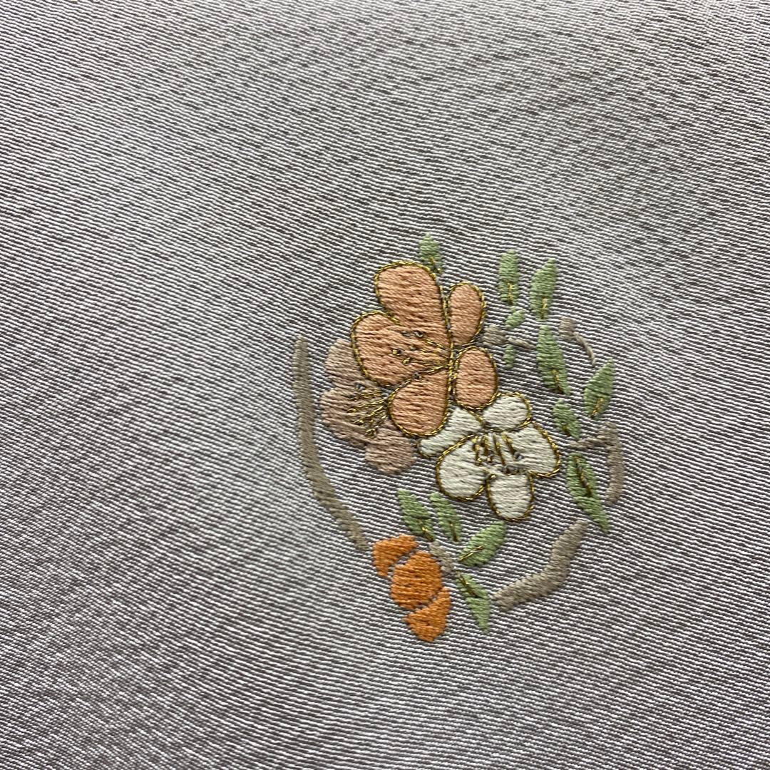 7013 花 刺繍 小紋 着物 正絹 薄グレー 未使用品 しつけ付き 飛び柄