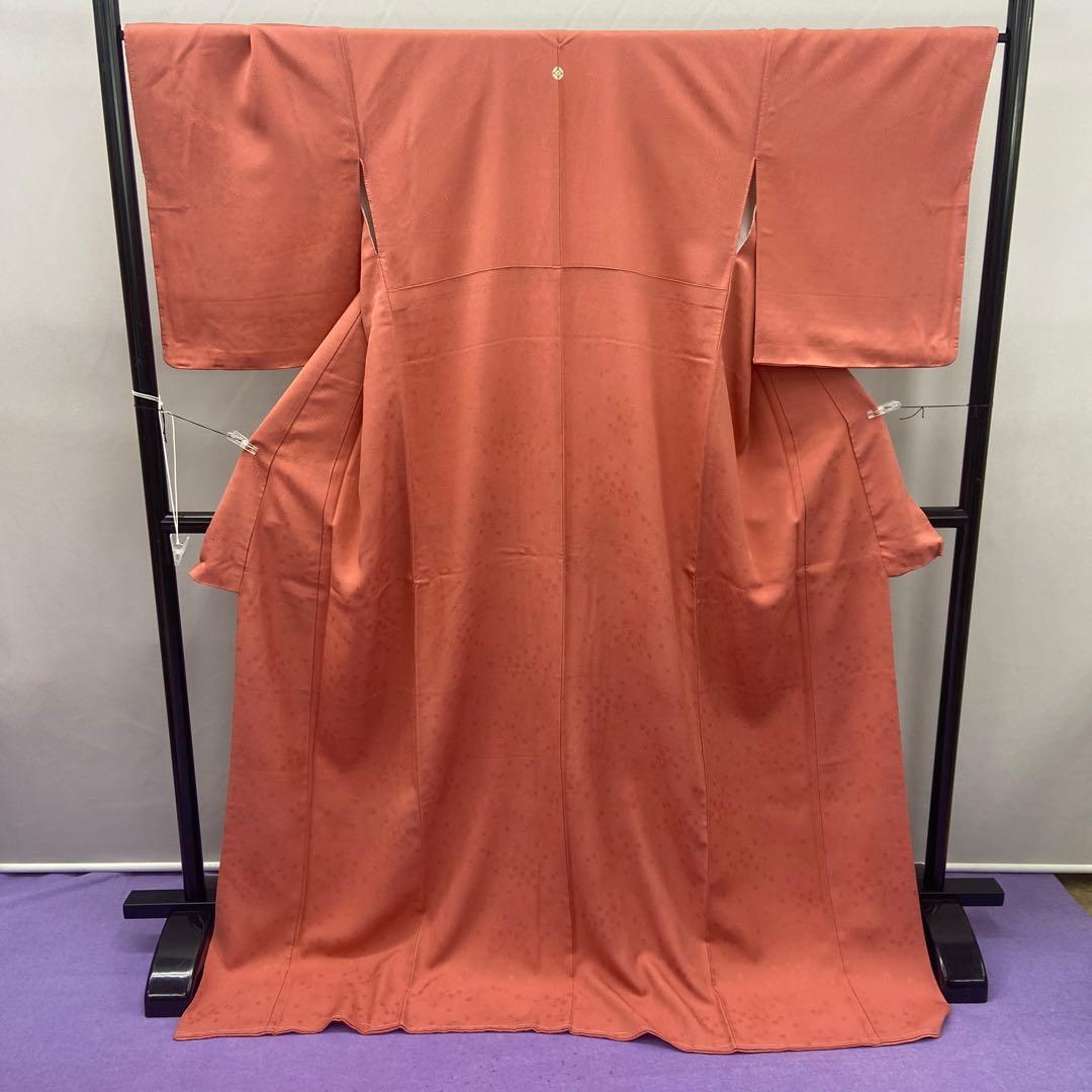 7018 身丈180 薄紅色 色無地 着物 正絹 夢路 茶道 卒業式 七宝に花菱