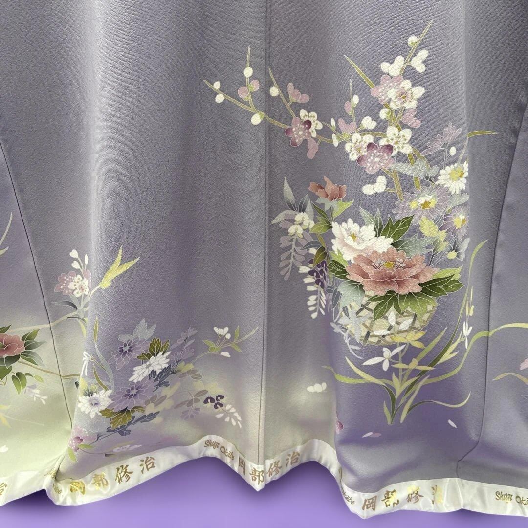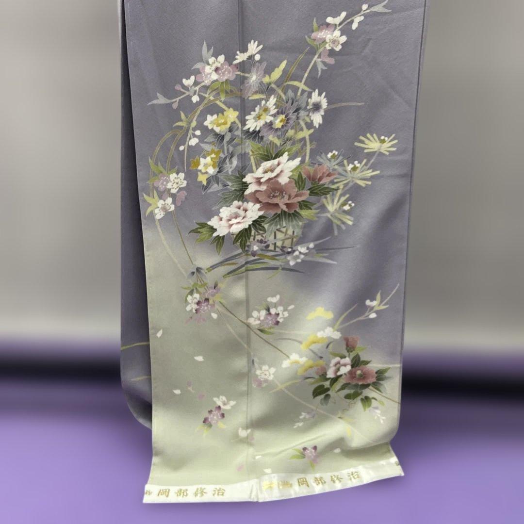 7210 未使用品 訪問着 着物 正絹 入学式 お茶会 灰 岡部修治