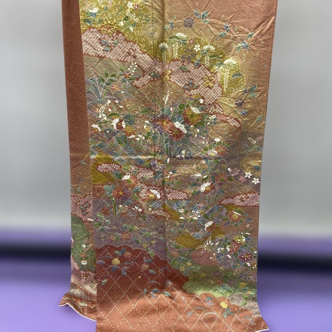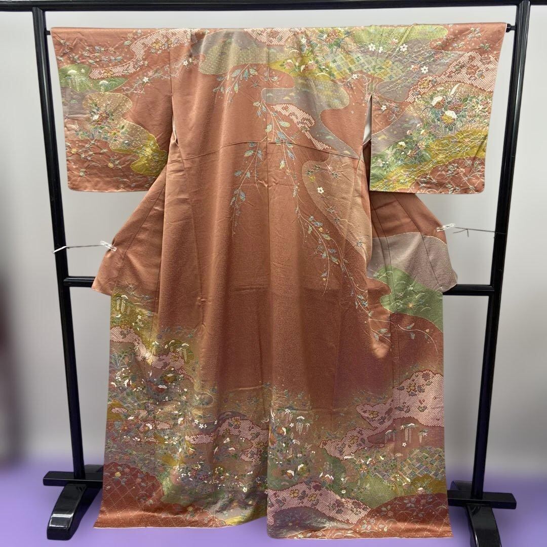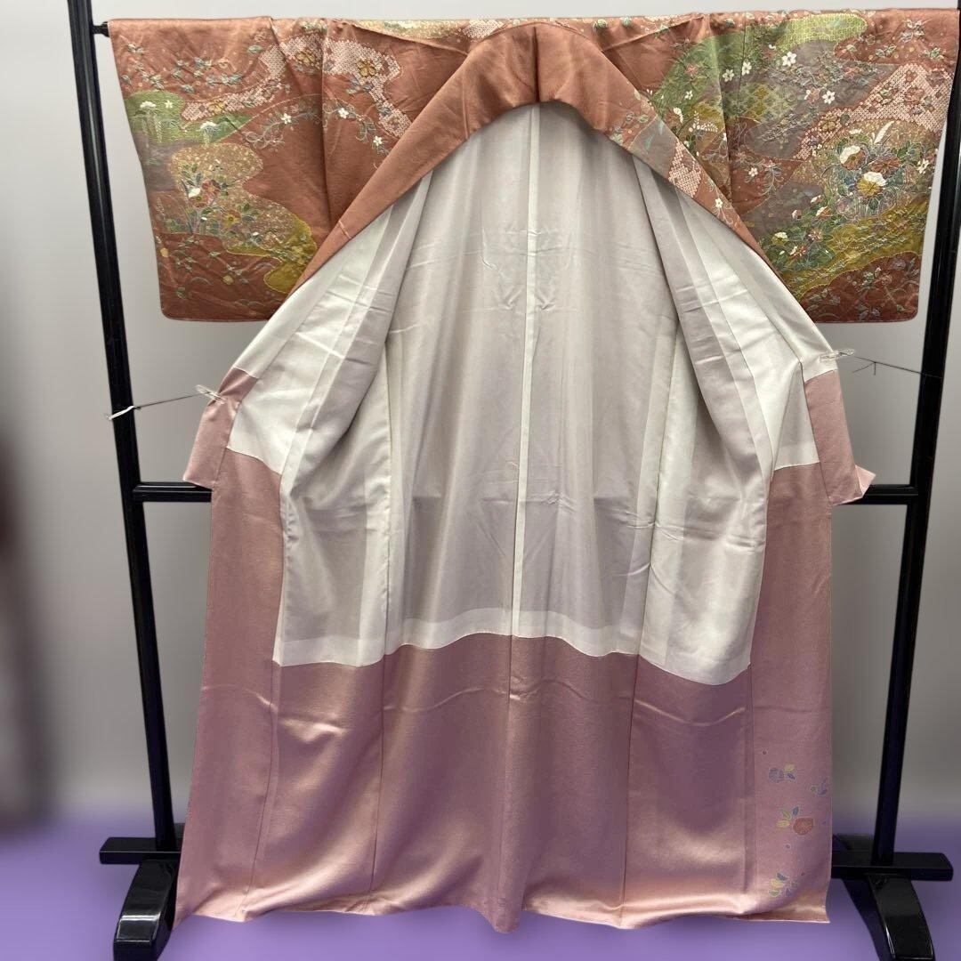 7211 未使用品 訪問着 着物 正絹 入学式 お茶 オールドローズ 豪華