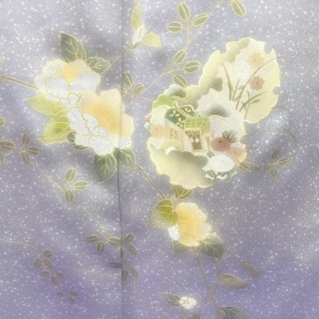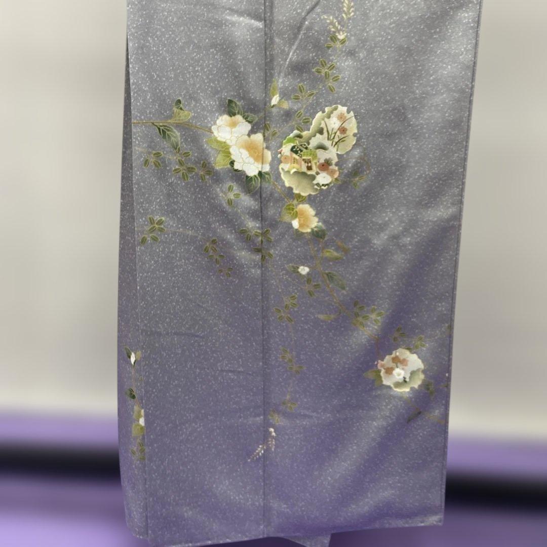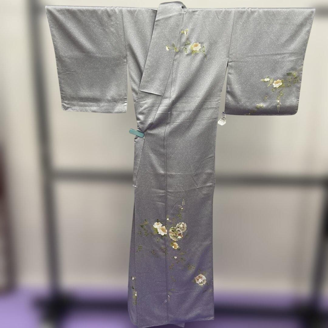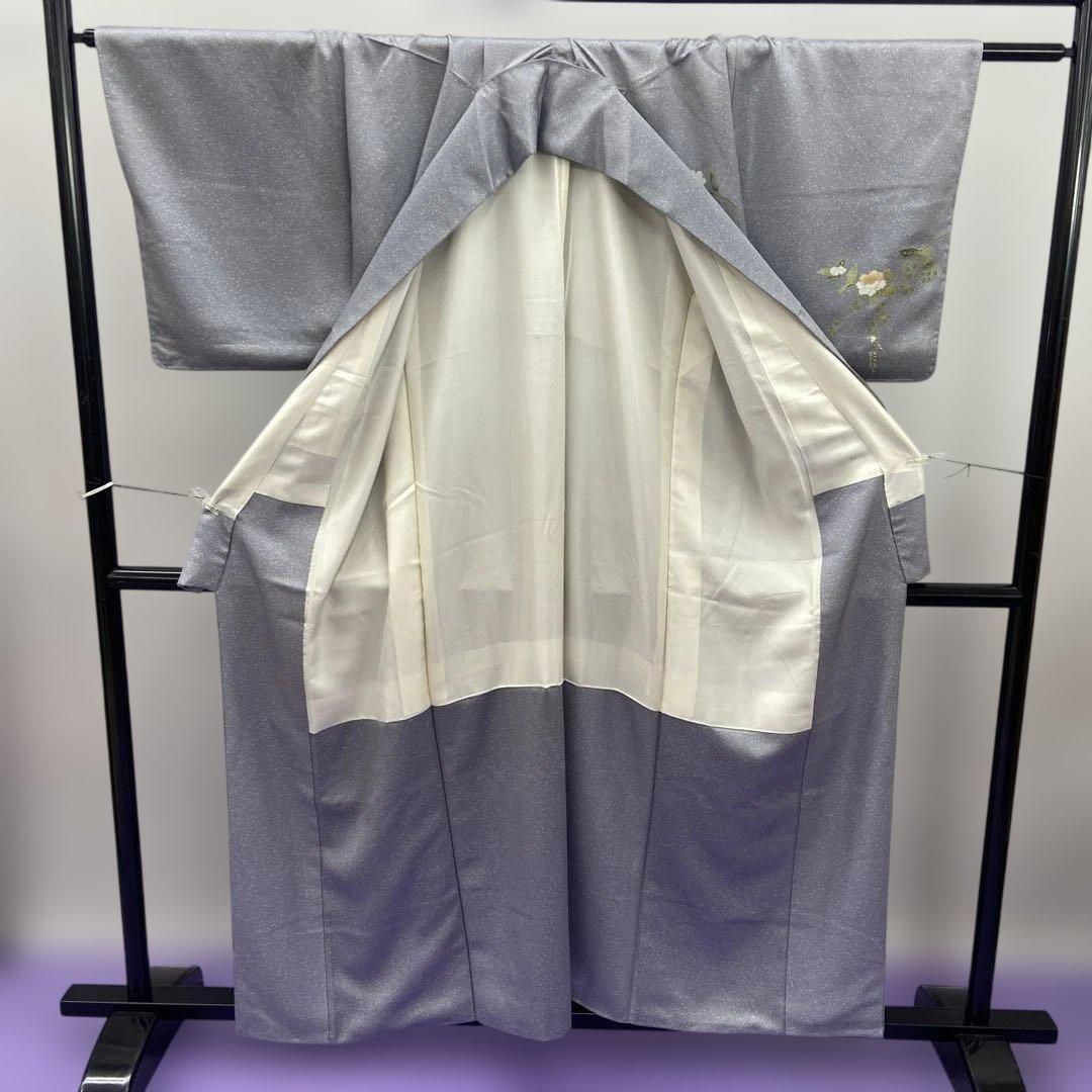 7213 灰 タタキ 訪問着 着物 正絹 入学式 お茶会 雪輪 御所車