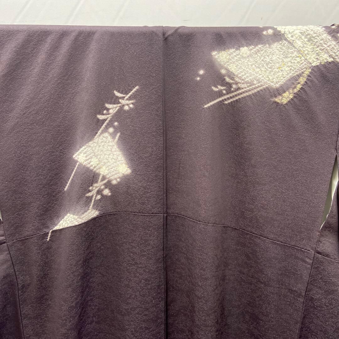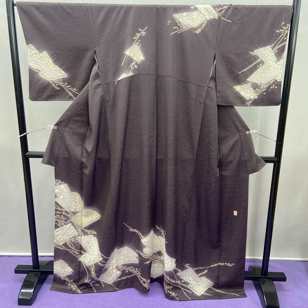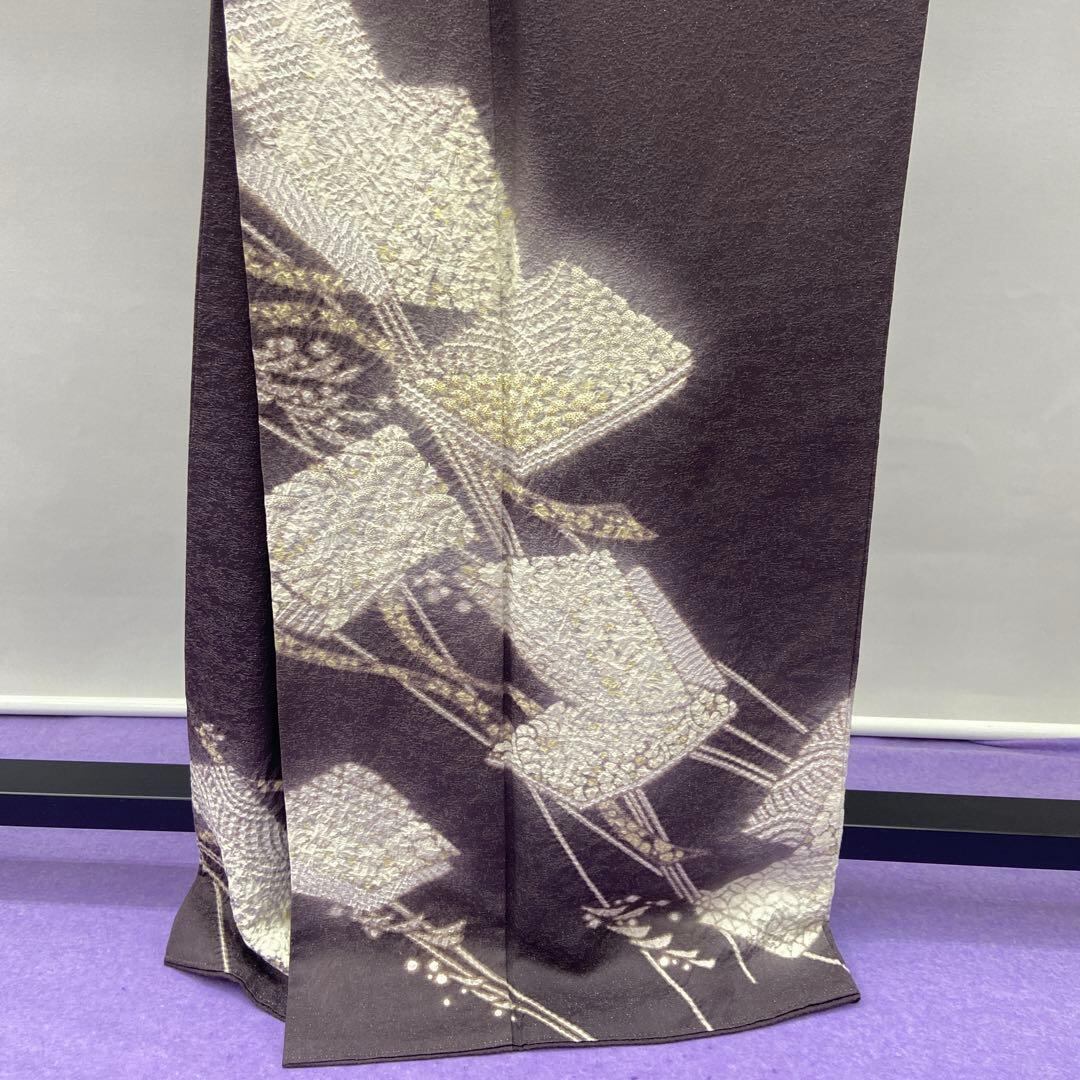 7215 絞り 紫鼠 訪問着 着物 正絹 お茶会 落款 ラメ