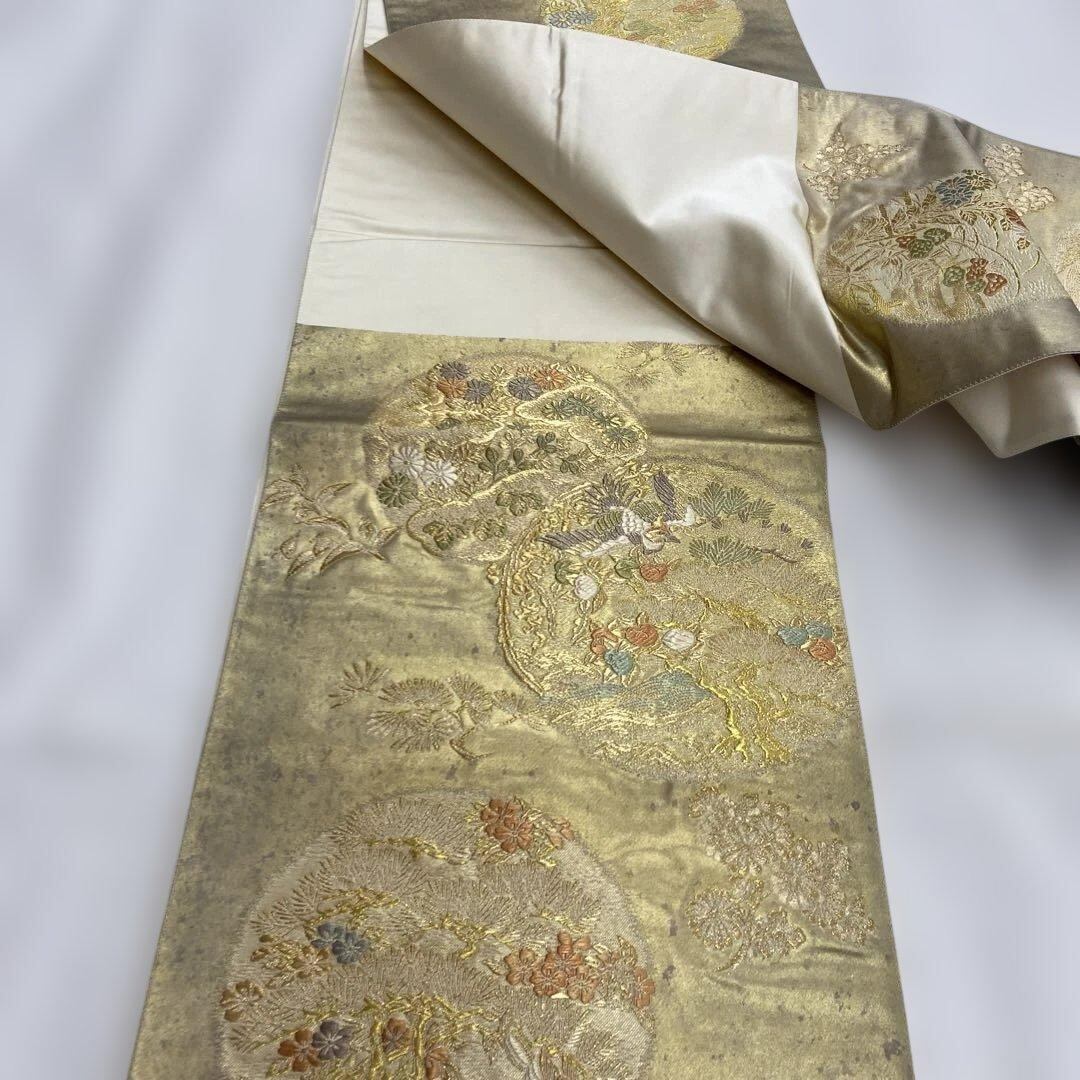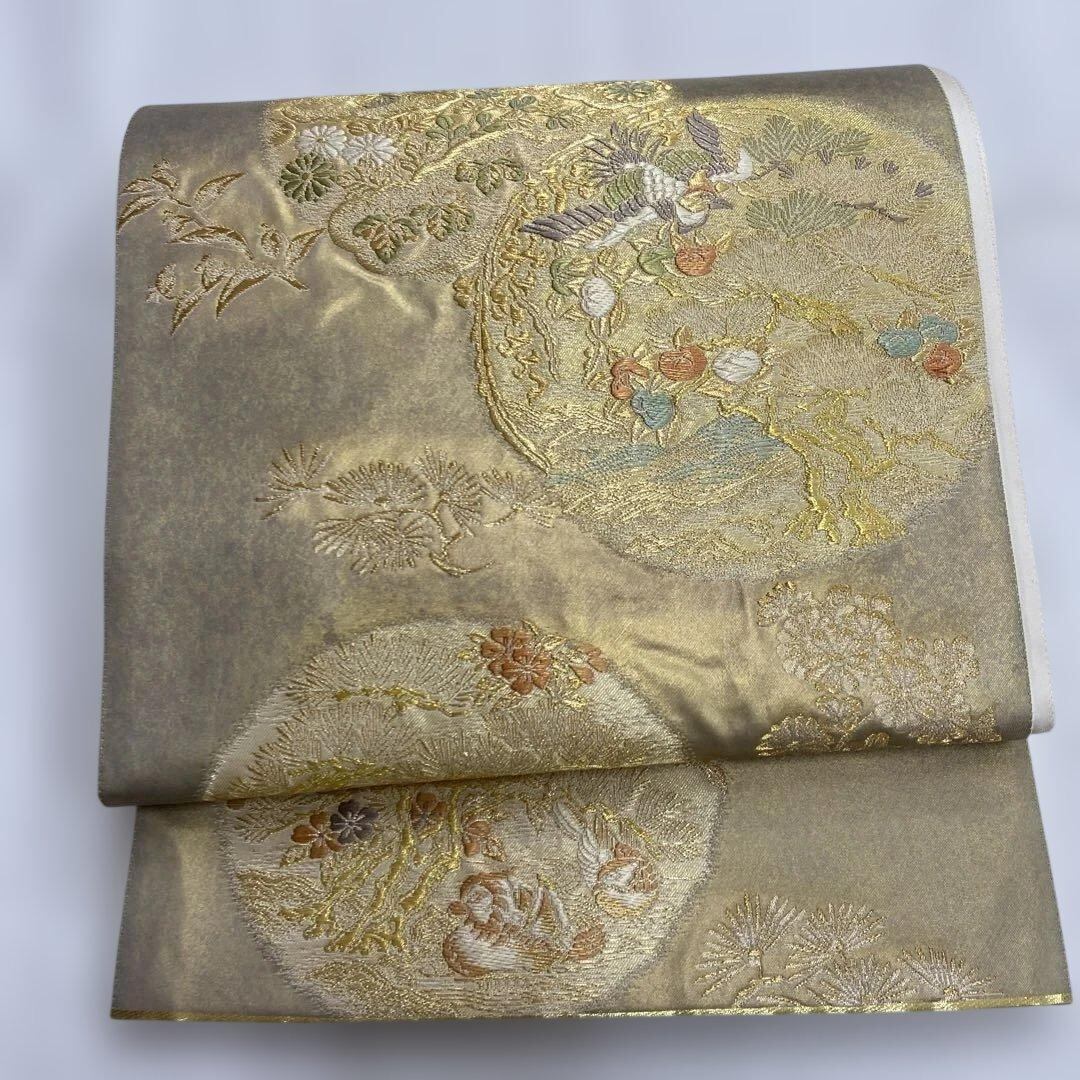 7342 袋帯 正絹 六通 訪問着 色無地 付下 入学式 金 松 橘 菊 桐