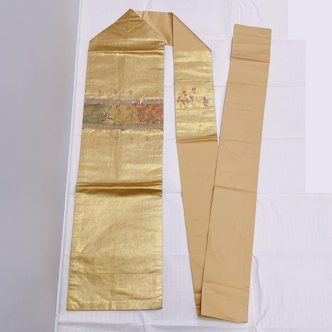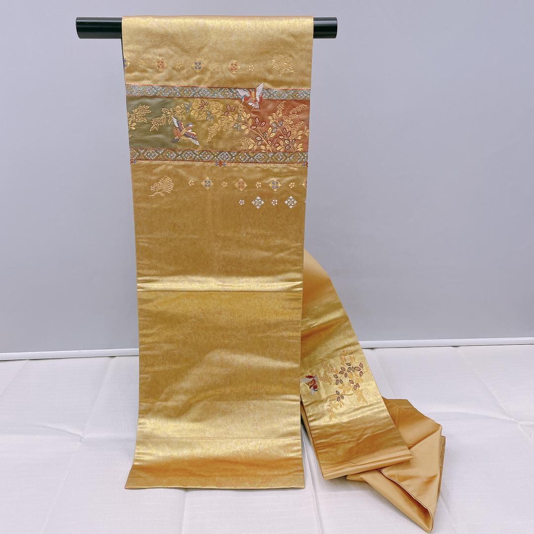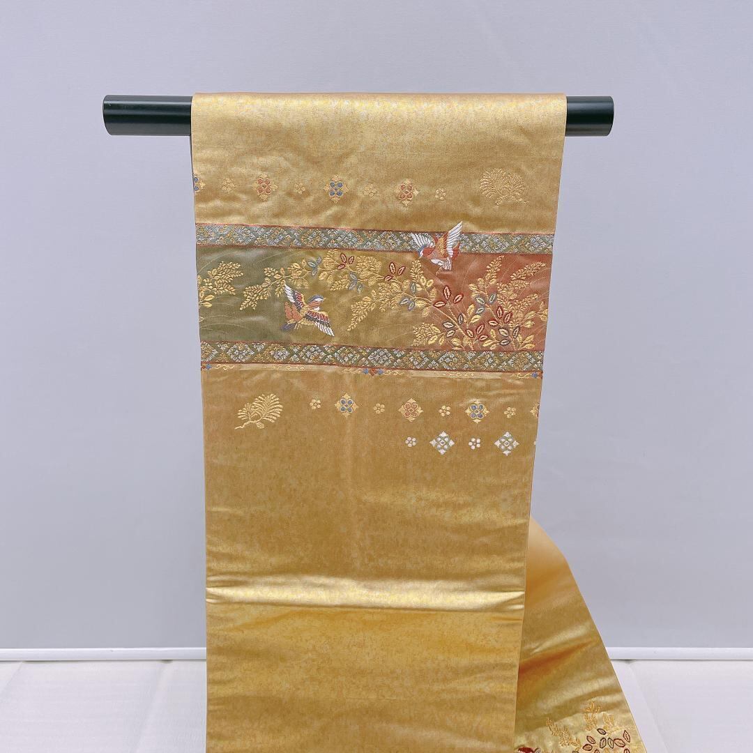 ★4118★ 名古屋帯 なごや帯 金色 古典柄 草花文様