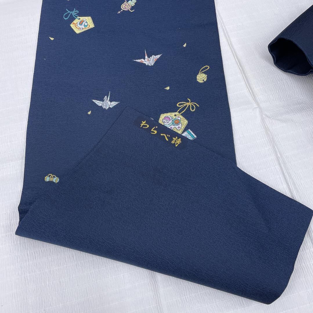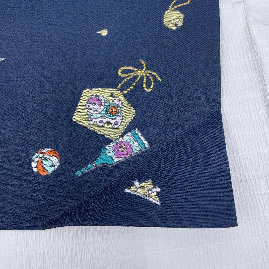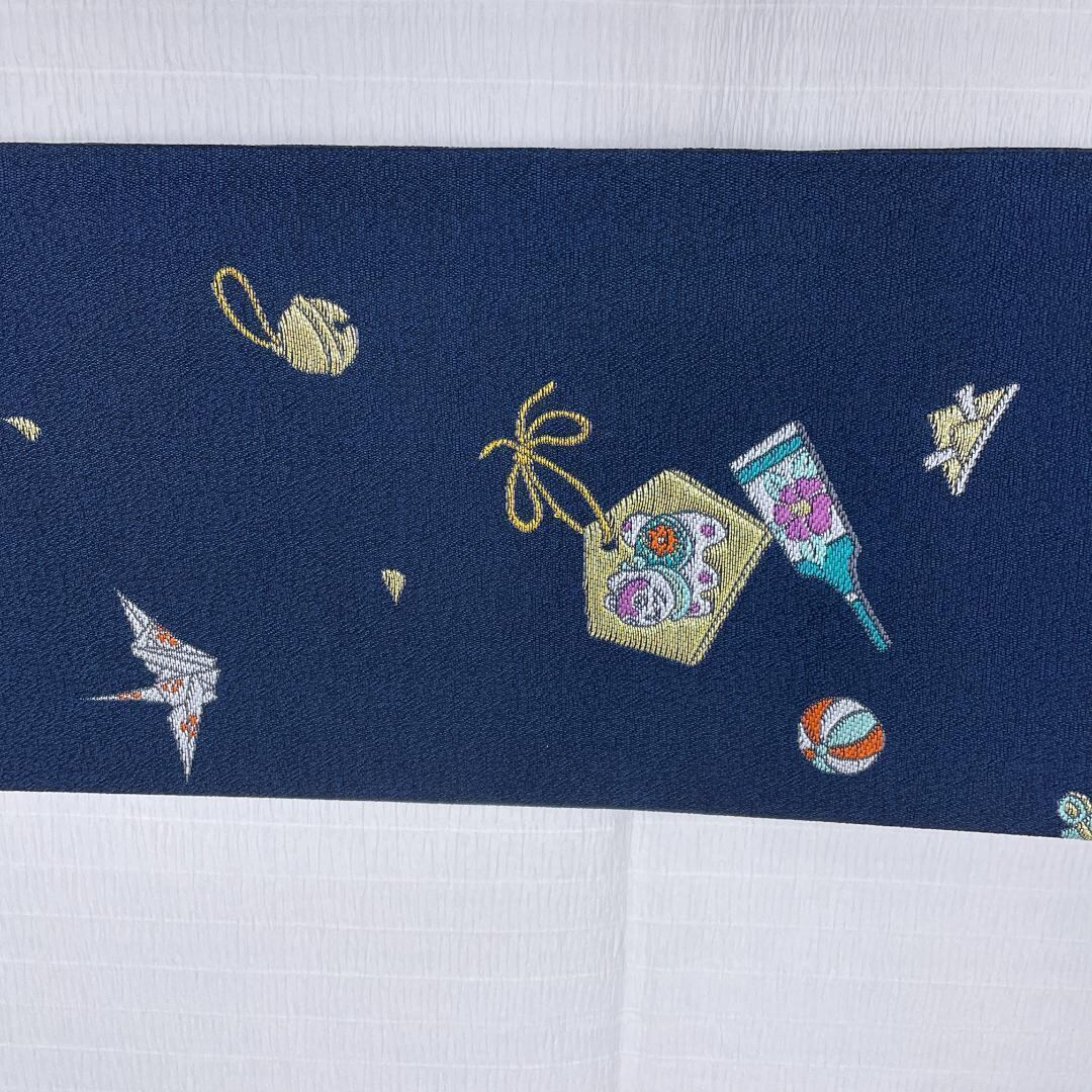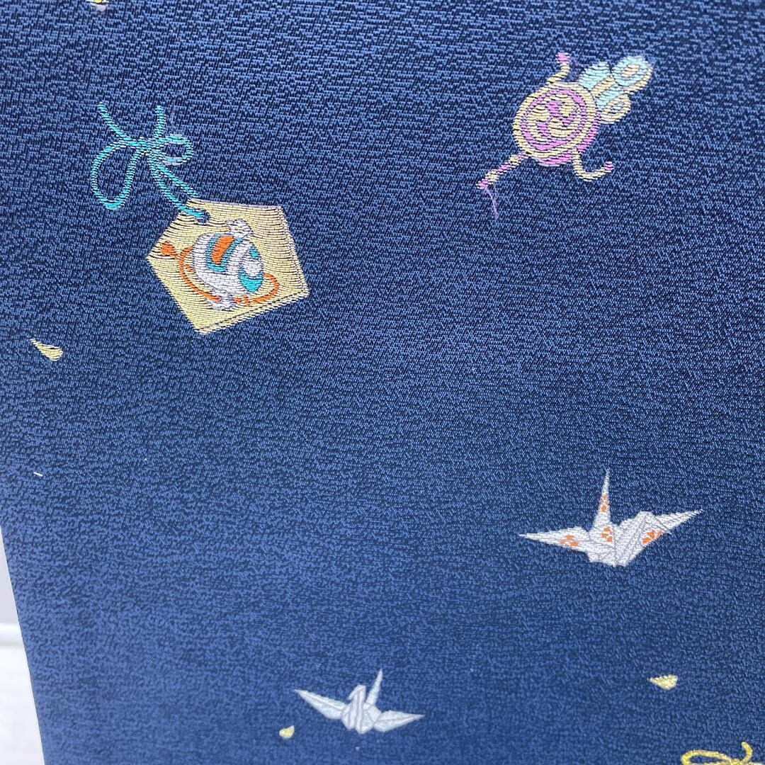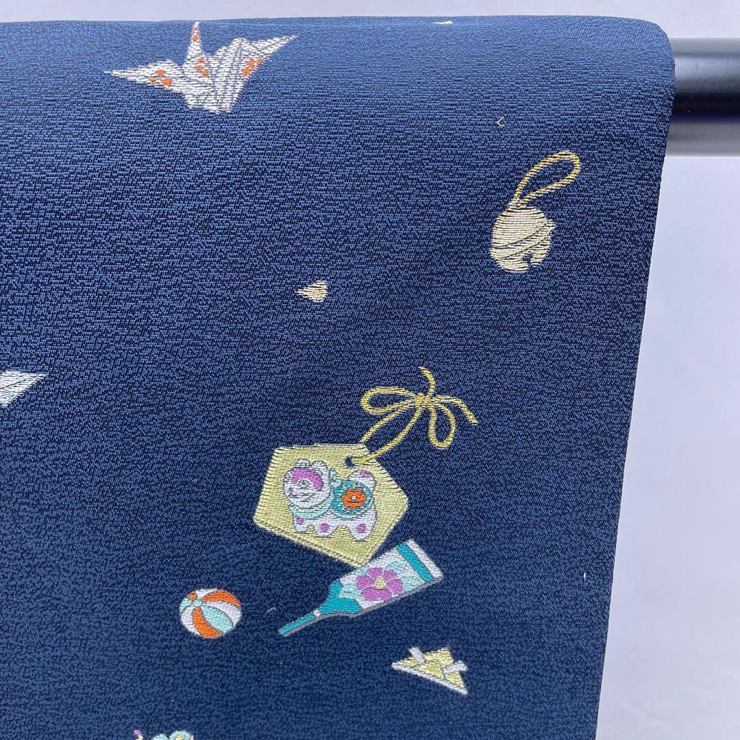 深みのある濃紺地に、お正月を思わせる愛らしい文様です。