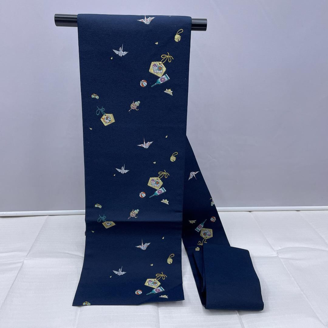 BY★4120★ 名古屋帯 なごや帯 濃紺 吉祥文様 わらべ詩 初釜にも