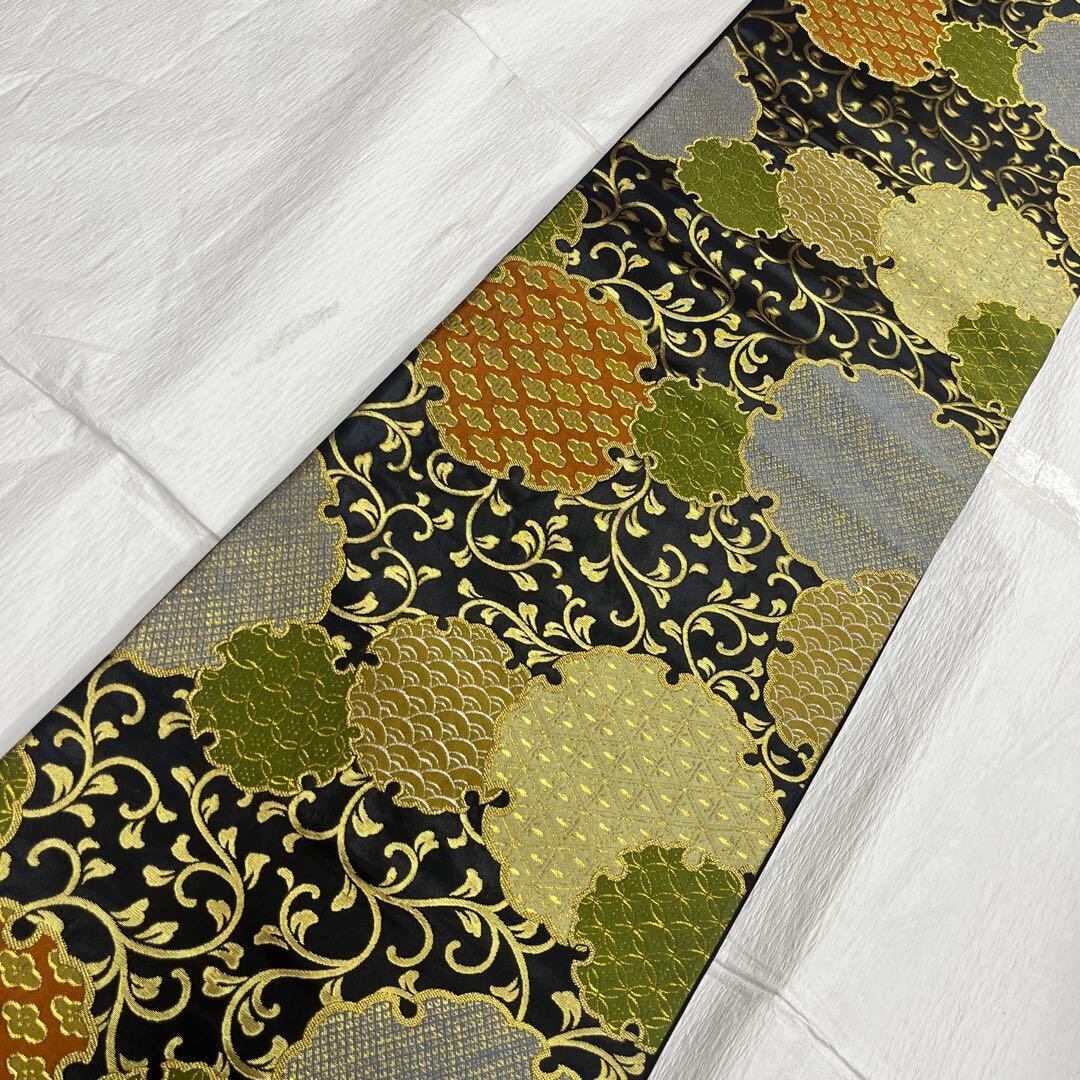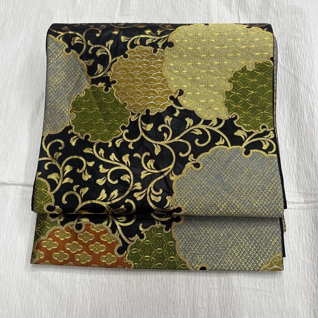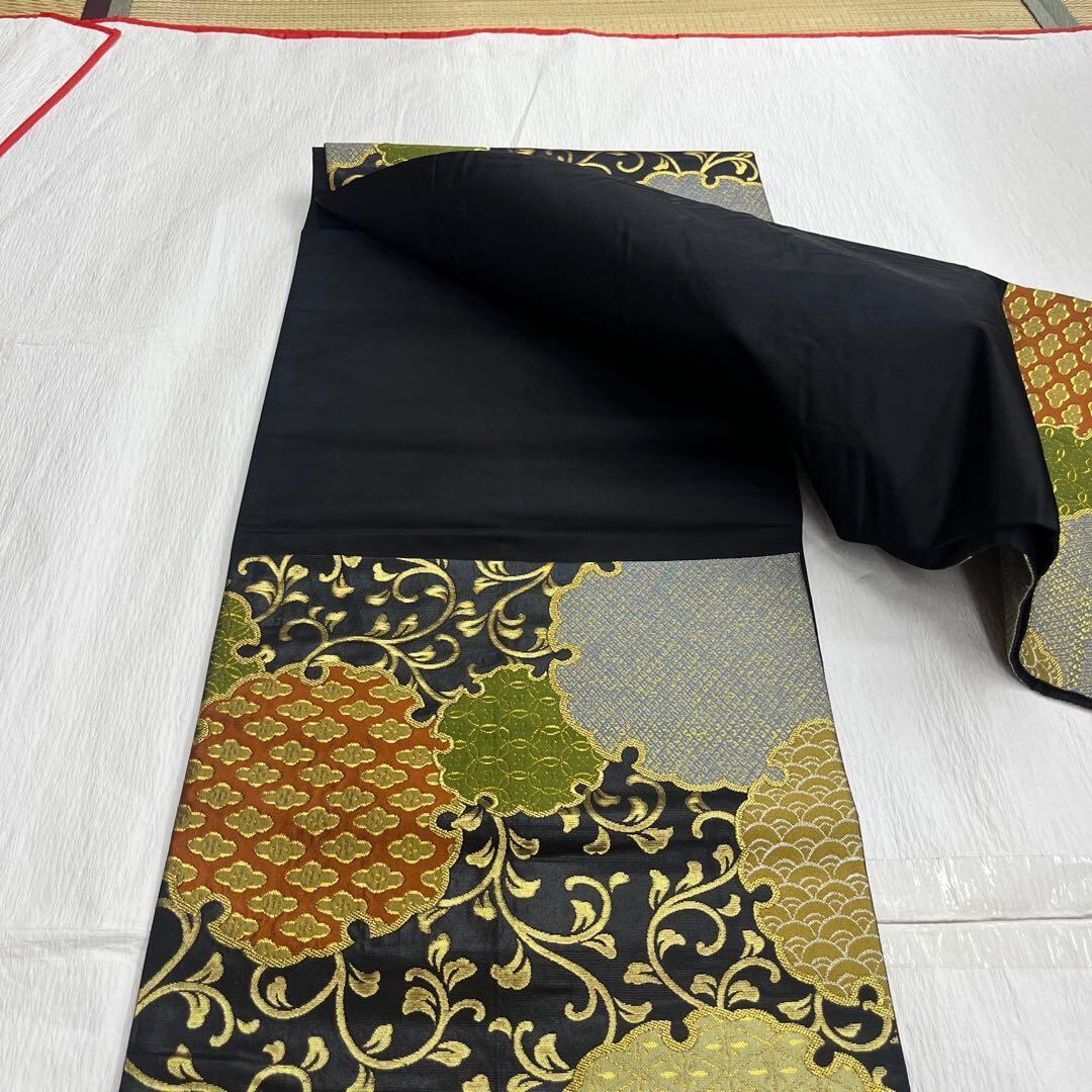 7381 雪輪 蔓草 袋帯 正絹 六通 訪問着 色無地 付下 黒 金