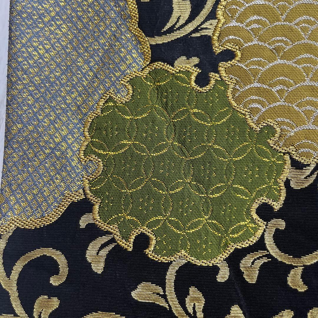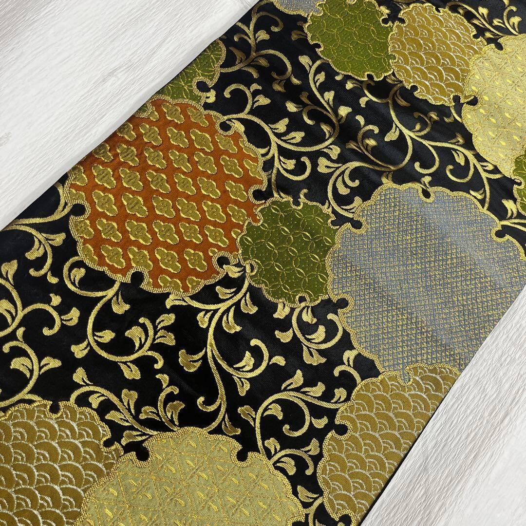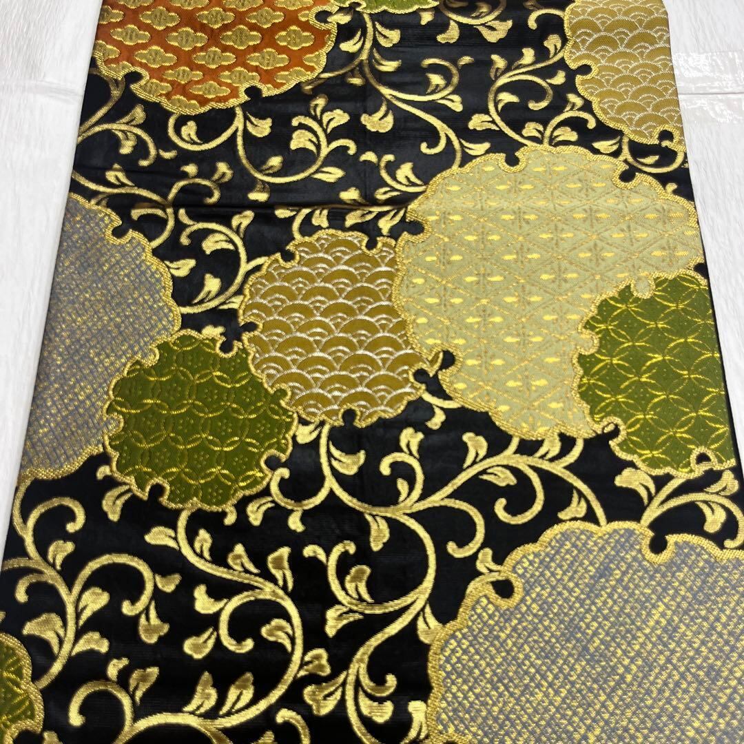 7381 雪輪 蔓草 袋帯 正絹 六通 訪問着 色無地 付下 黒 金