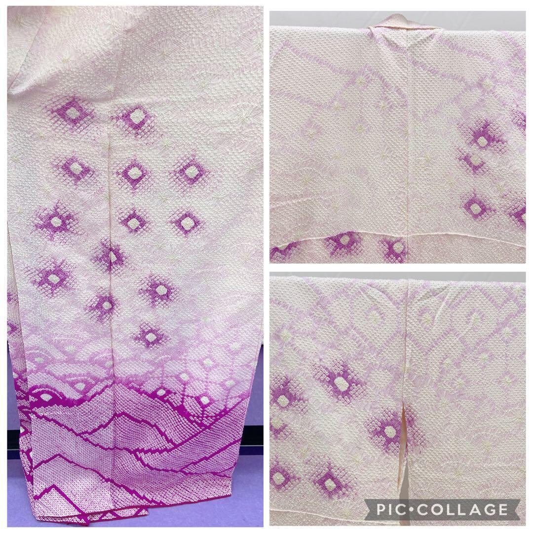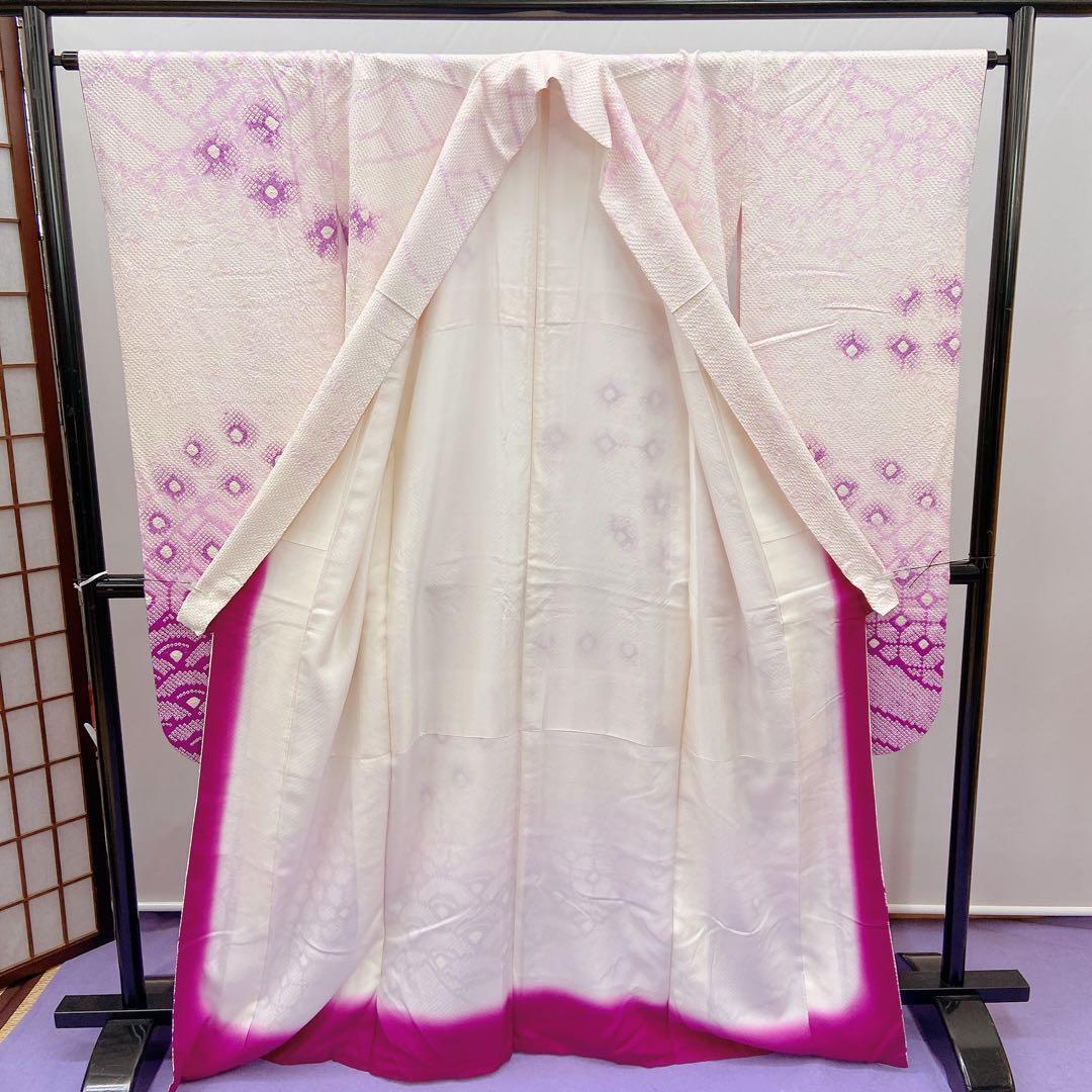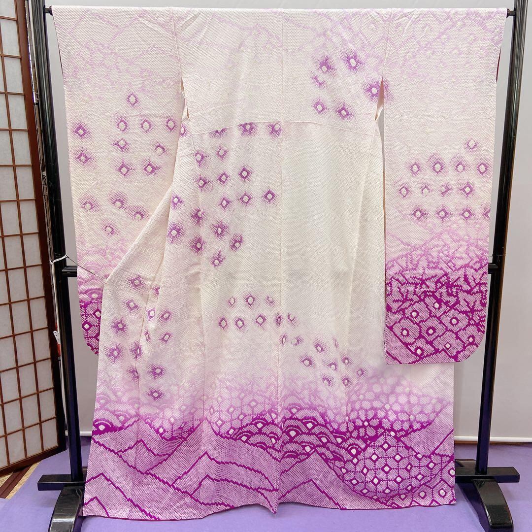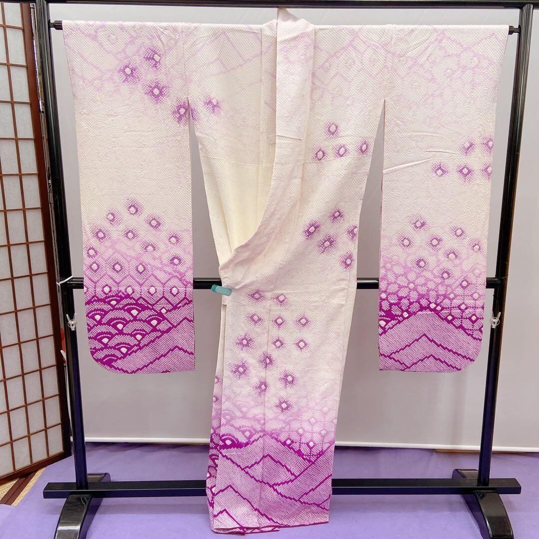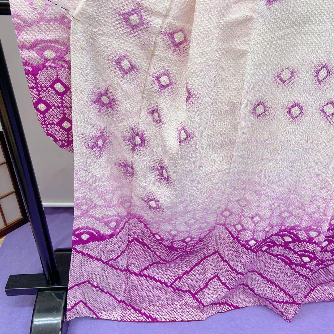 7343 振袖 単品 袷 絞り 総絞り 白色 紫色 成人式 卒業式
