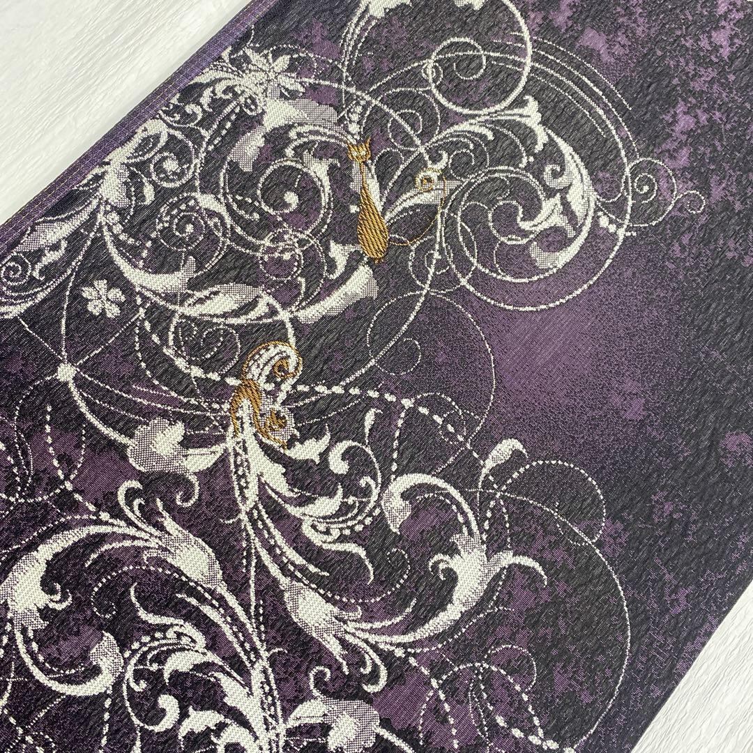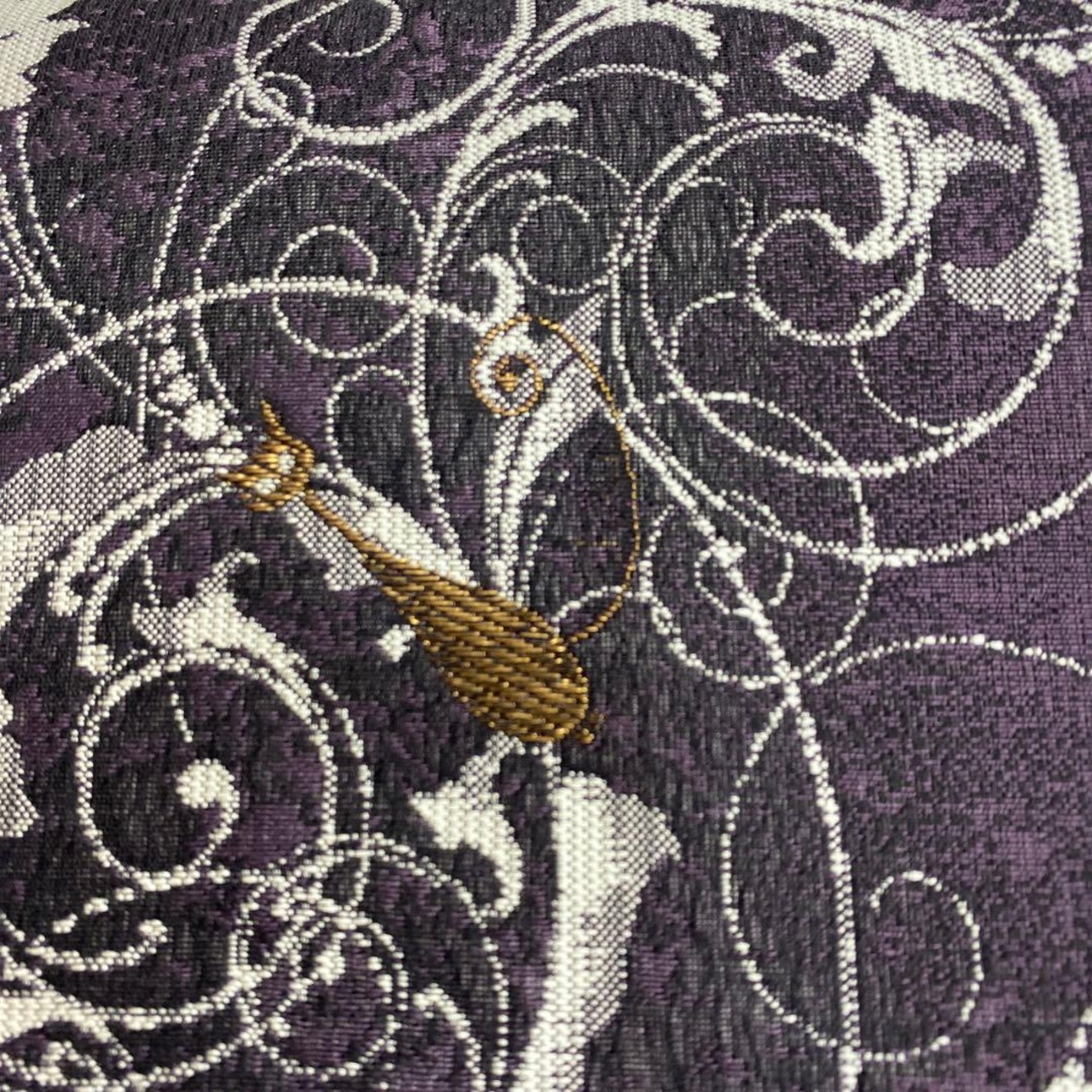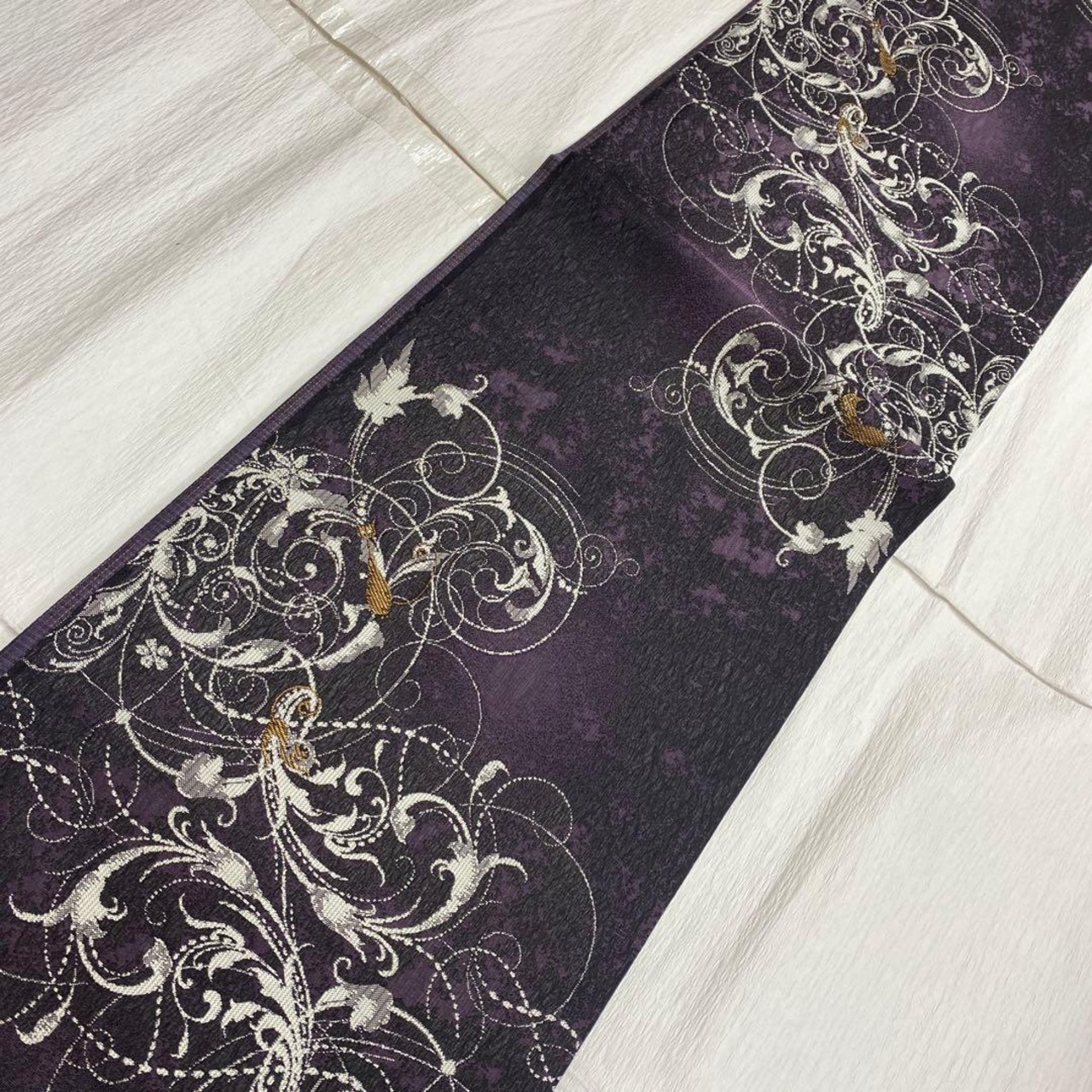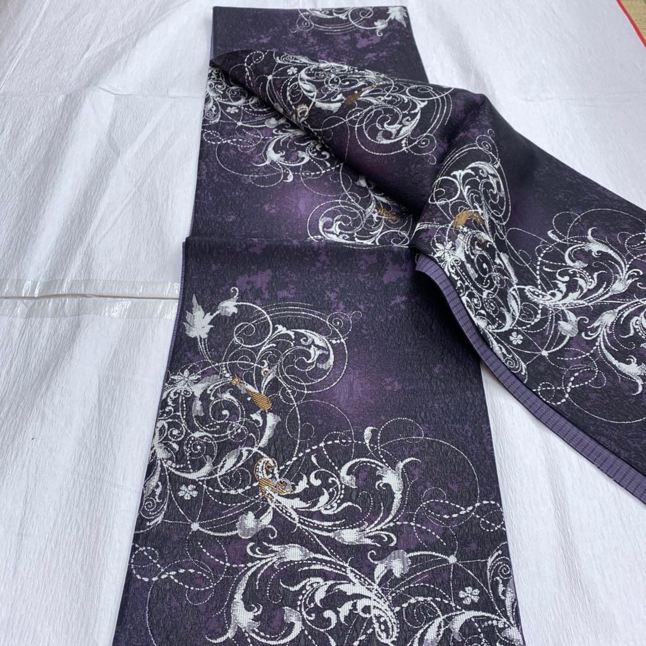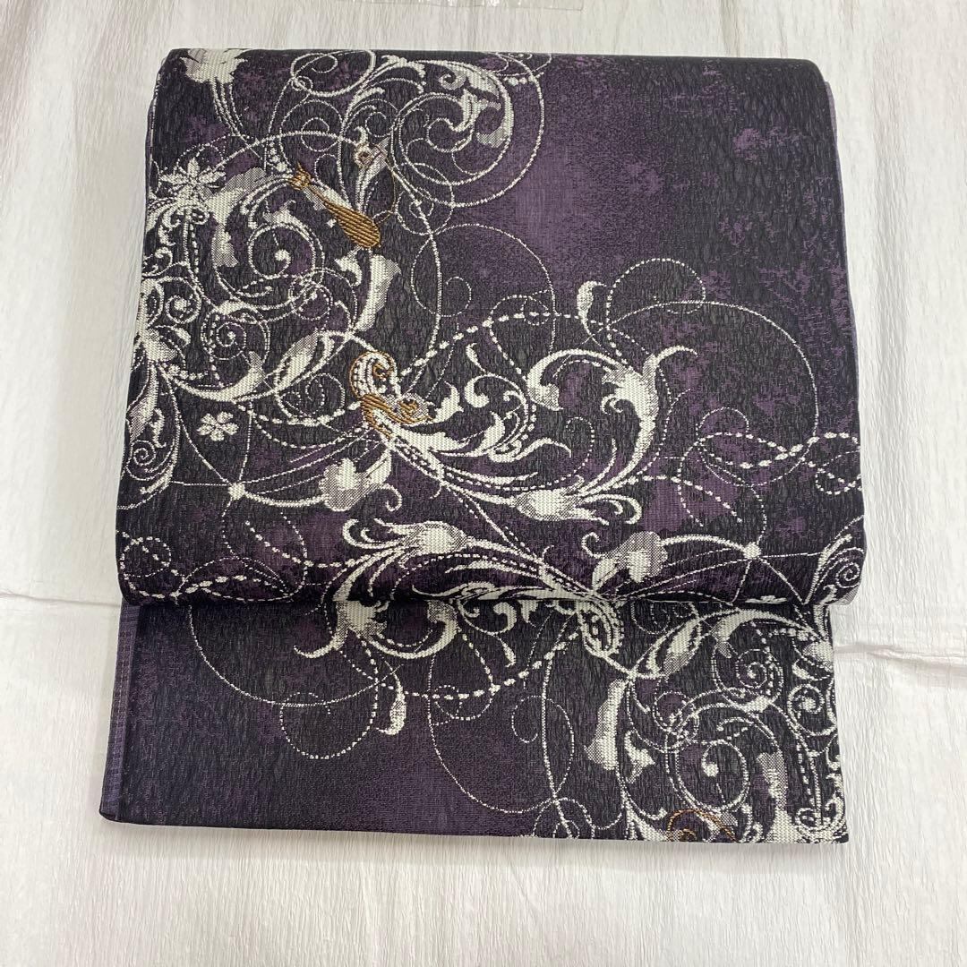 7395 全通 猫 袋帯 正絹 おしゃれ 紫