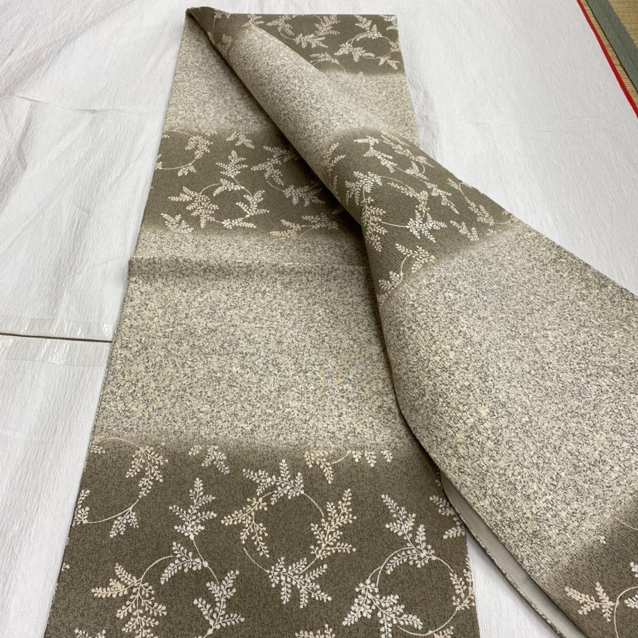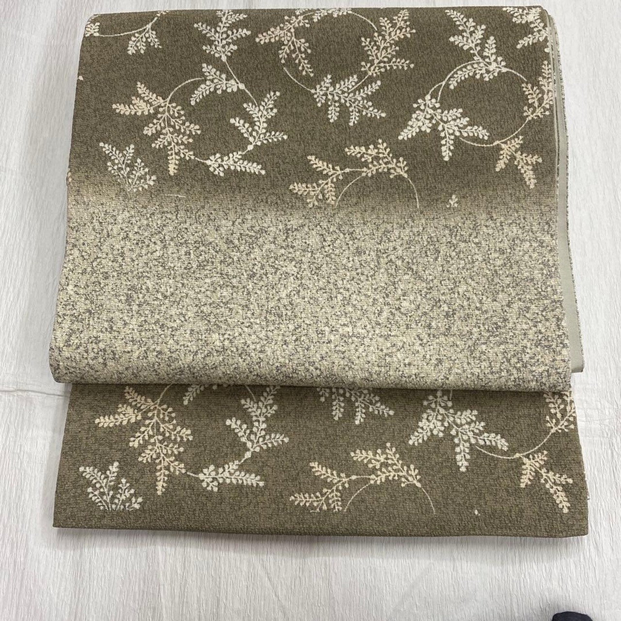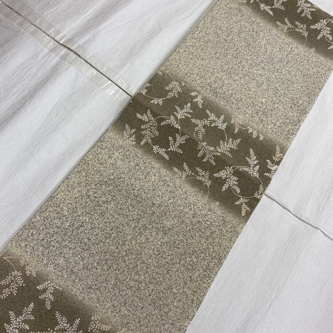 7397 全通 袋帯 正絹 おしゃれ ベージュ 叩き染め