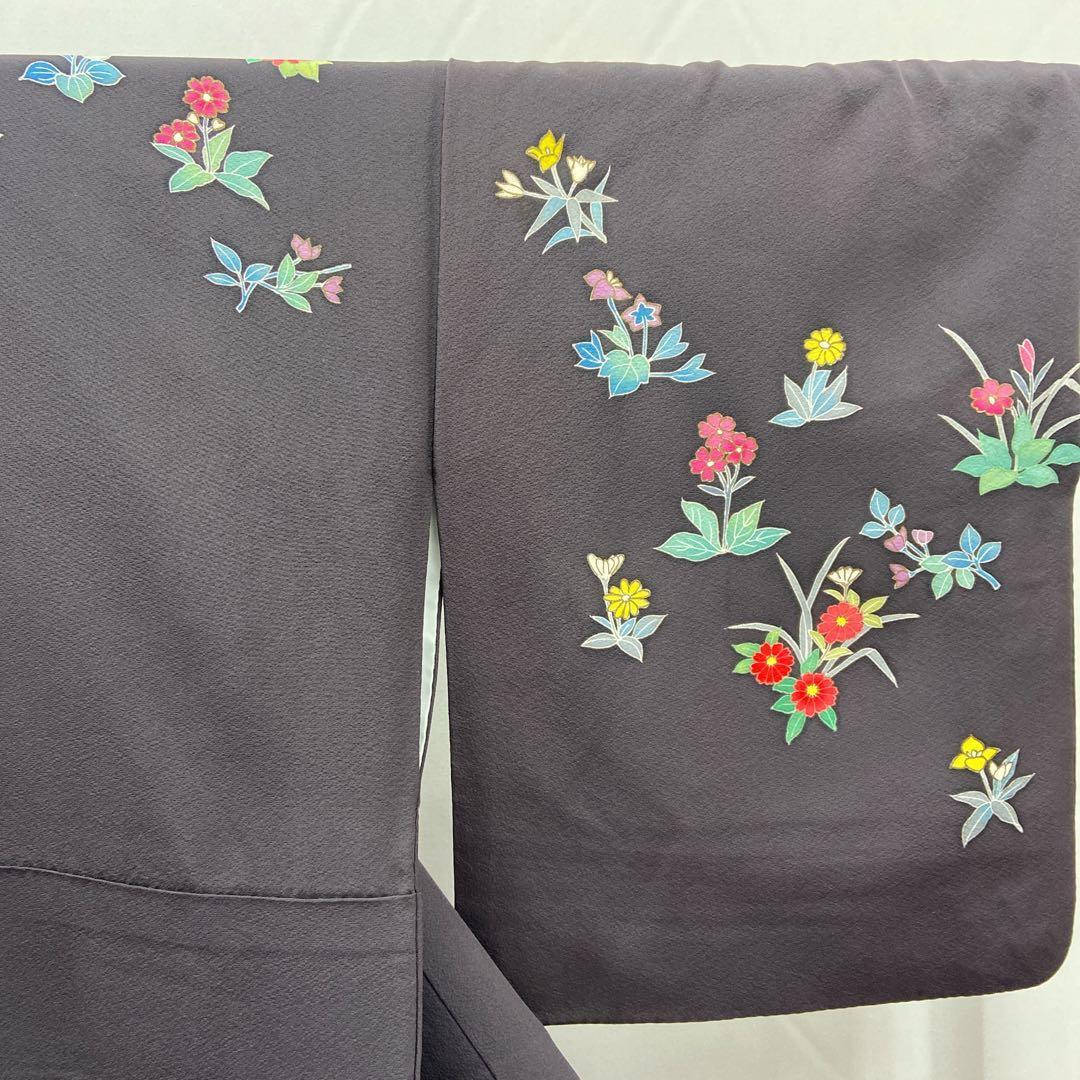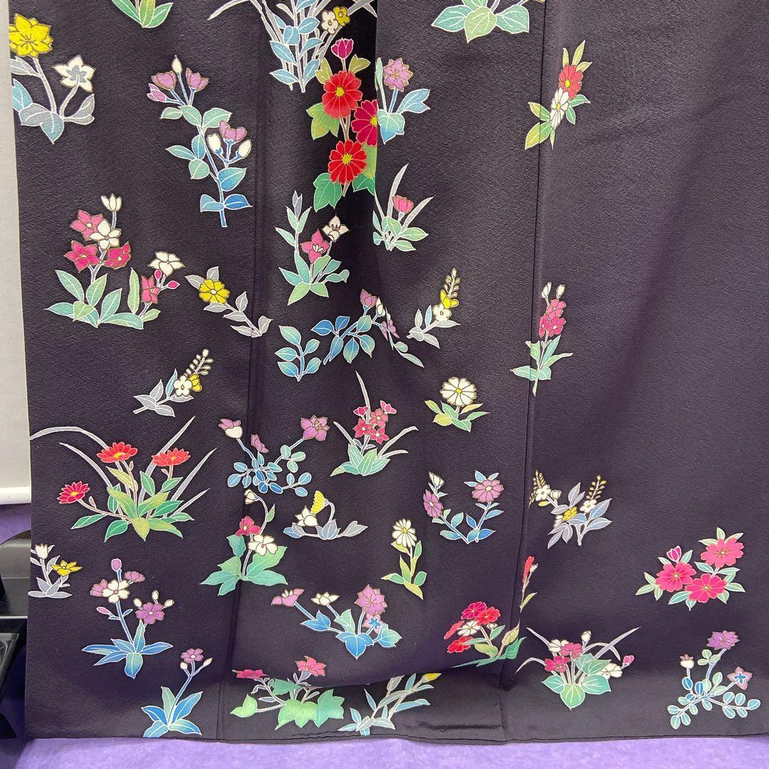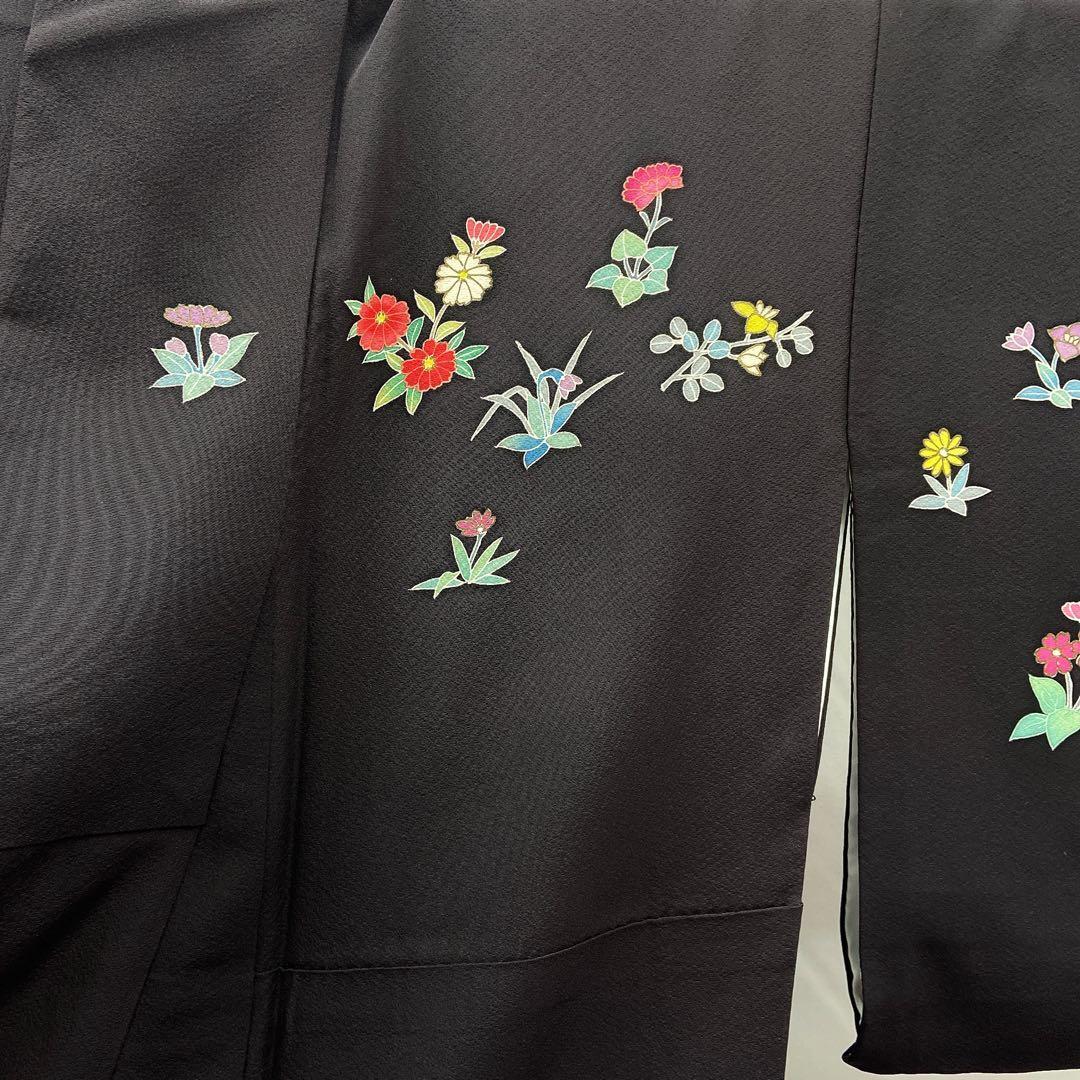 7412 付下げ 草花柄 墨色 ブラック かわいい パーティ