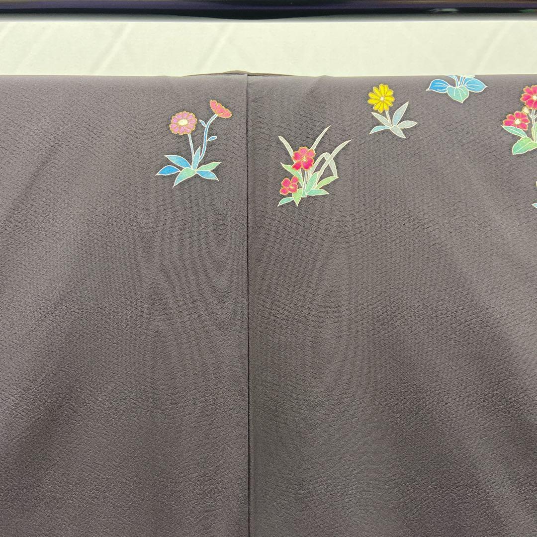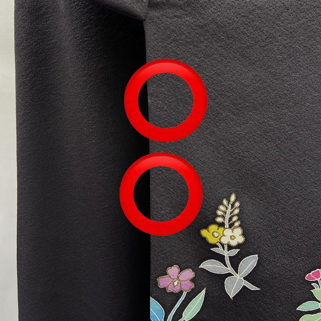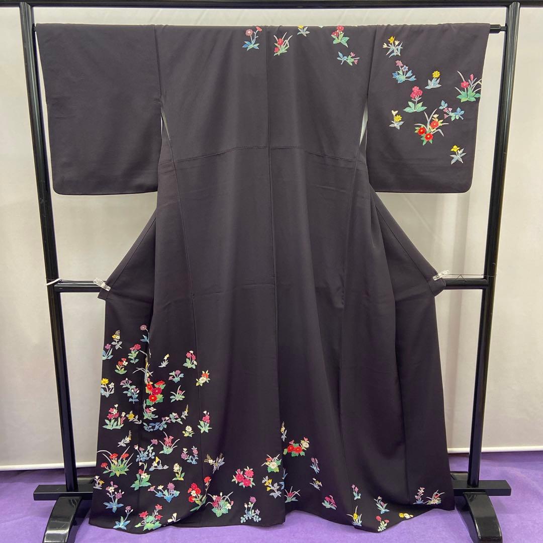 7412 付下げ 草花柄 墨色 ブラック かわいい パーティ