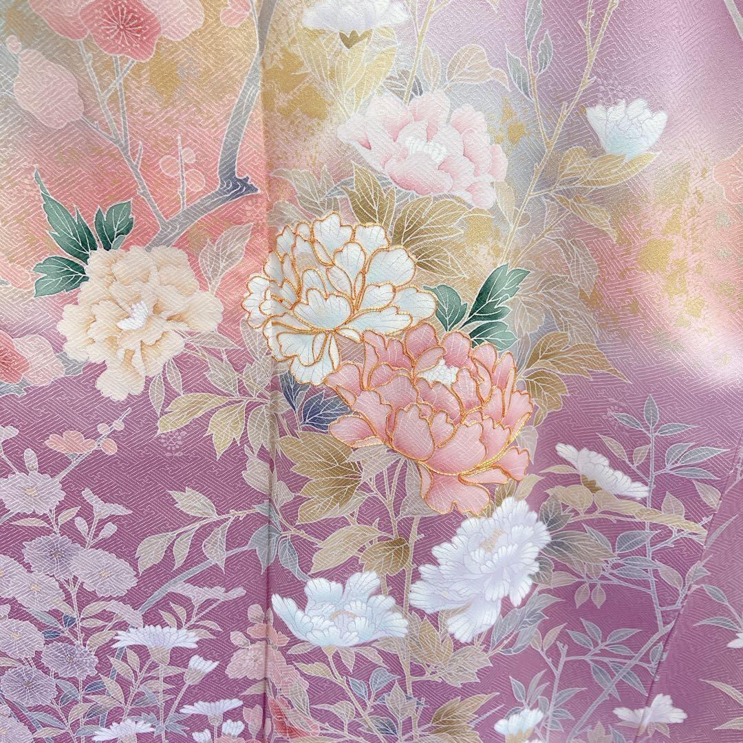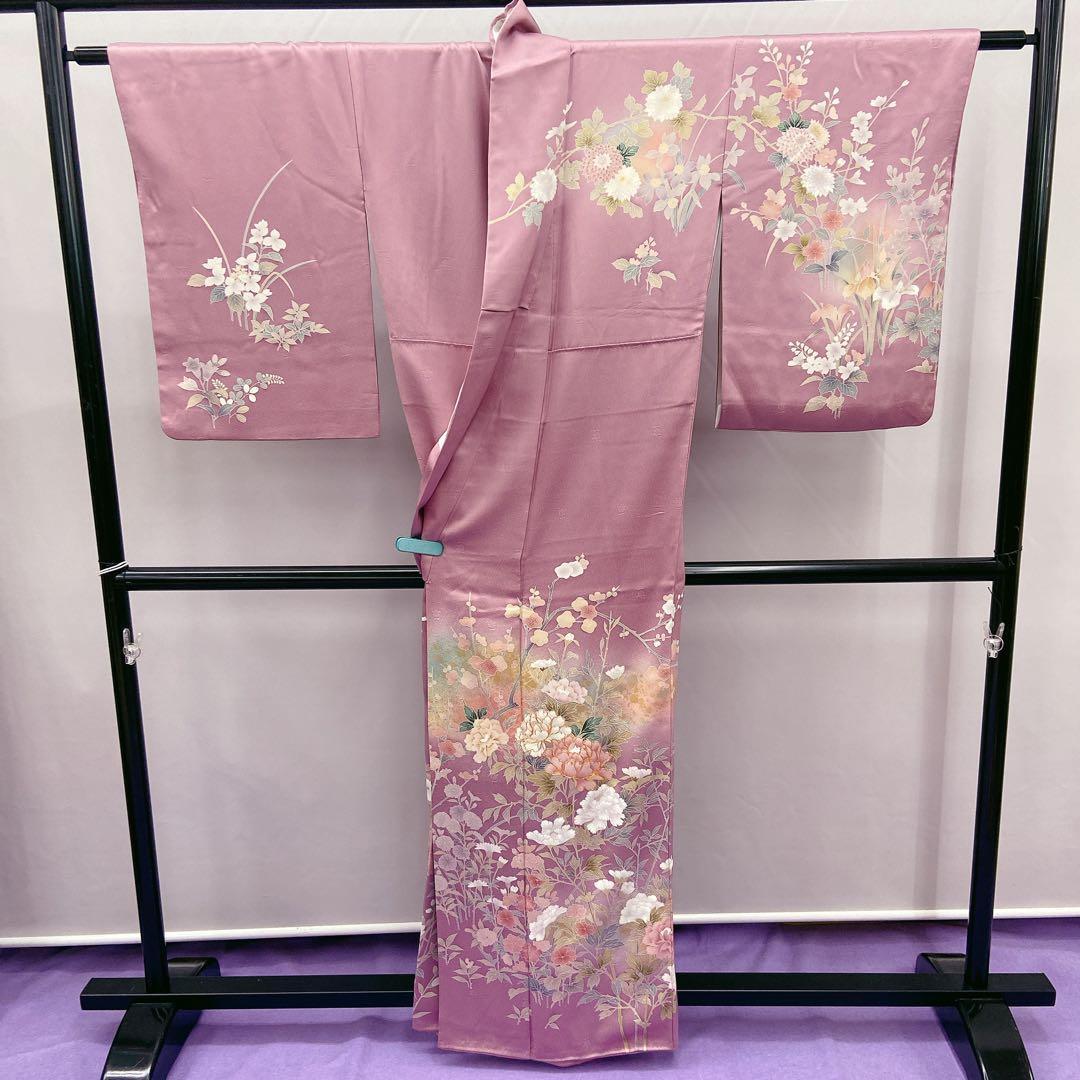7413 訪問着 四季柄 牡丹 菊 菖蒲 桔梗 入学式 ラベンダー 薄紫