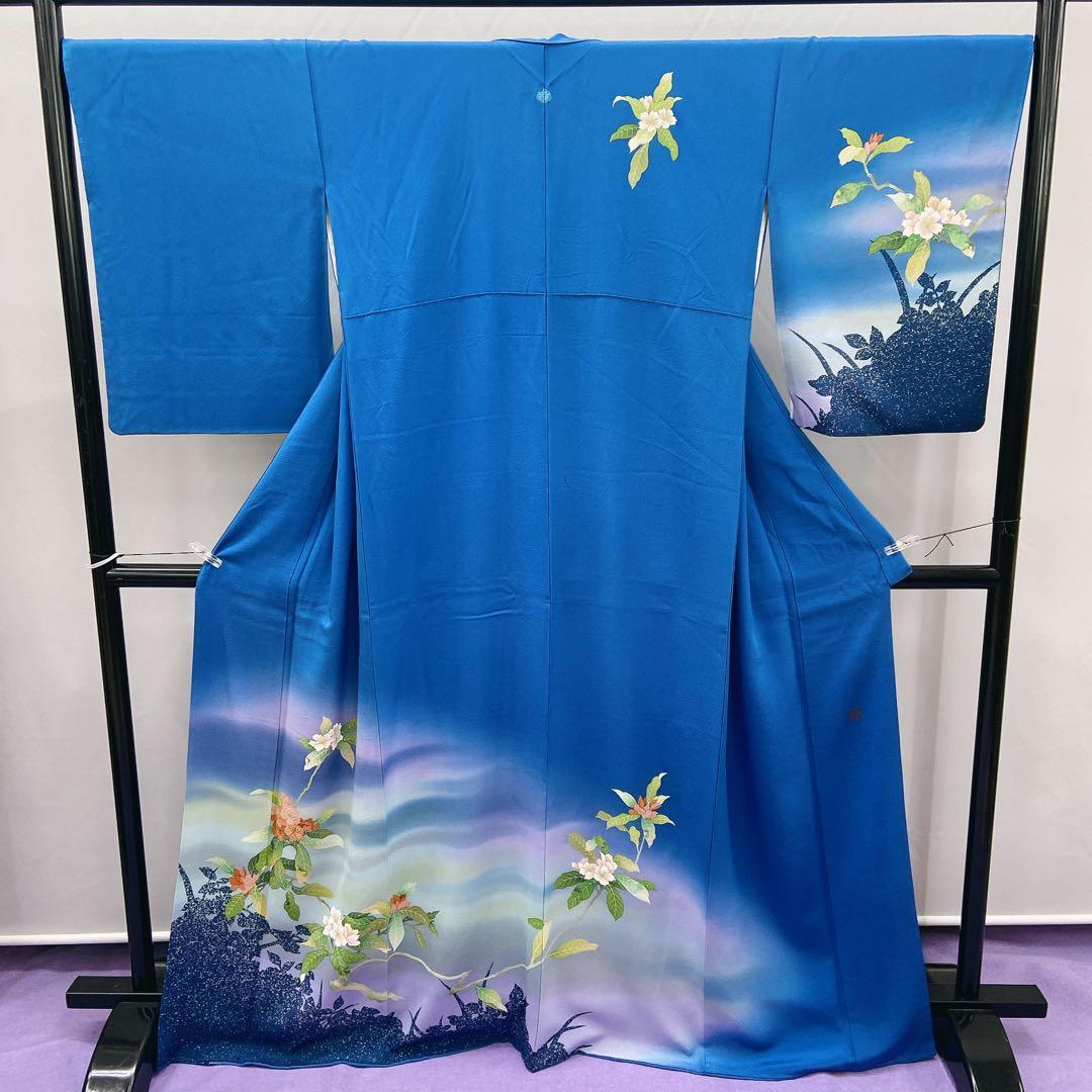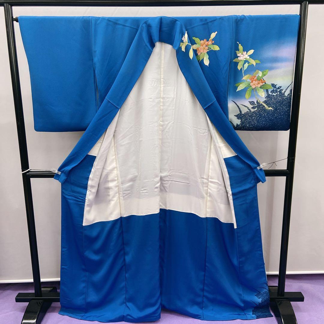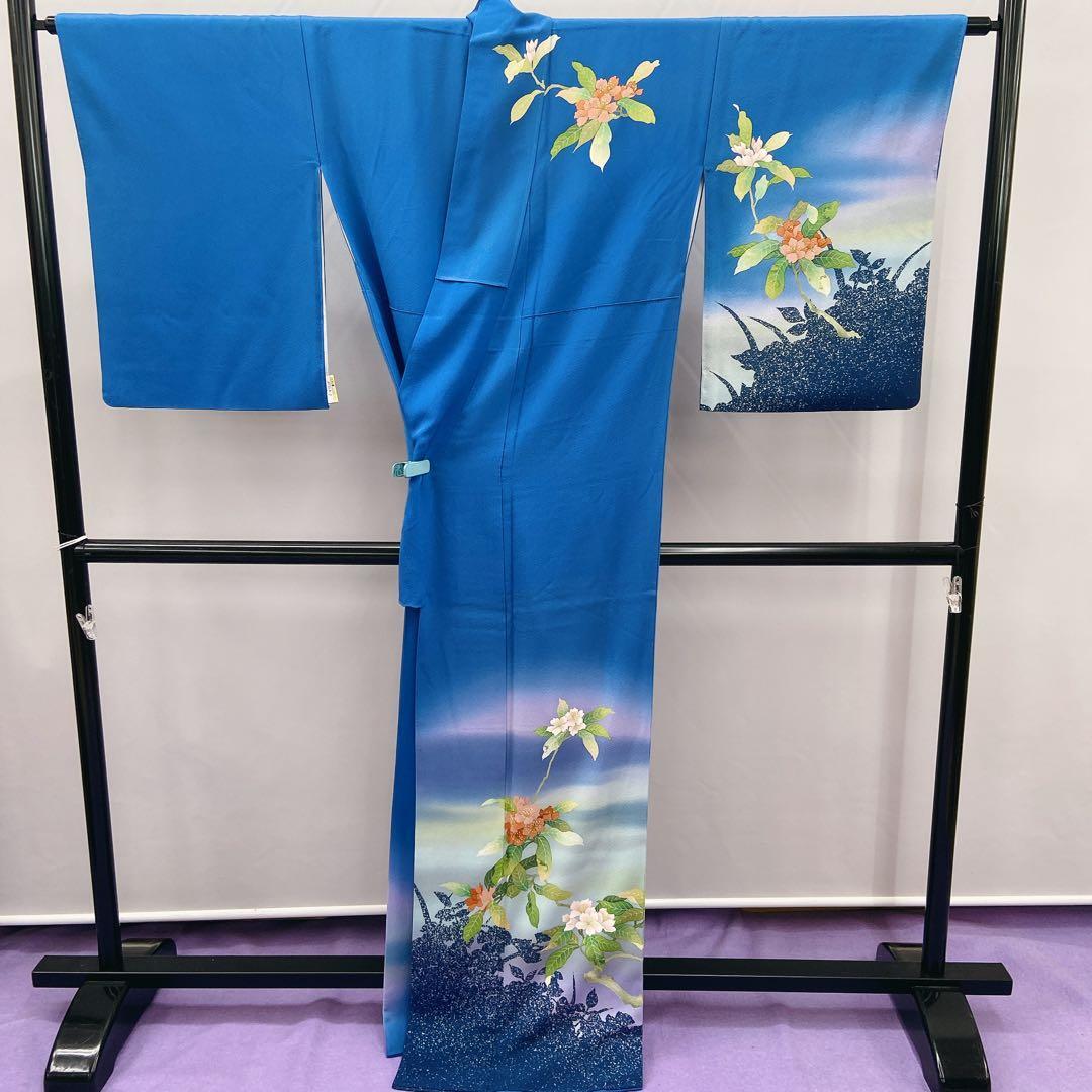 7411 訪問着 おかべみつこ 作家物 ブルー 花柄