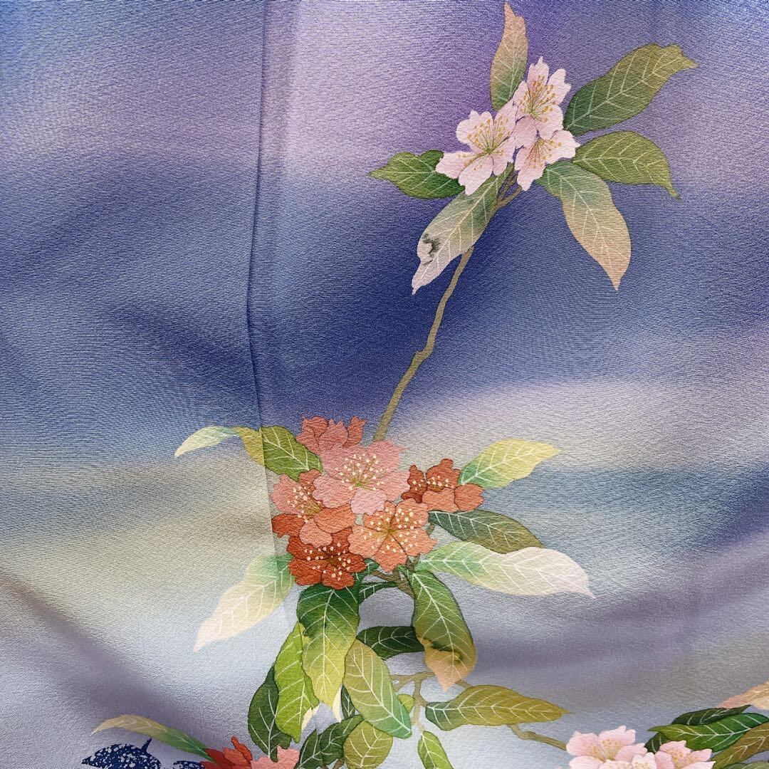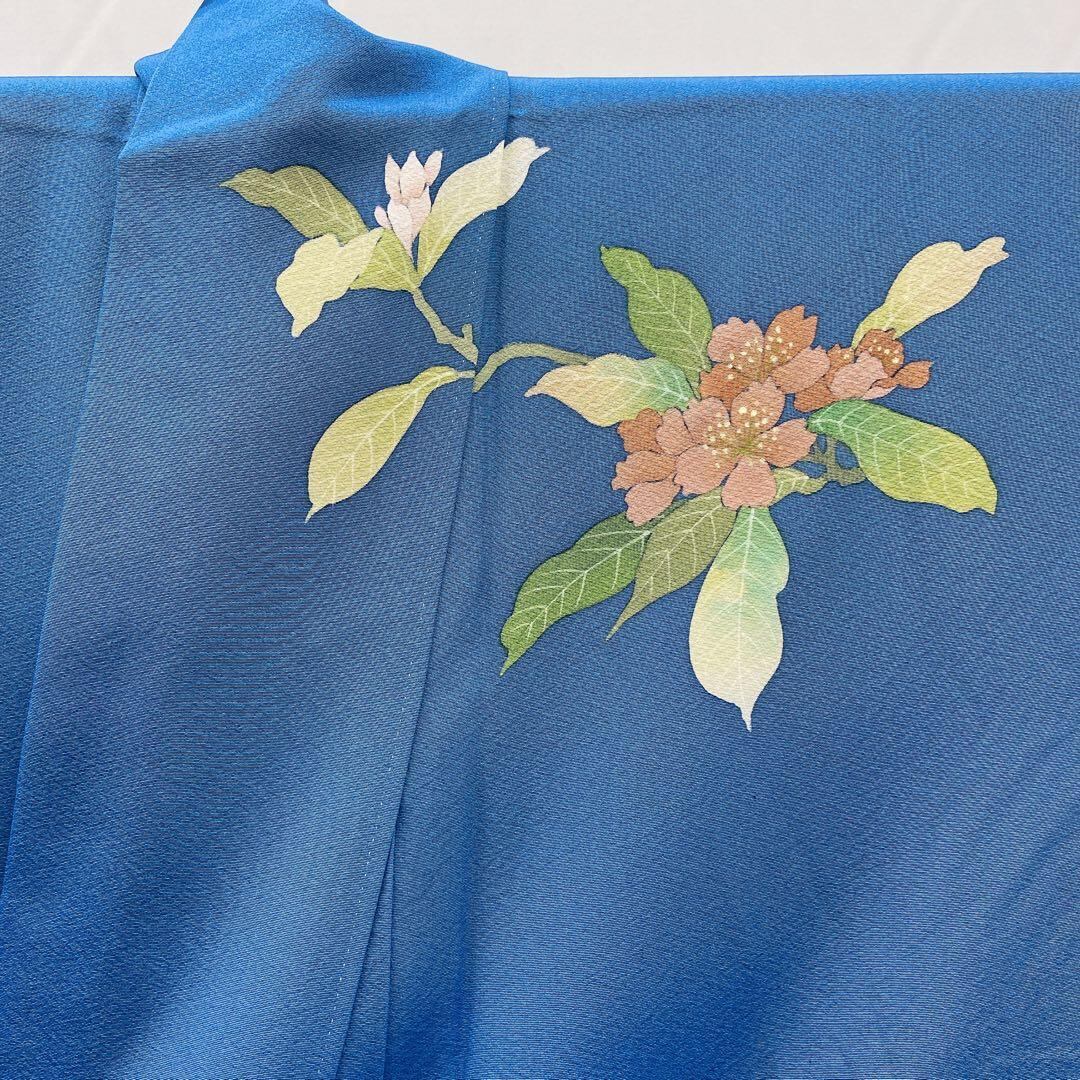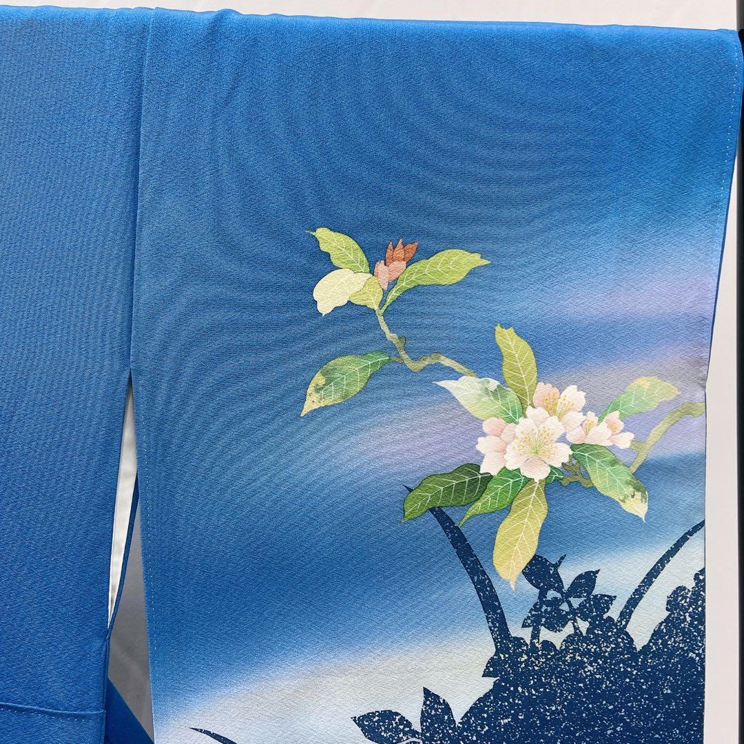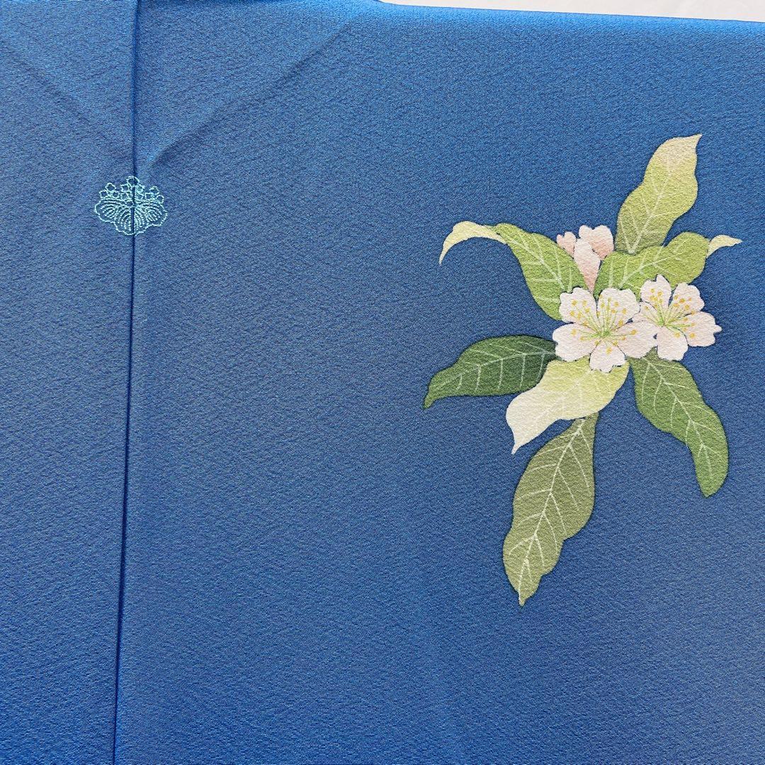 7411 訪問着 おかべみつこ 作家物 ブルー 花柄