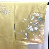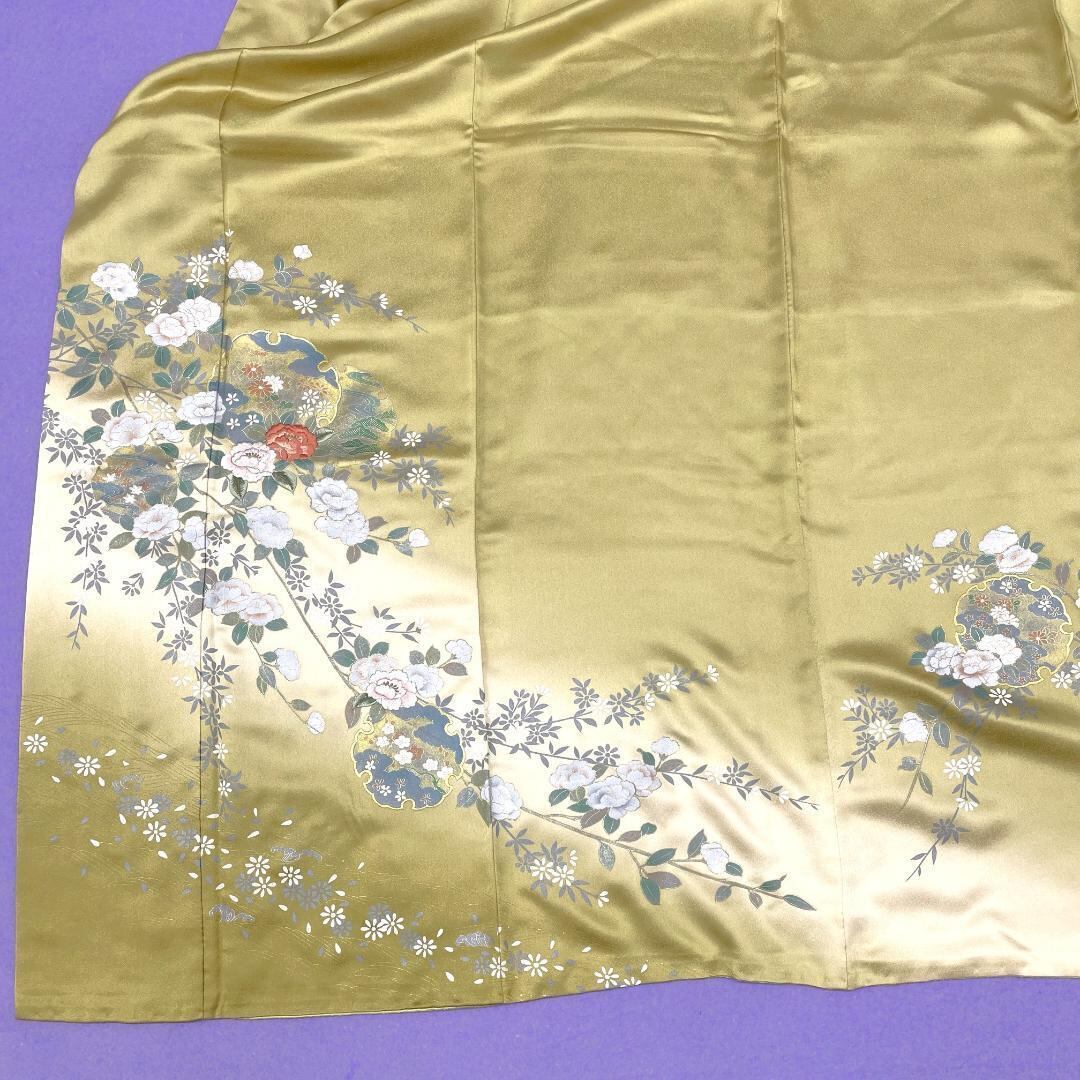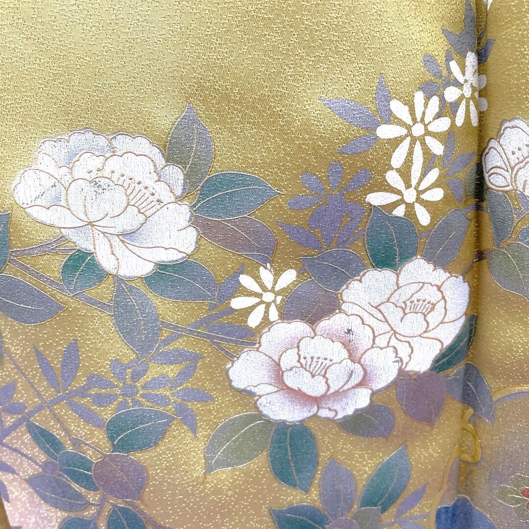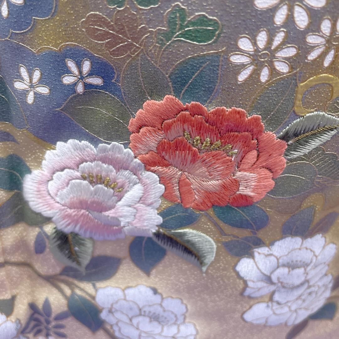 ★4166★ 灰み黄色 桑染色 訪問着 花柄刺繍 袷