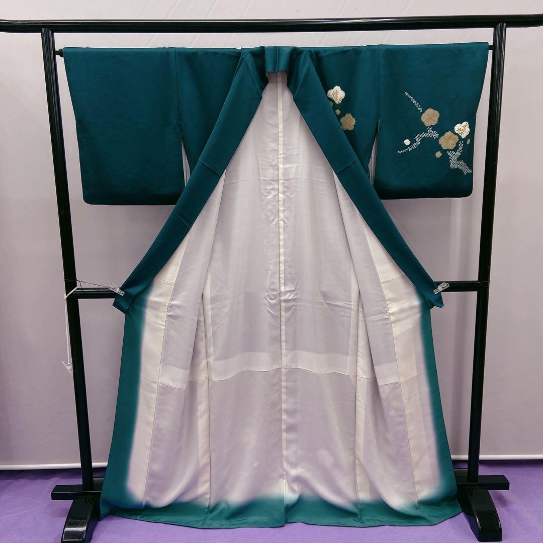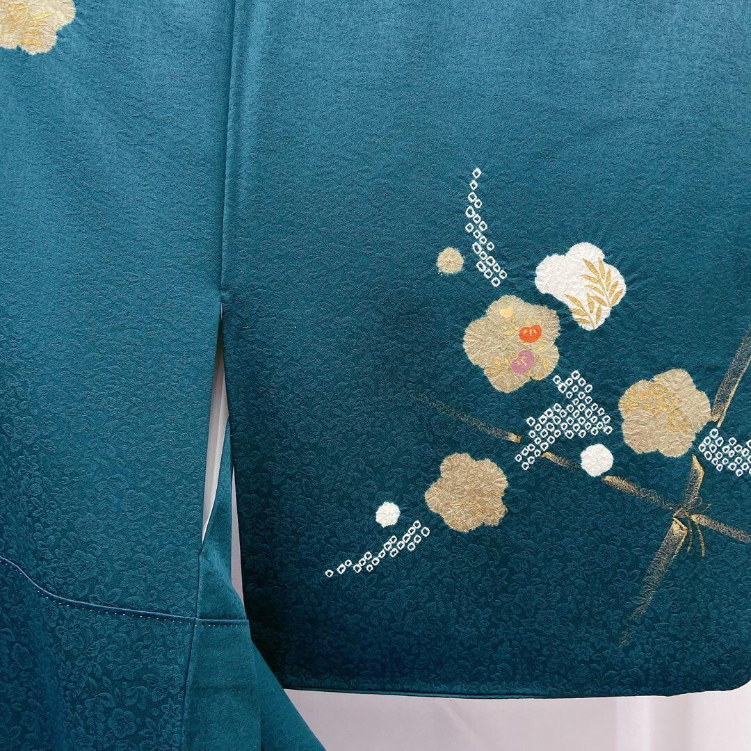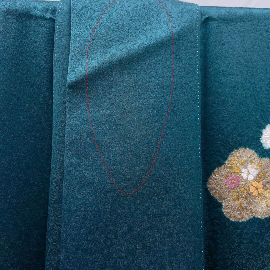 7419 付下げ訪問着 竹 絞り 箔 緑
