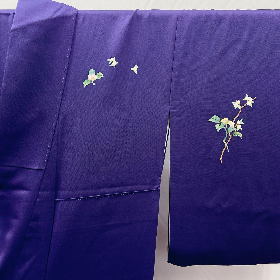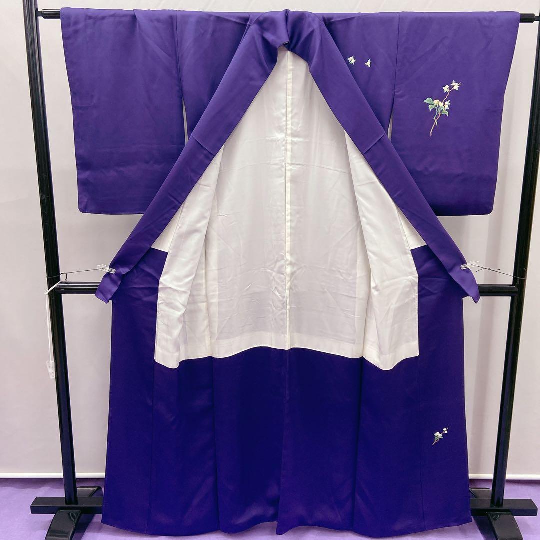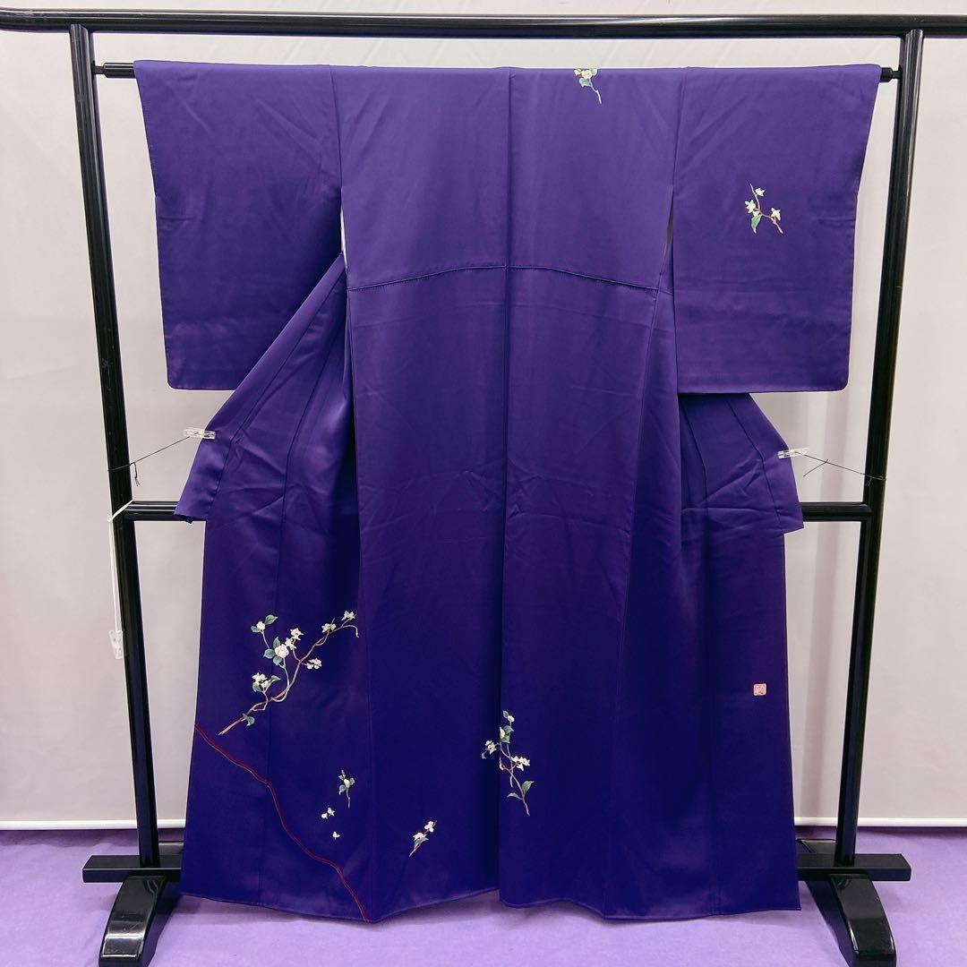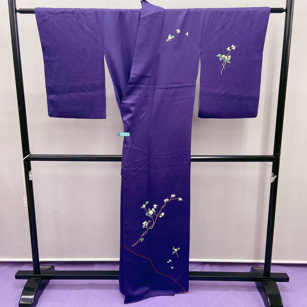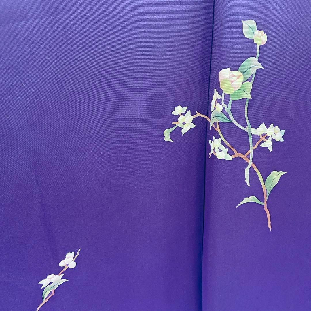 7421 付下げ訪問着 花柄 枝花 紺色 ブルー
