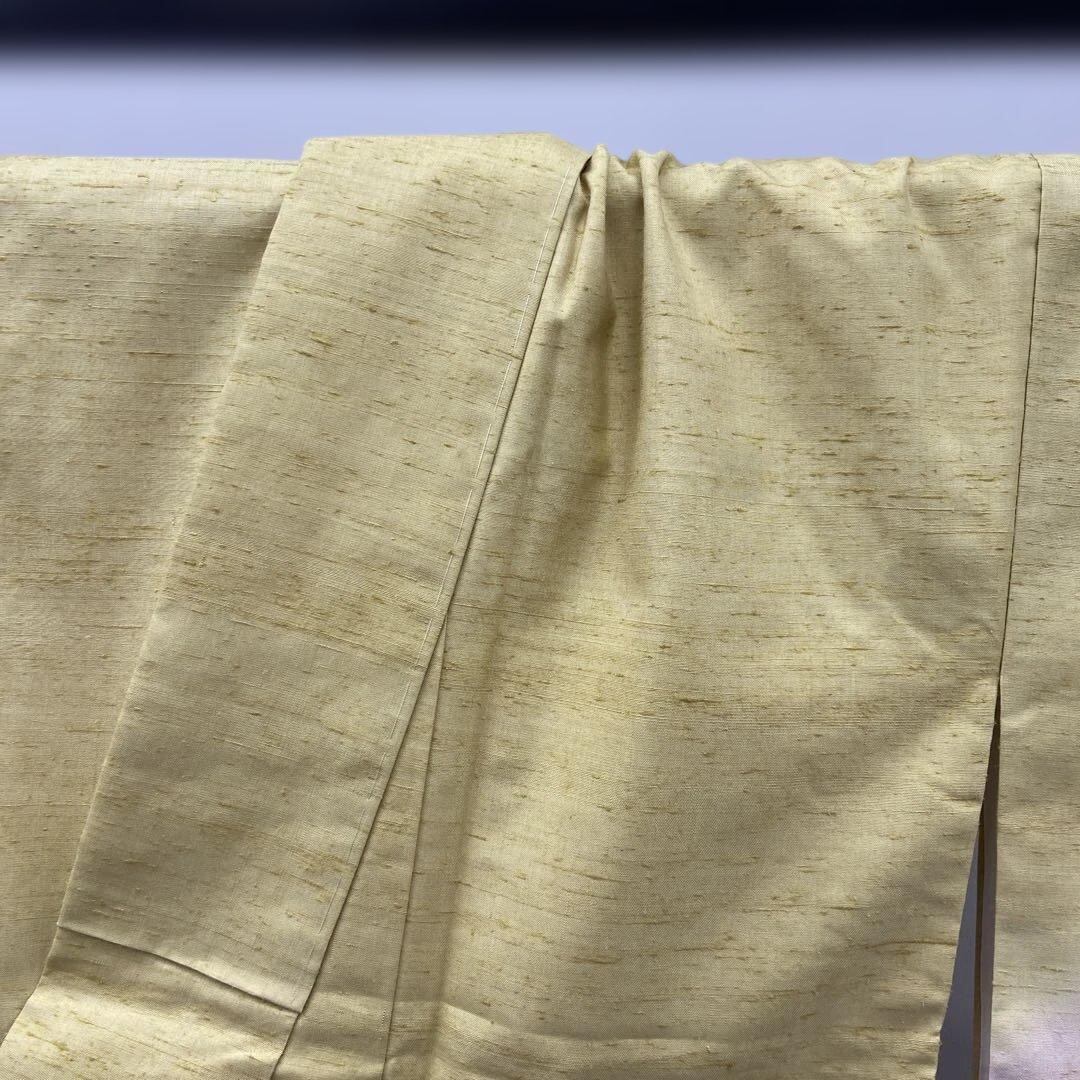 7503 未使用品 紬 訪問着 着物 正絹 おしゃれ 黄色 桃色 茶