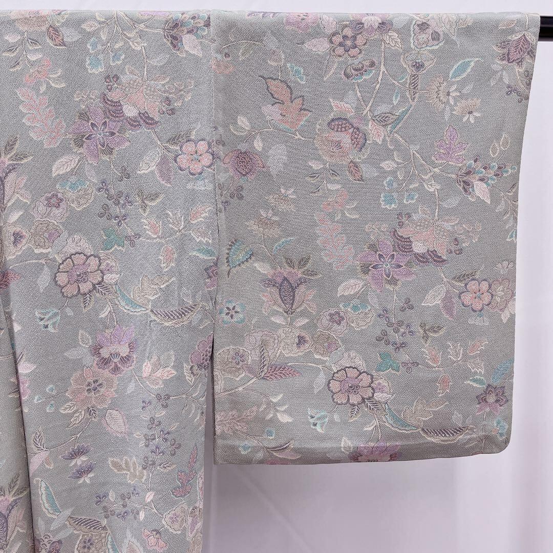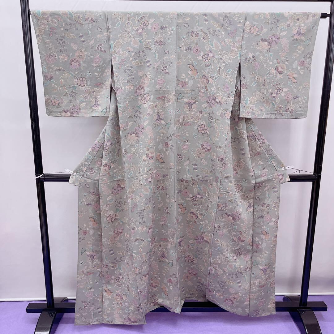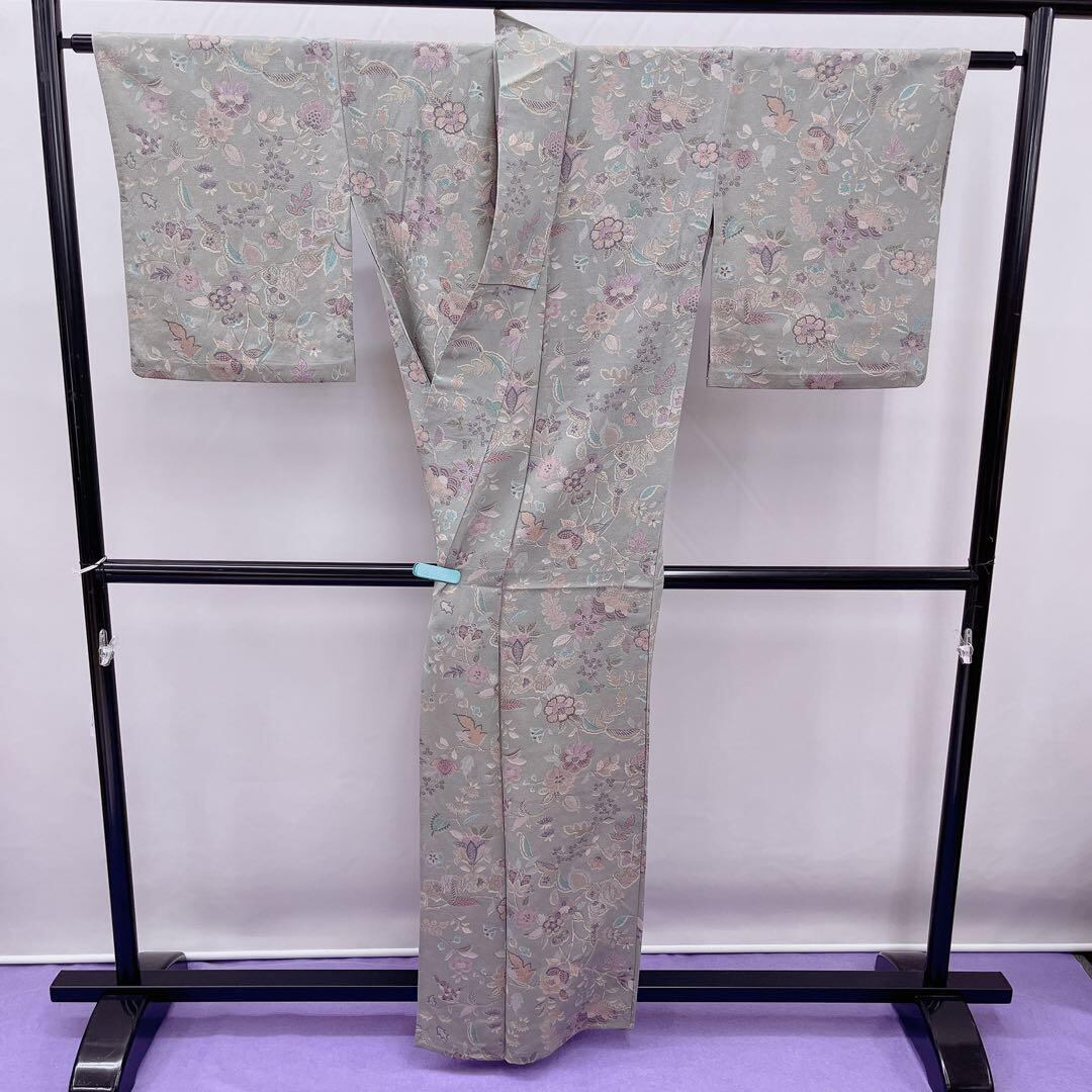 7480 小紋 単衣 更紗 上品 グレー
