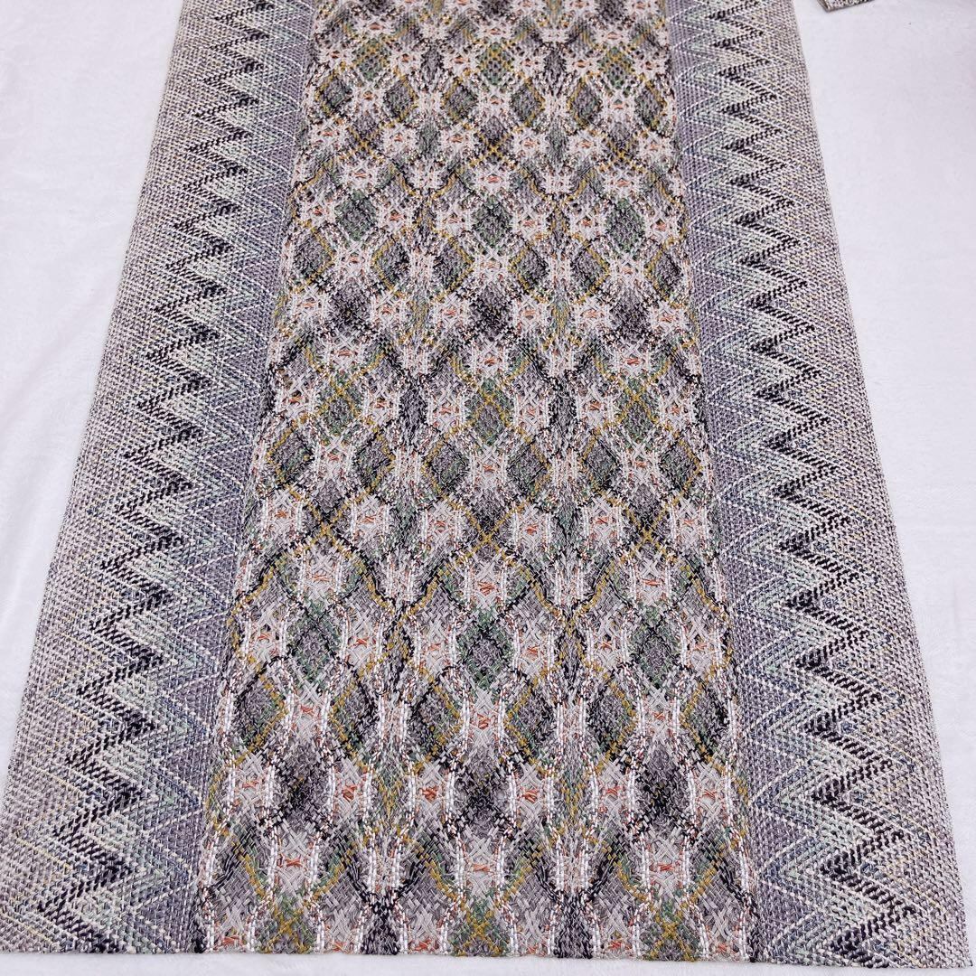 カラフルな織模様がおしゃれな帯です。