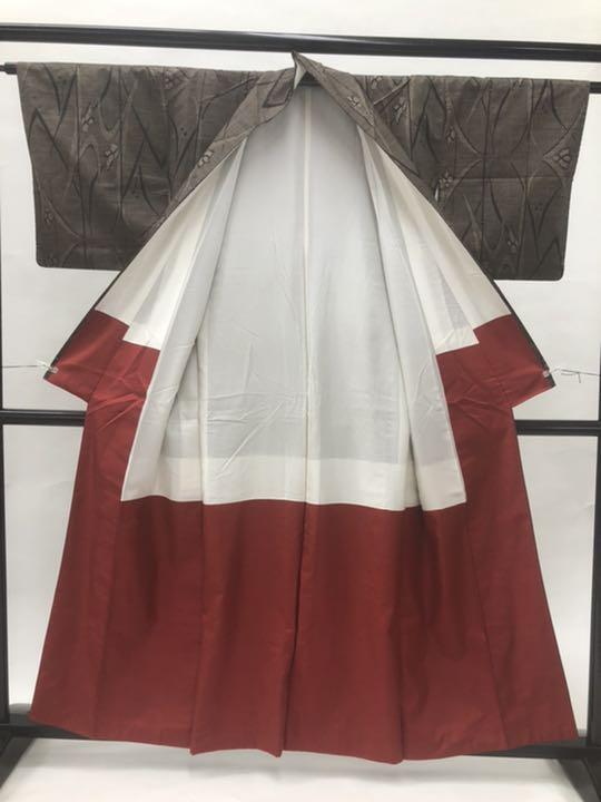 B★696★ 紬 正絹 着物 茶色 大島風 おしゃれ シック