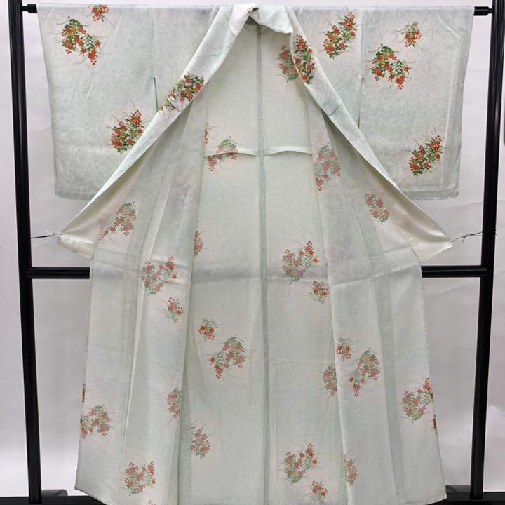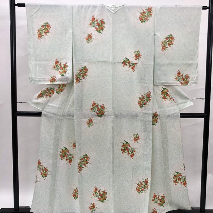 SBY25 小紋 着物 正絹 水色 緑 雪 花