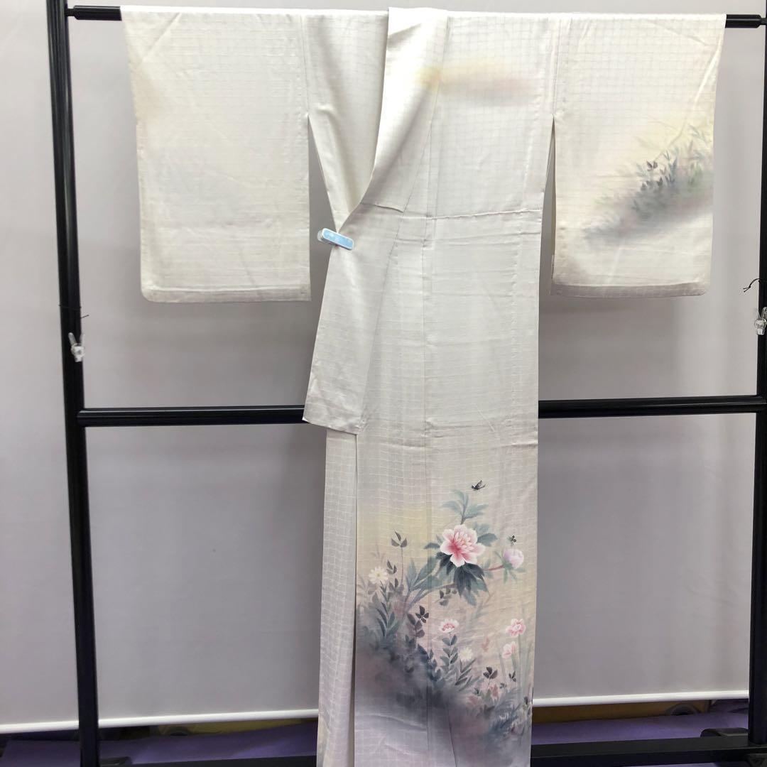 単衣 染色作家 安達華生 訪問着 手描き 花 蝶々 暈し染め 逸品